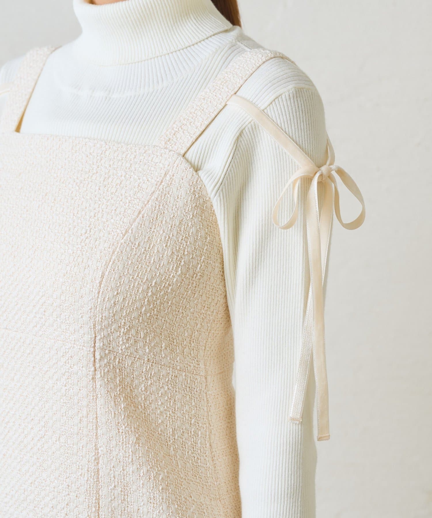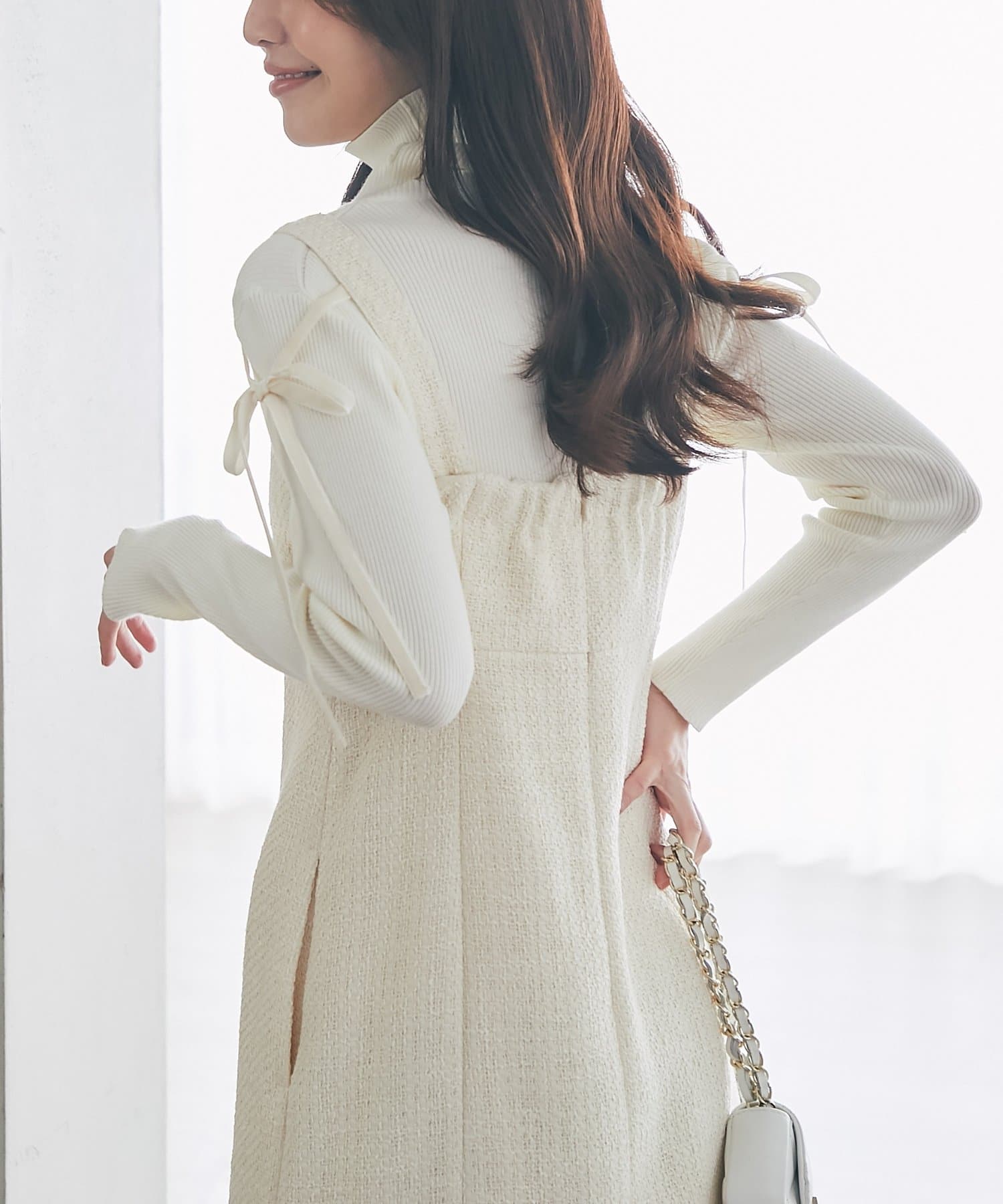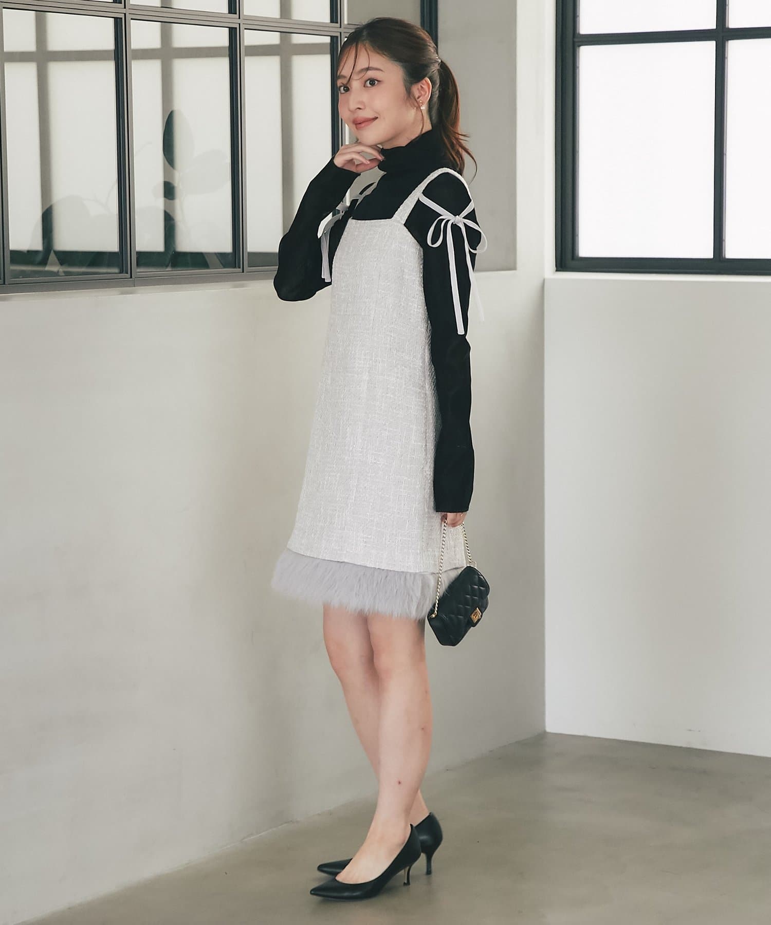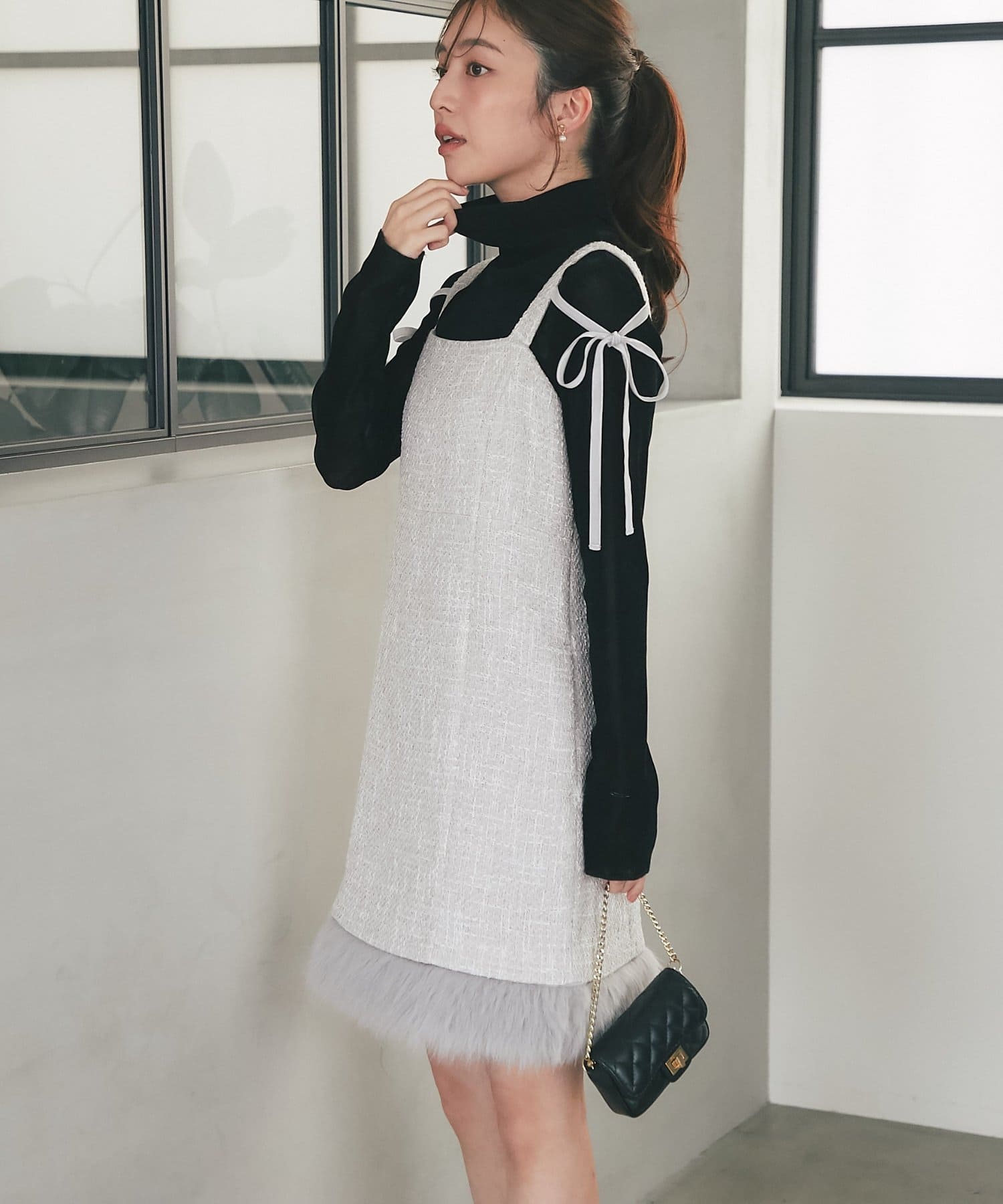 【大人ガーリー】ファンシーツイードフェイクファー付きジャンドレ