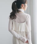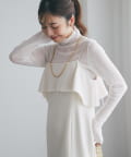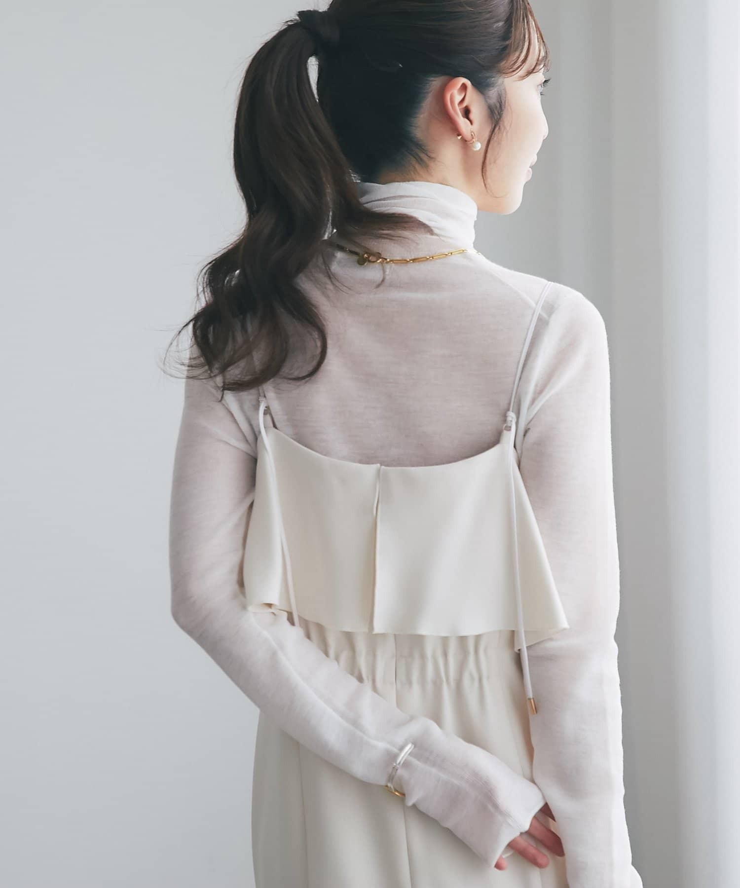 インナーにシアートップスを合わせた女性らしい着こなしや、