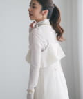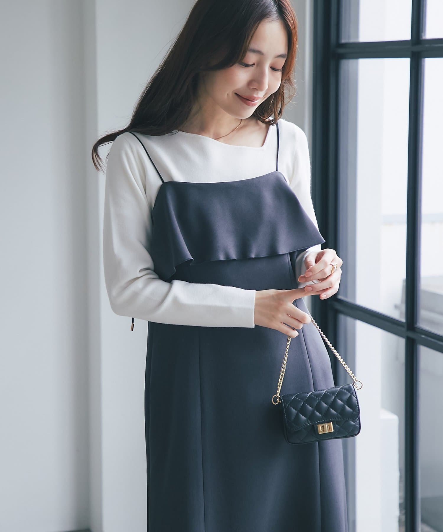 シンプルですが胸元のラッフルとマーメイドのシルエットが品良く女子力を高めてくれます。