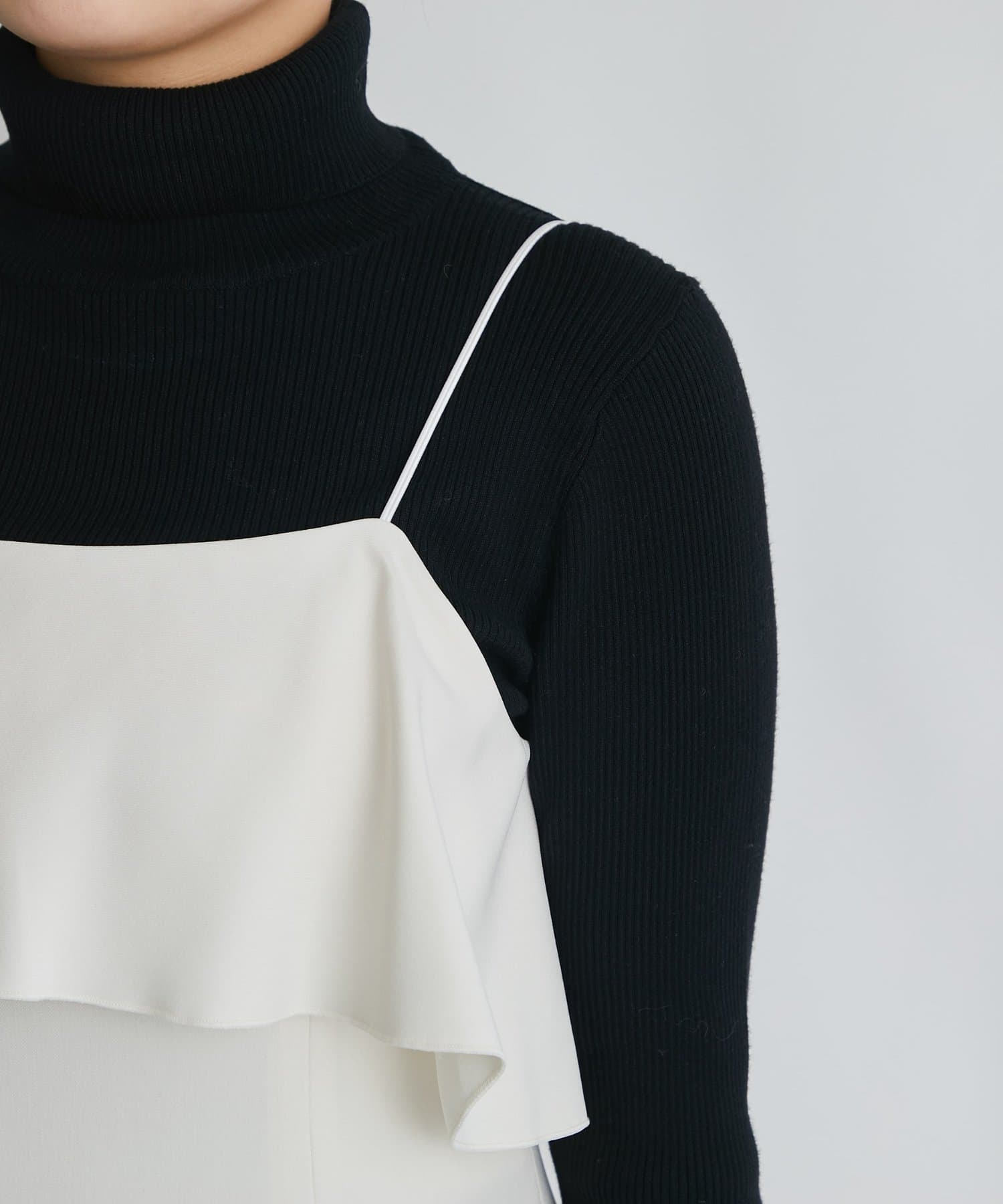 キャミソールなのでシンプルなタイトのニット合わせで簡単にスタイリングが決まります。