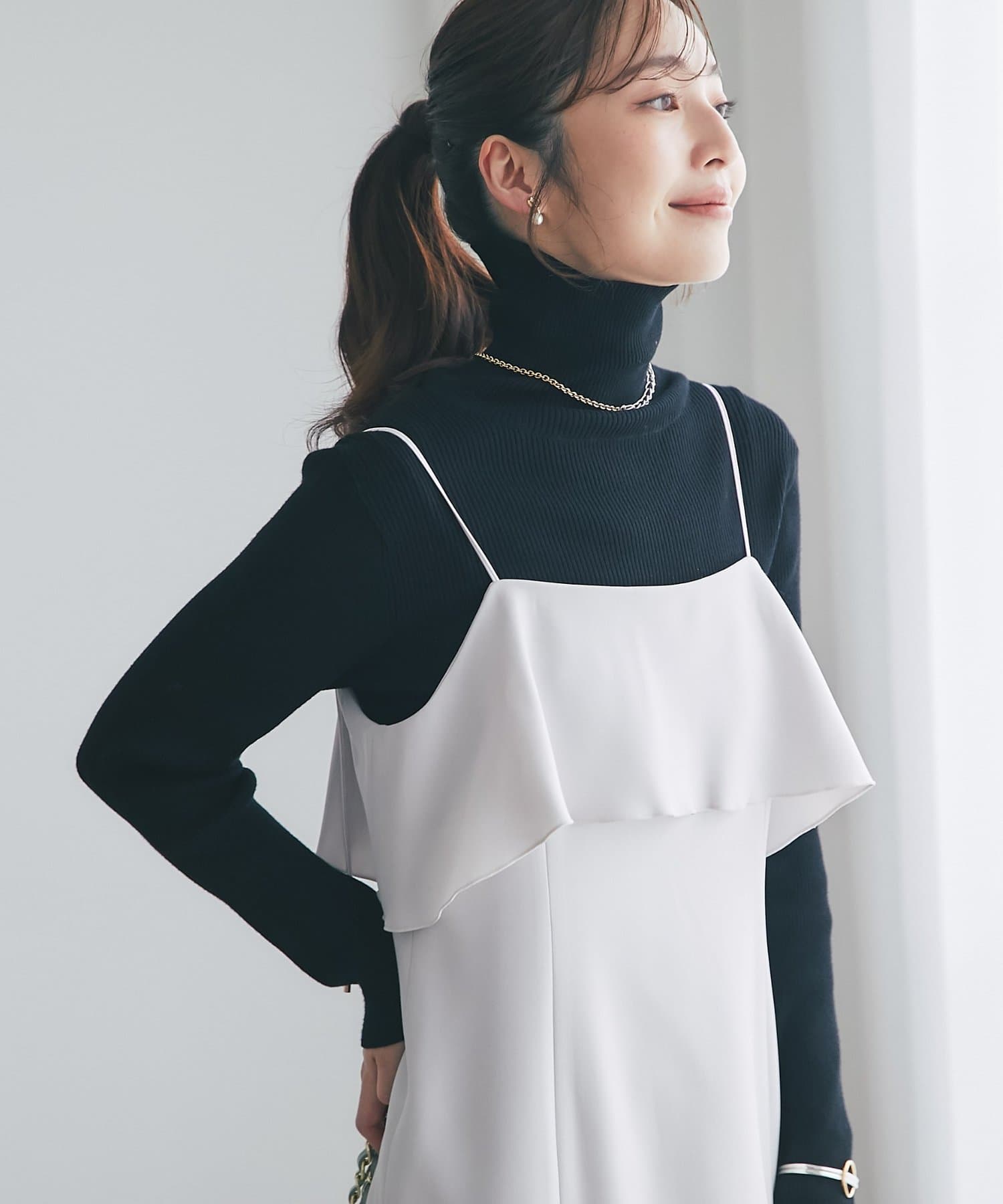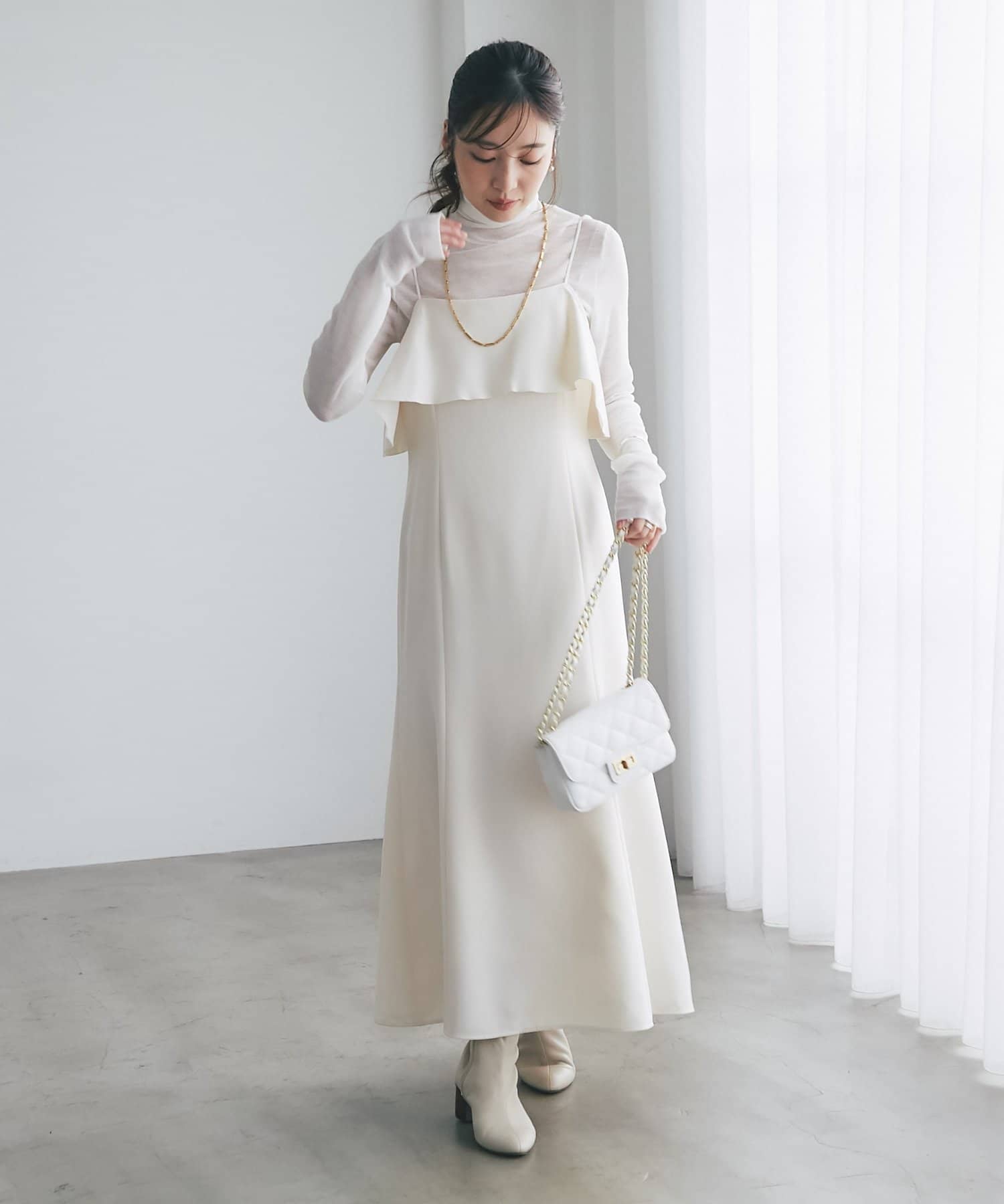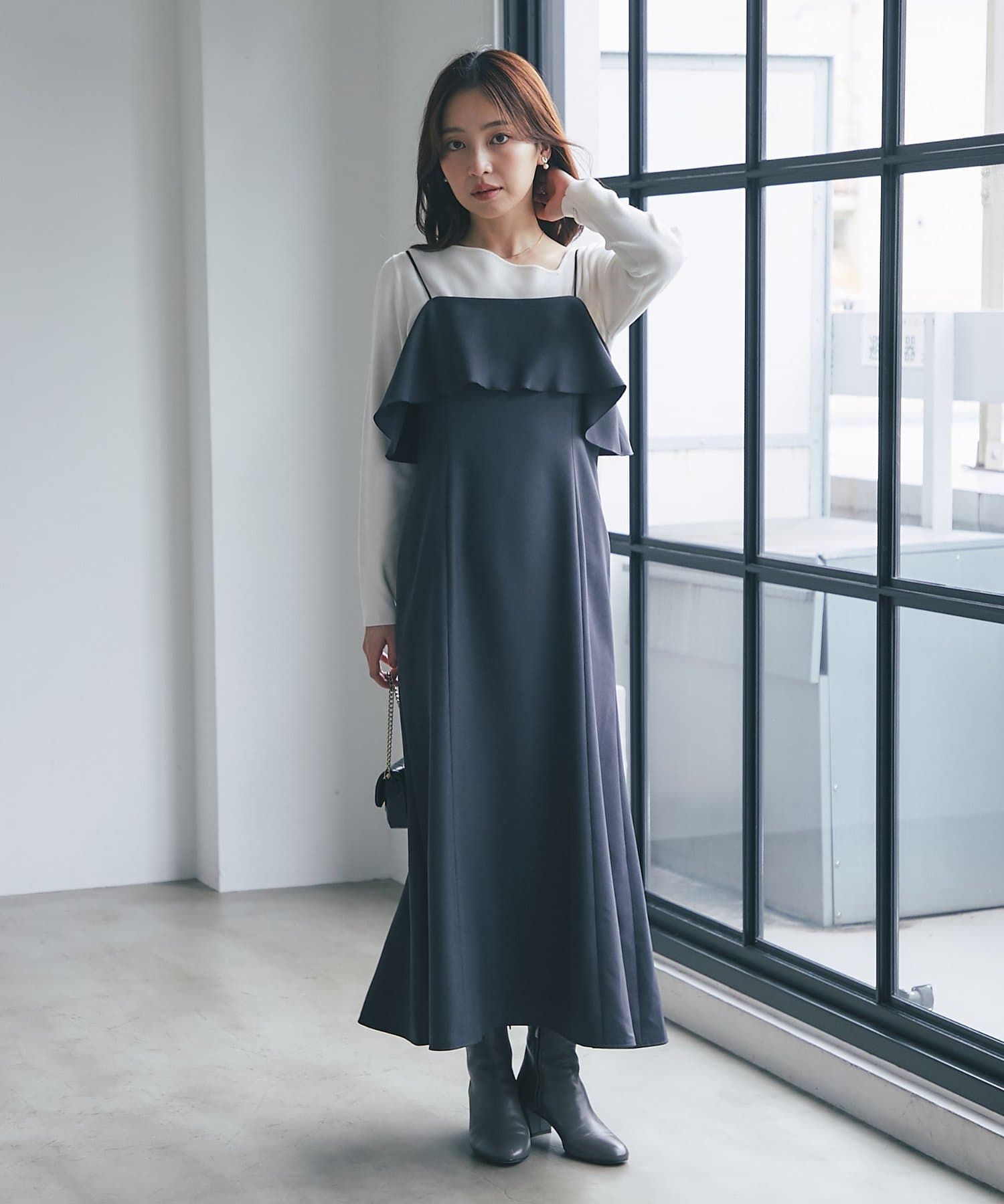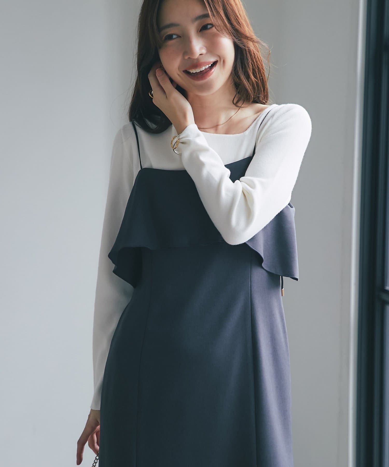 フェミニンでラクに着られるラッフルキャミワンピース。