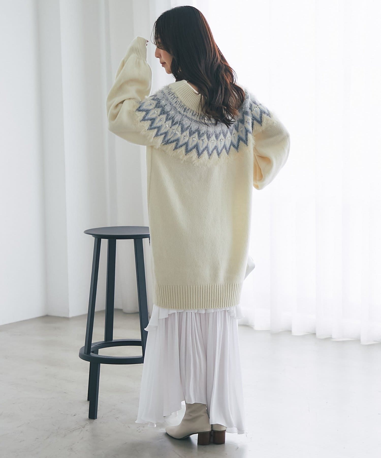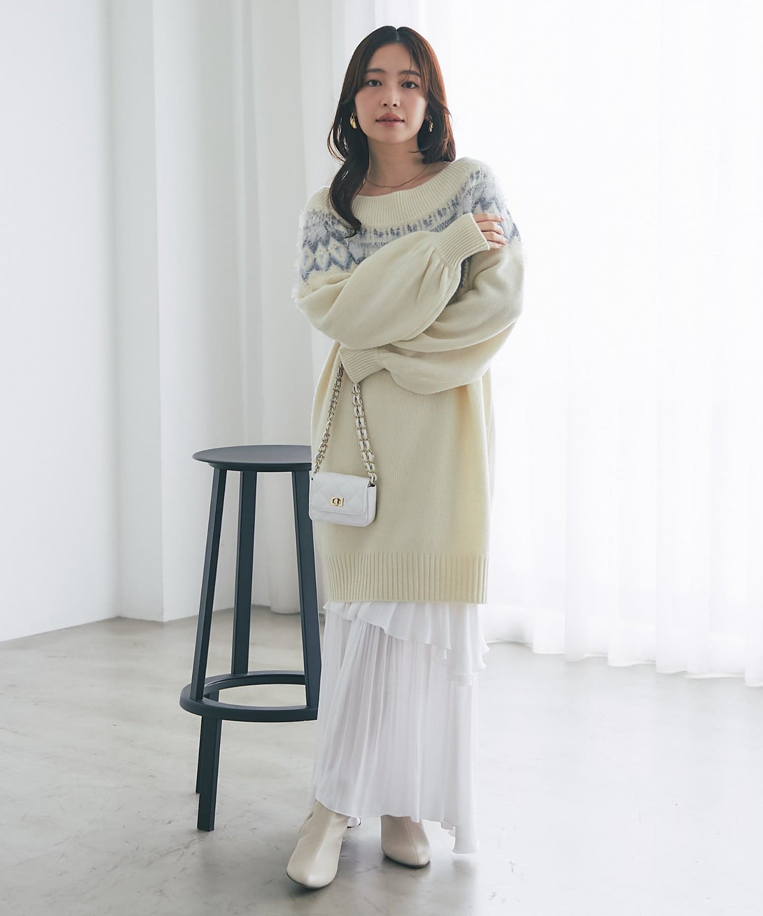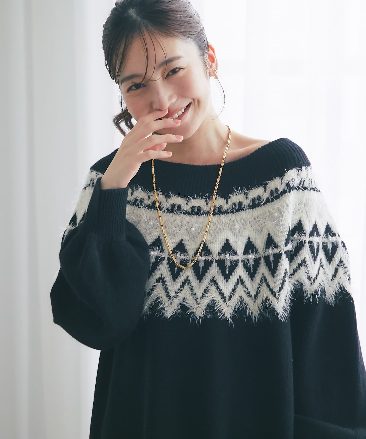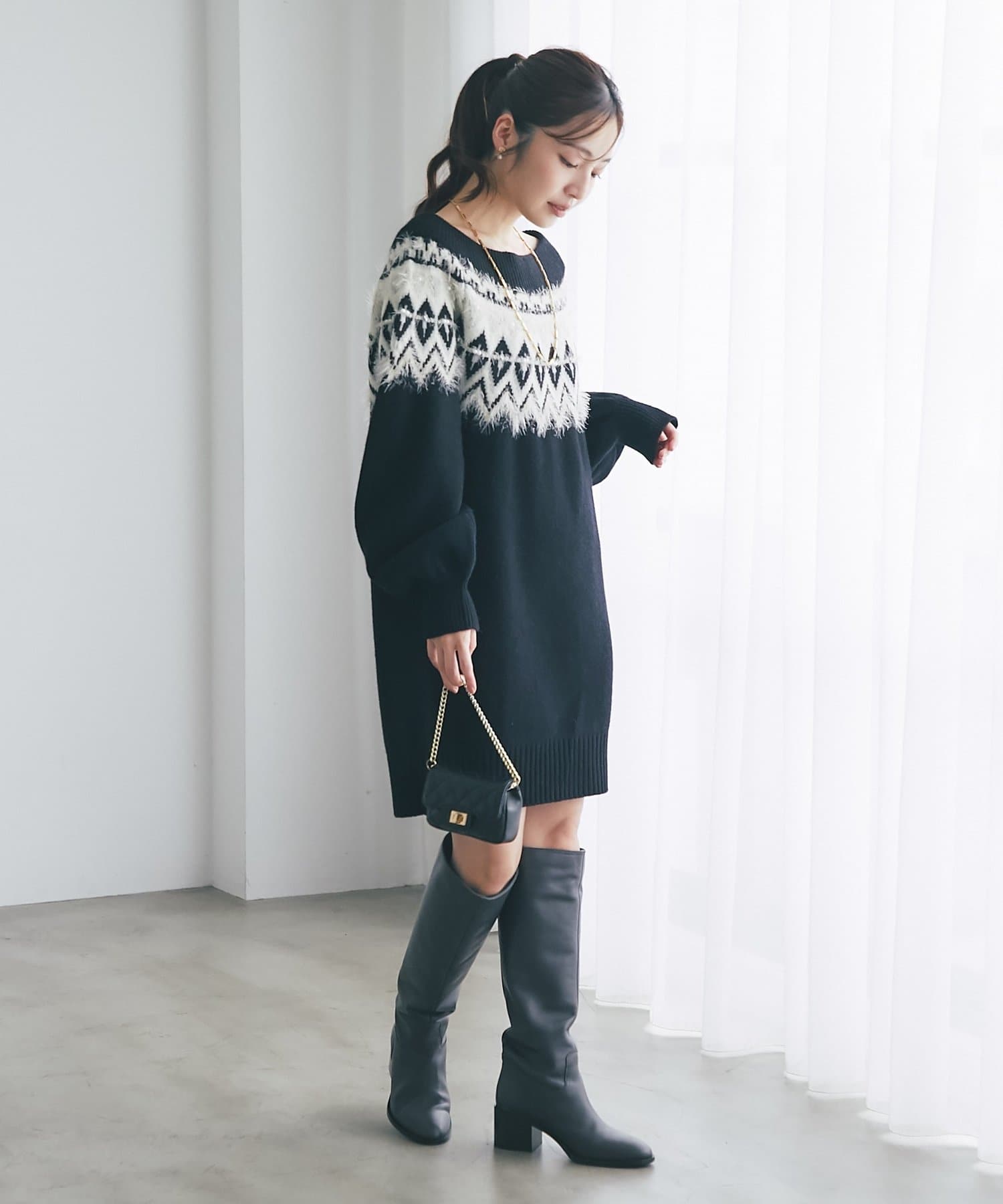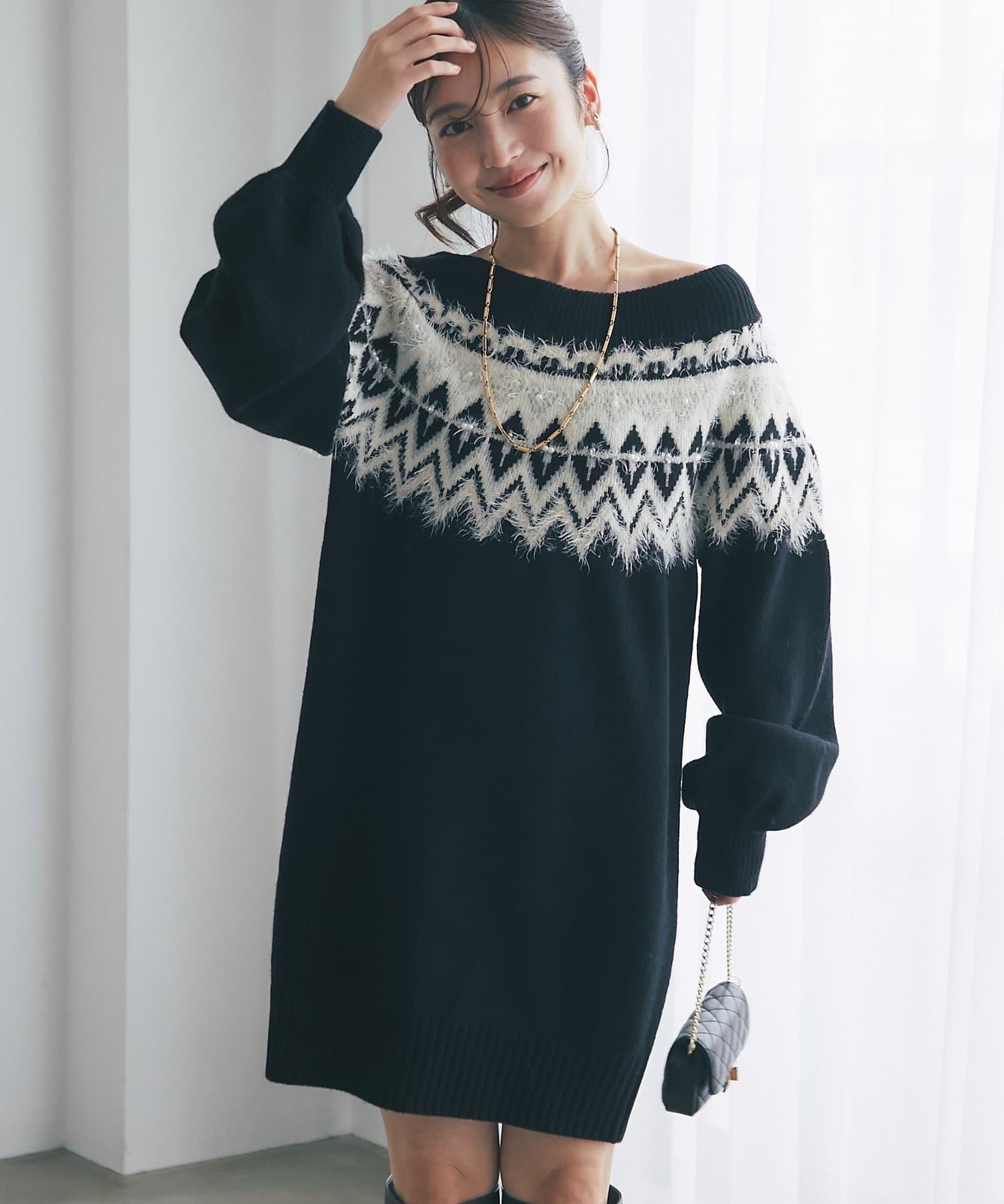 【女っぽカジュアル】フェアアイルオフショルニットワンピース
