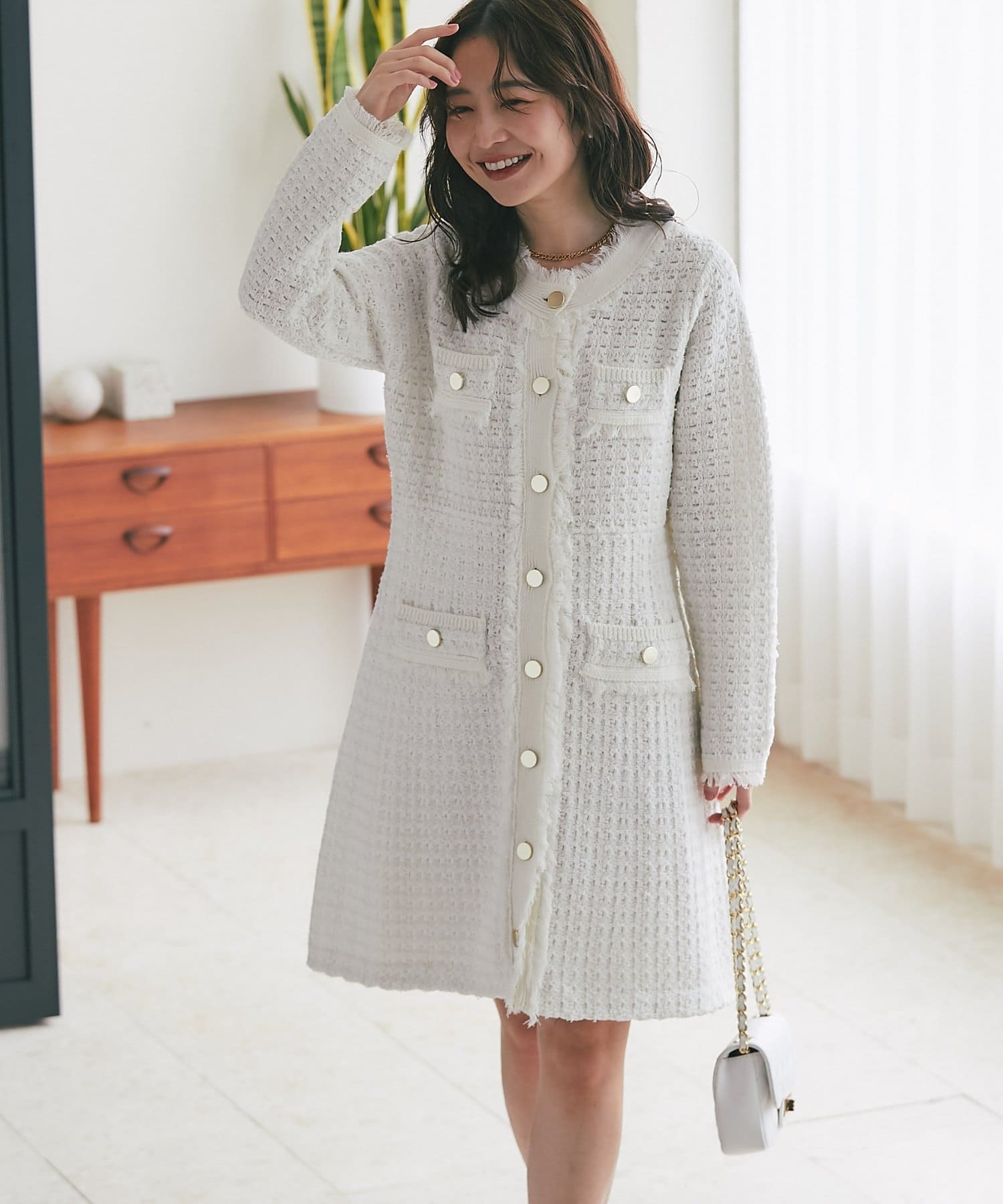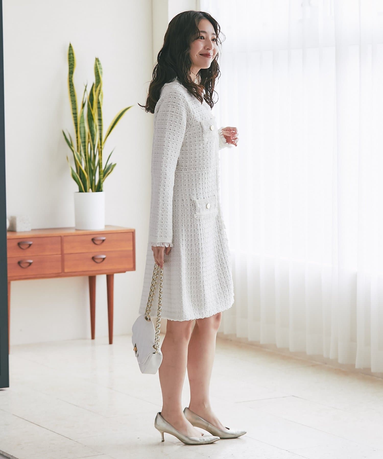 【お上品ワンピース】ファンシーツイードニットミニワンピース