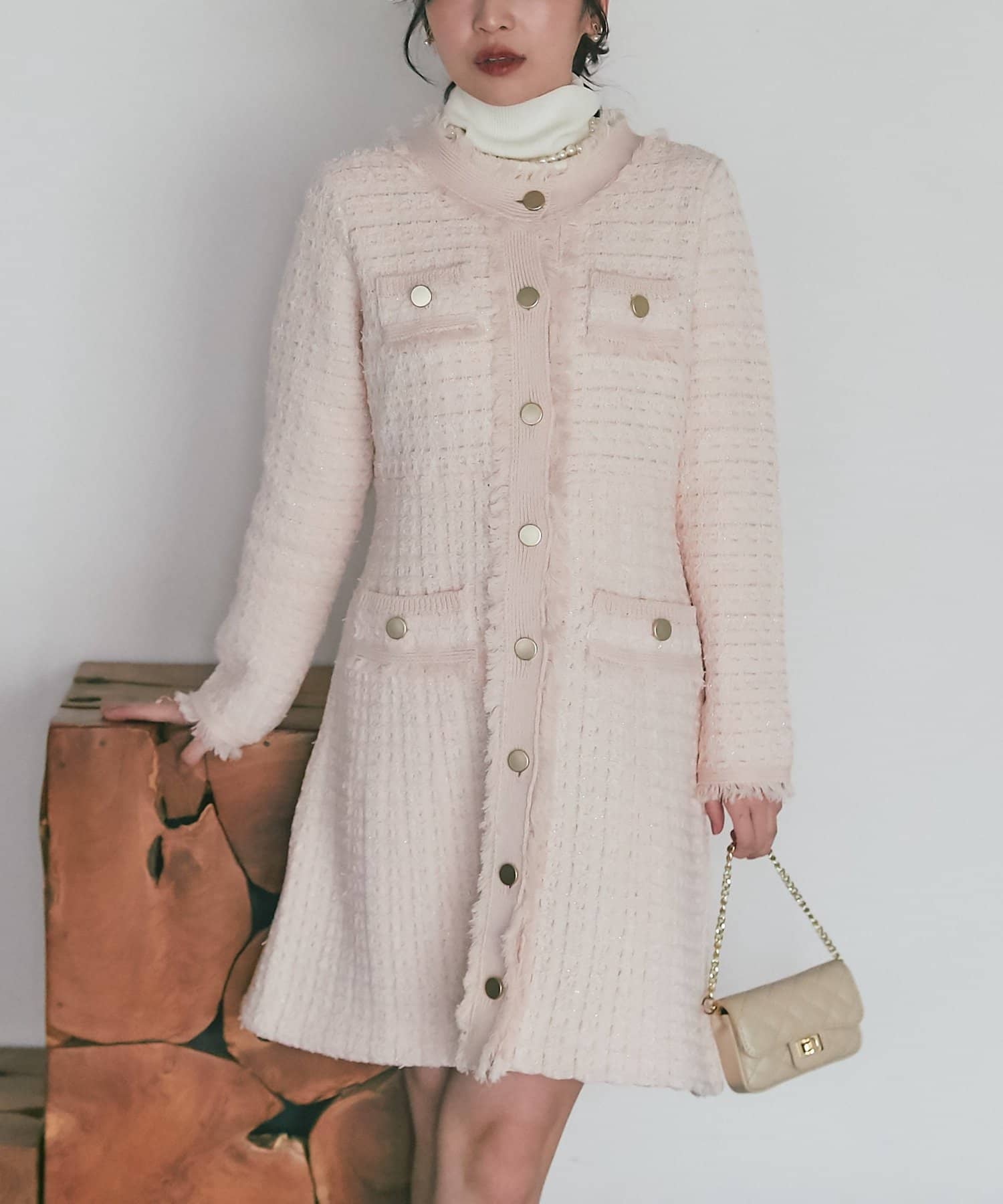 La boutique BonBon(ラブティックボンボン) 【お上品ワンピース】ファンシーツイードニットミニワンピース