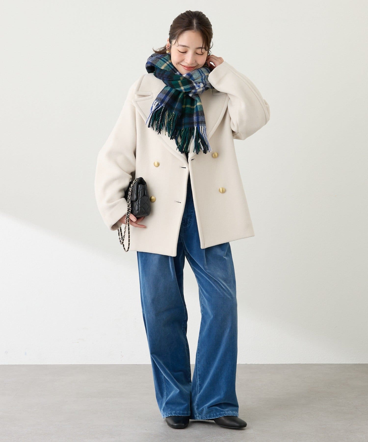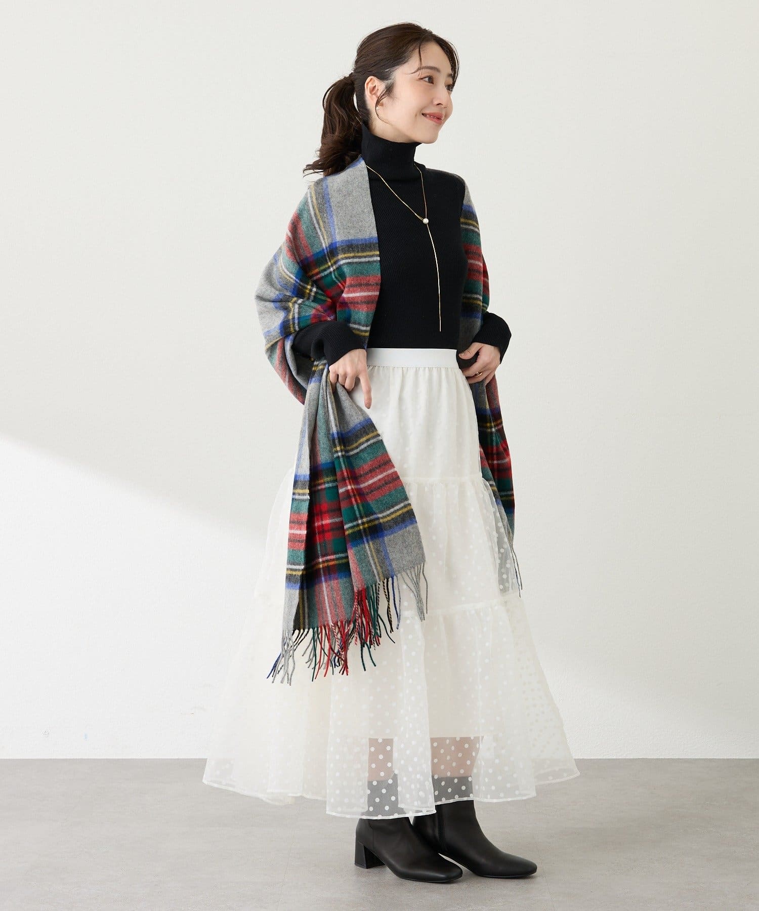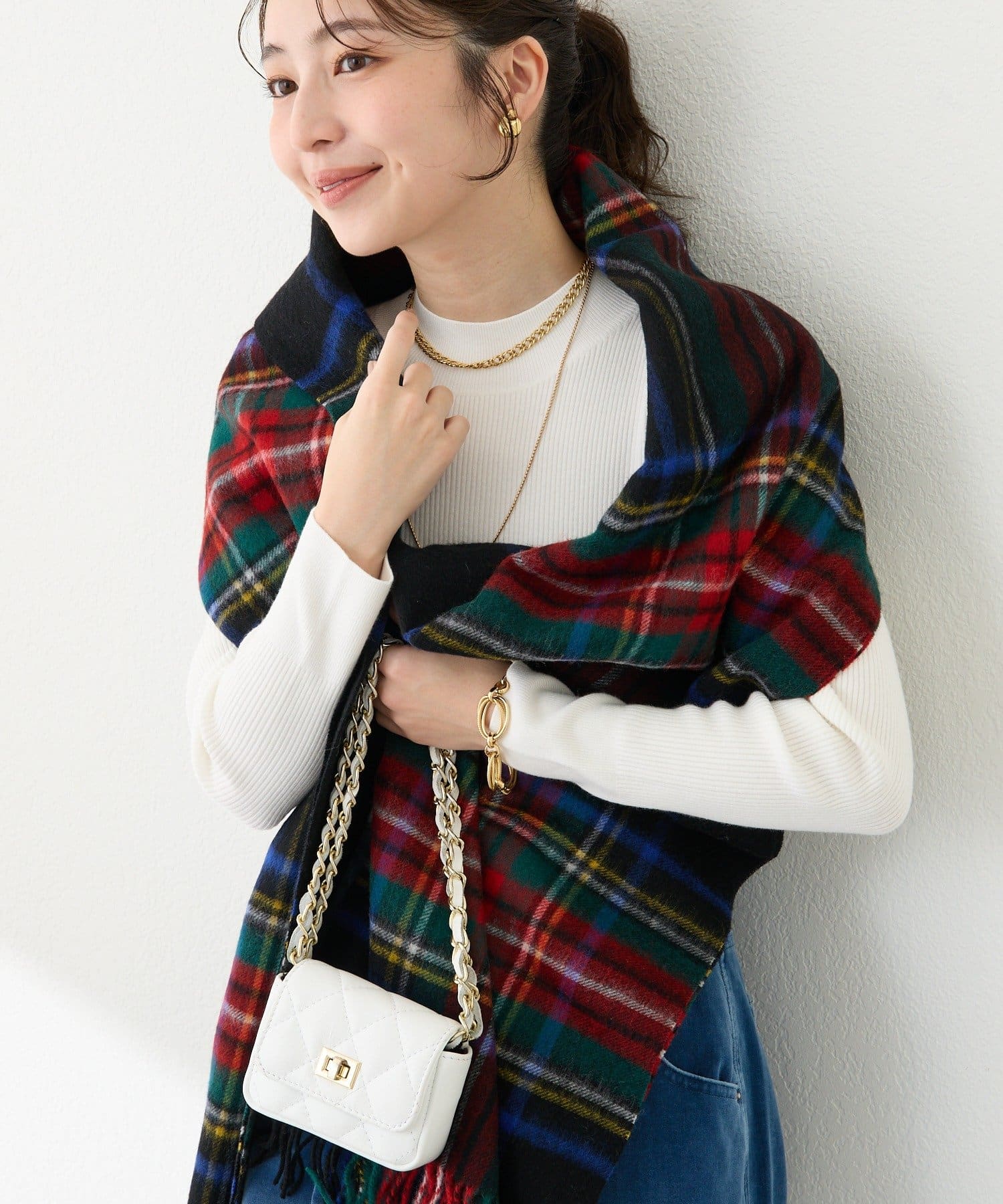 大判なので無造作に巻いて抜け感を出しやすく、コーデのポイントとしても活躍。