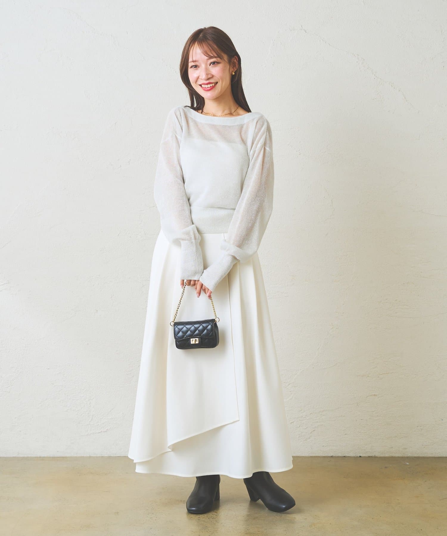 アシンメトリーな裾のラインが特徴的なフレアスカートです。