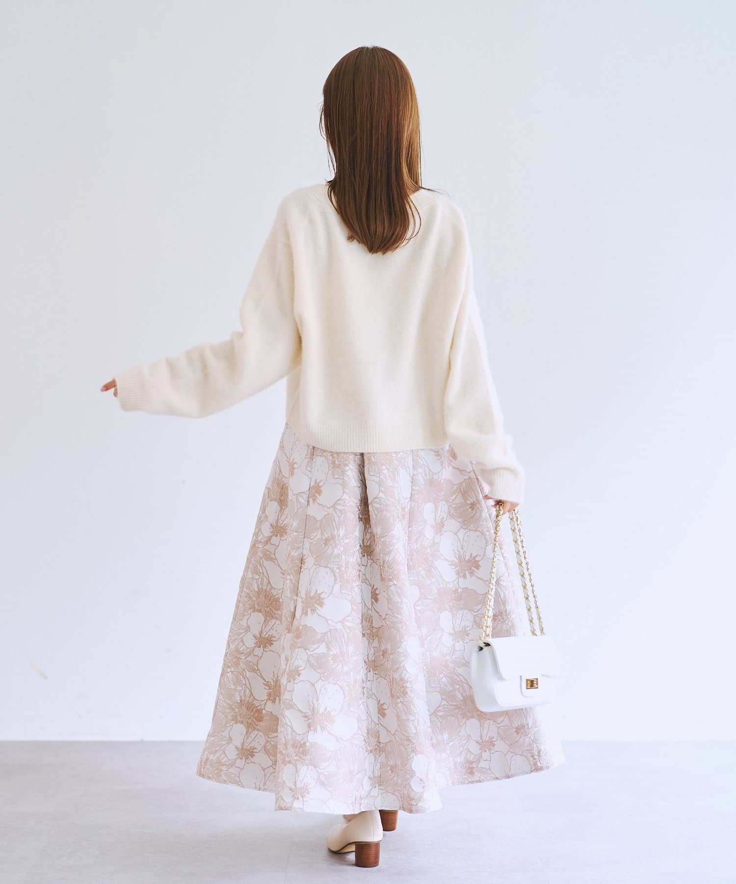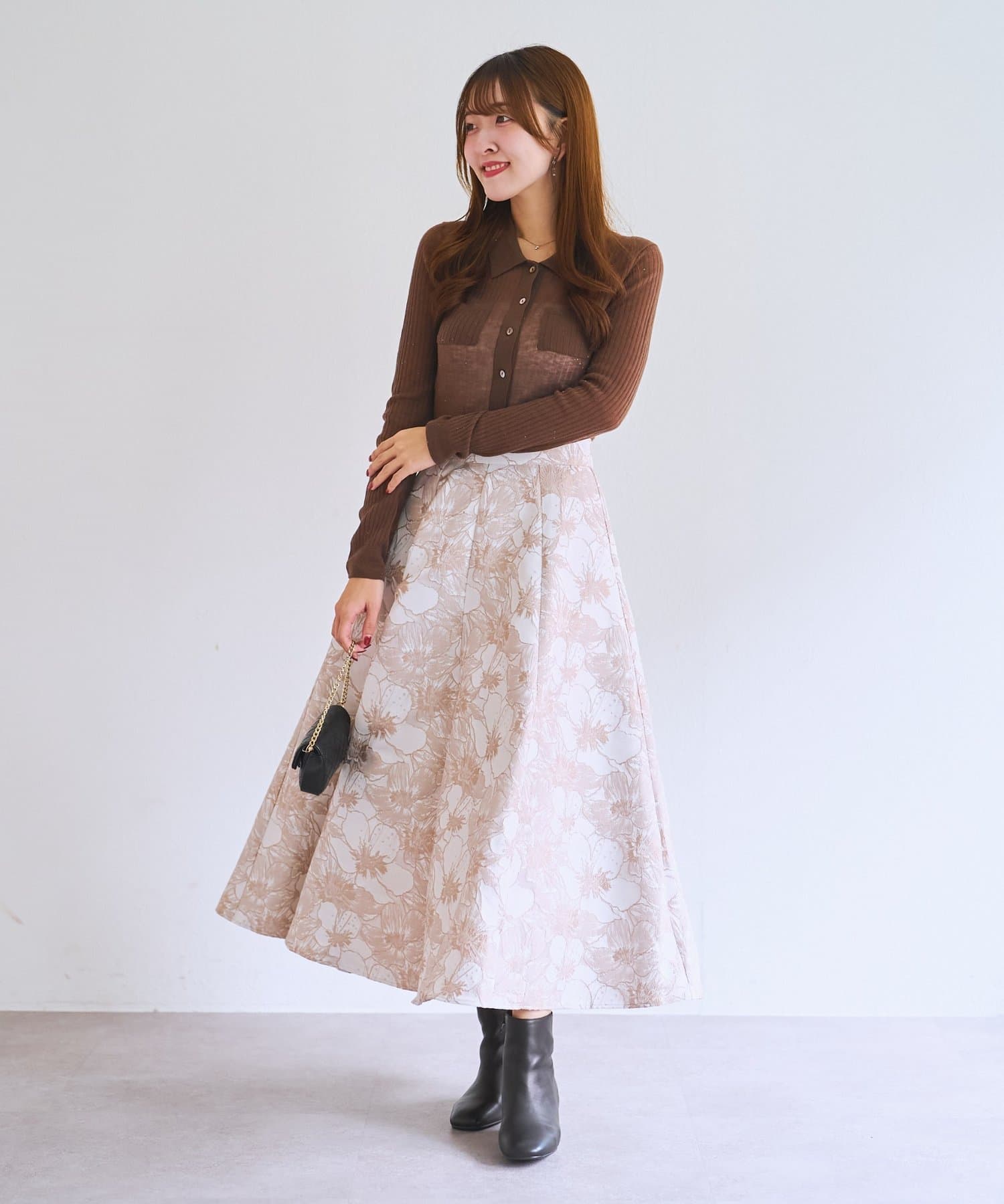 上品なフラワージャガードが存在感を放つフレアスカートです。
