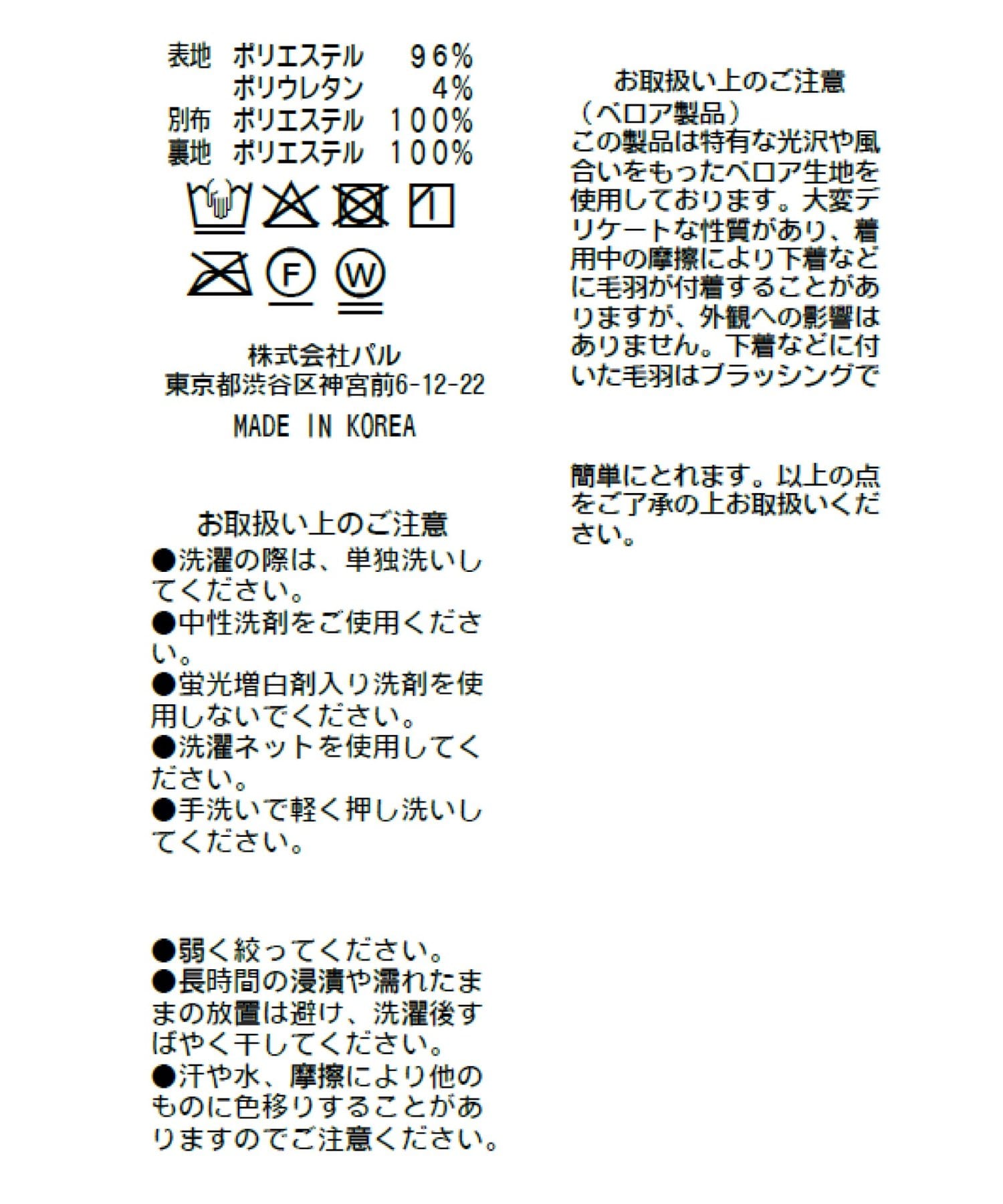 品番 LBZ1052504A0002 素材 表地 ポリエステル96% ポリウレタン4%