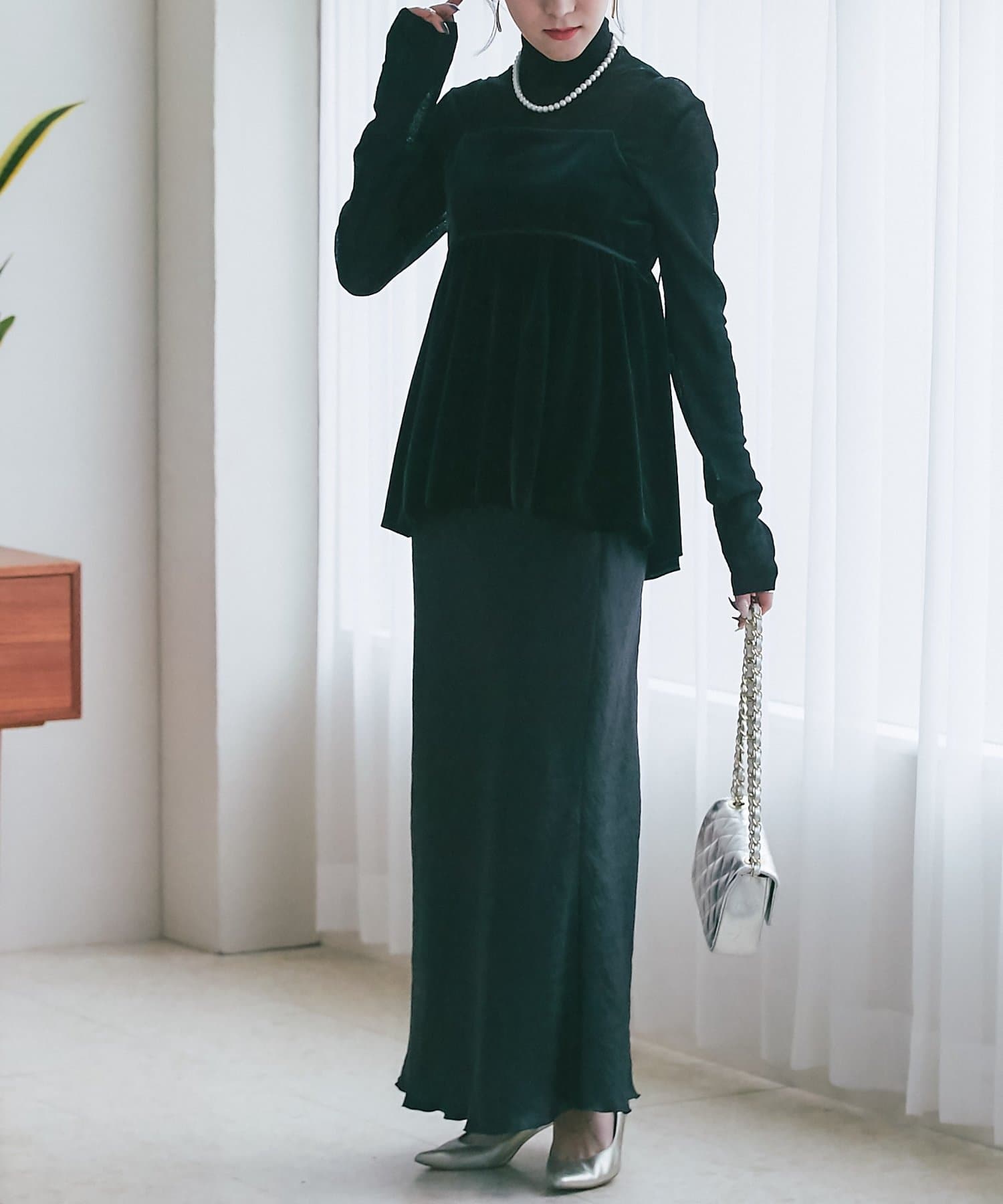 ベロア素材×ペプラムのトレンド顔キャミソール