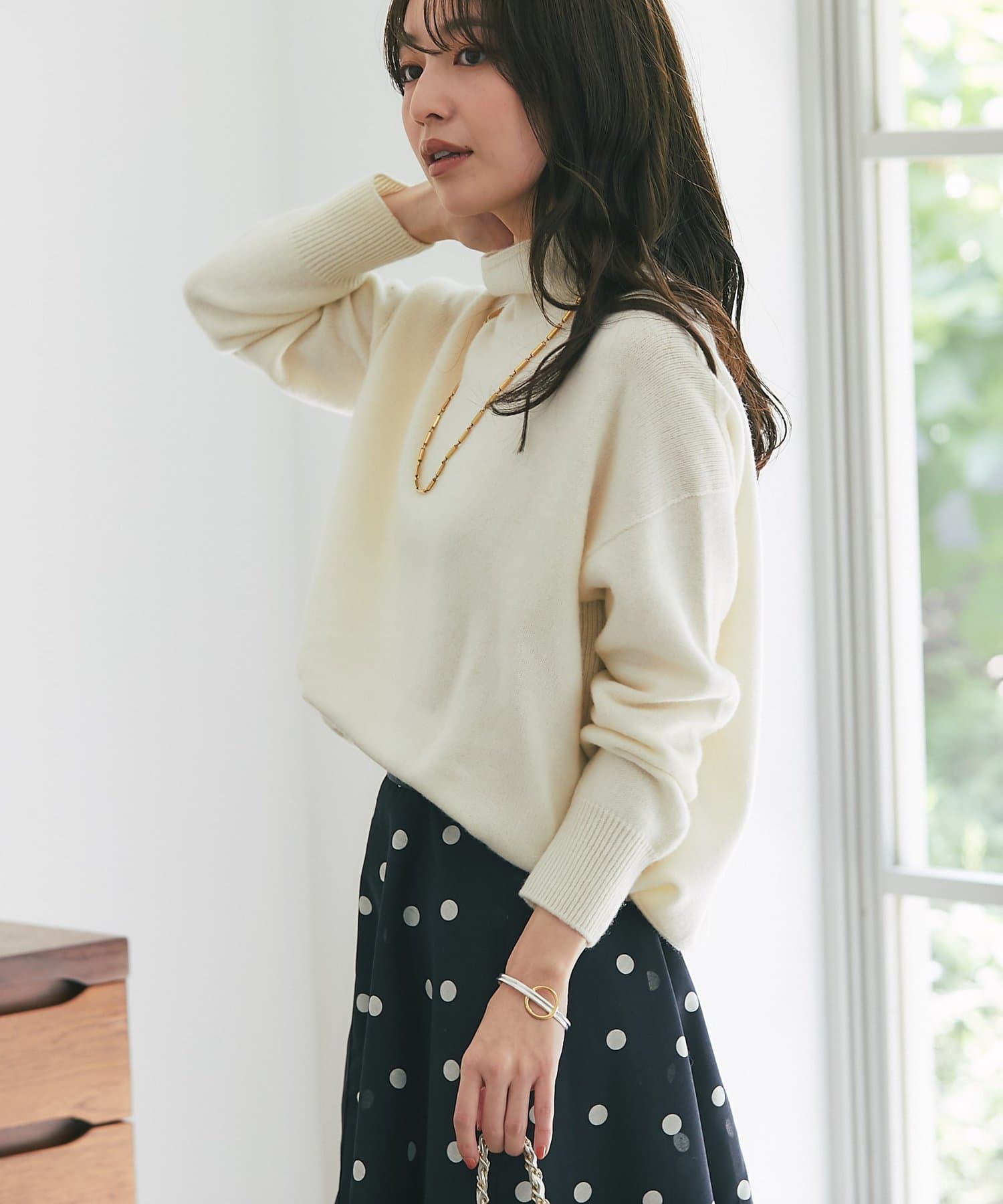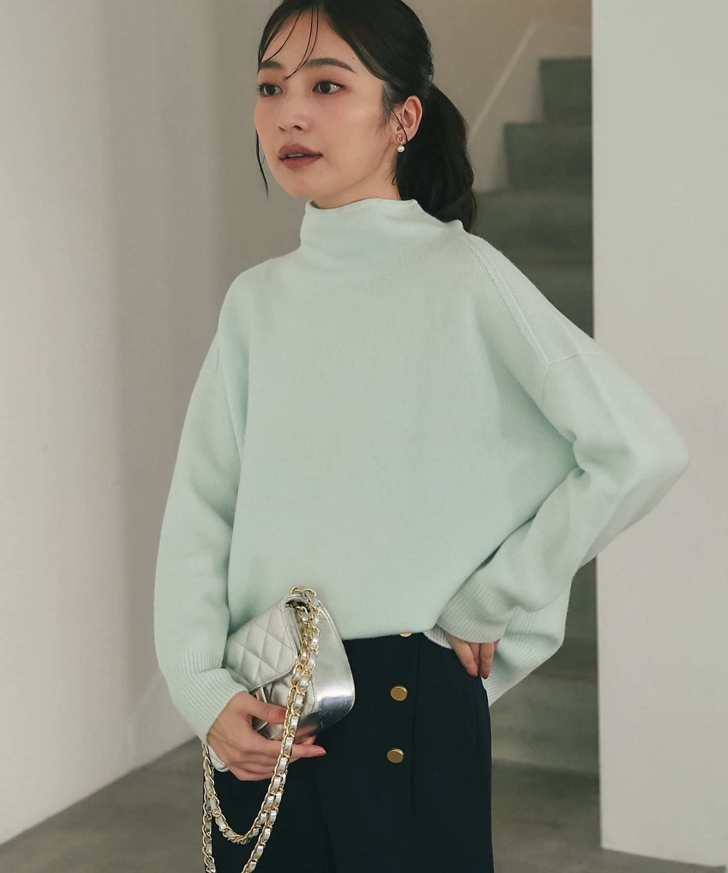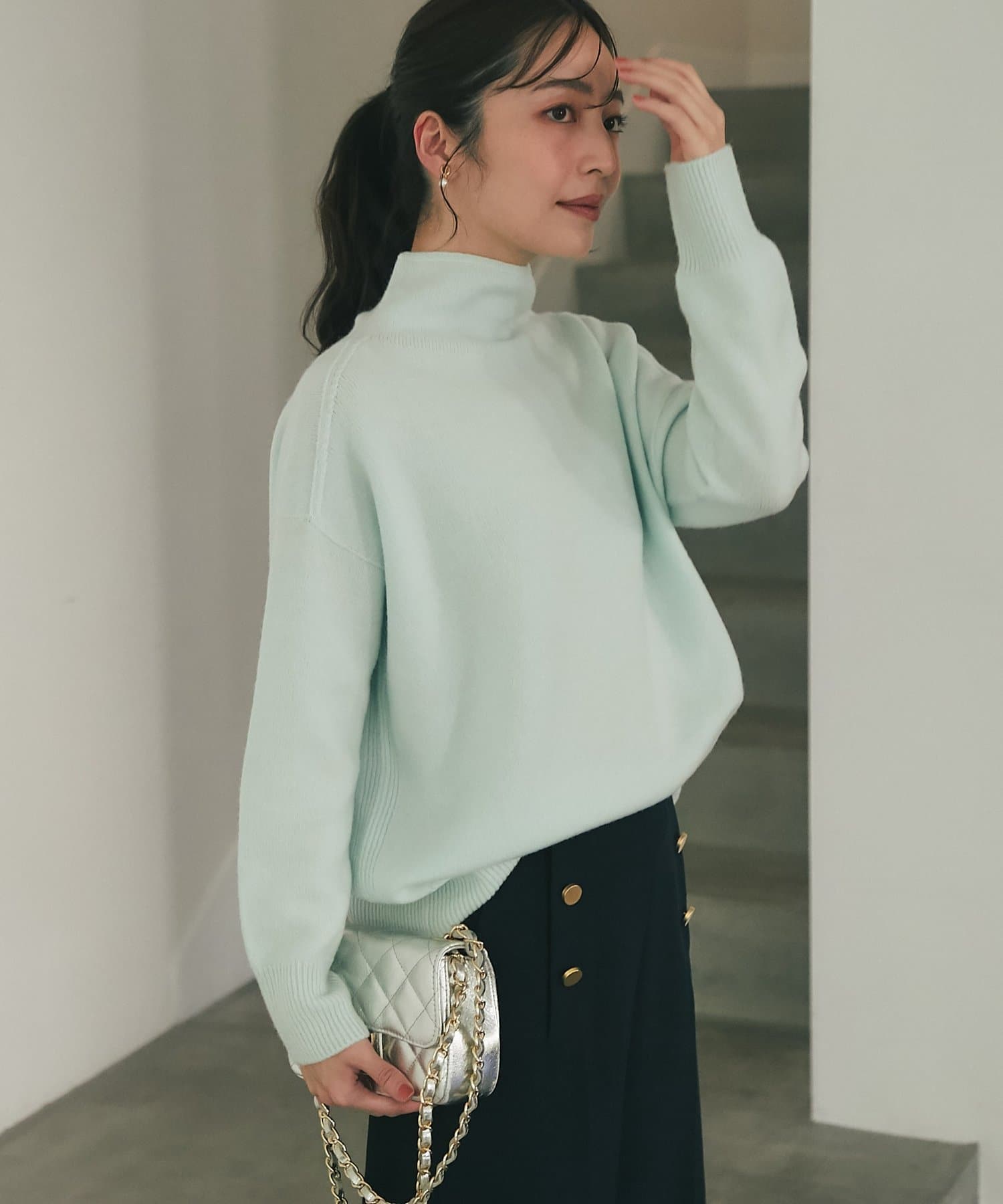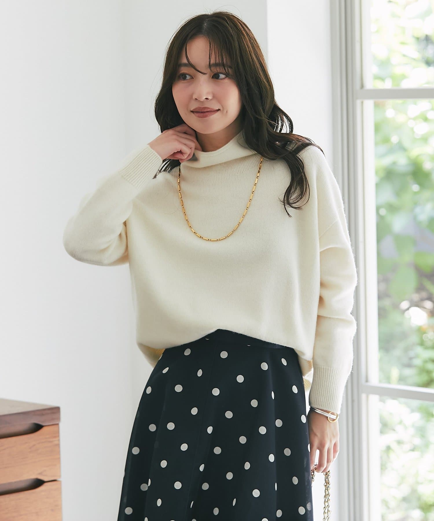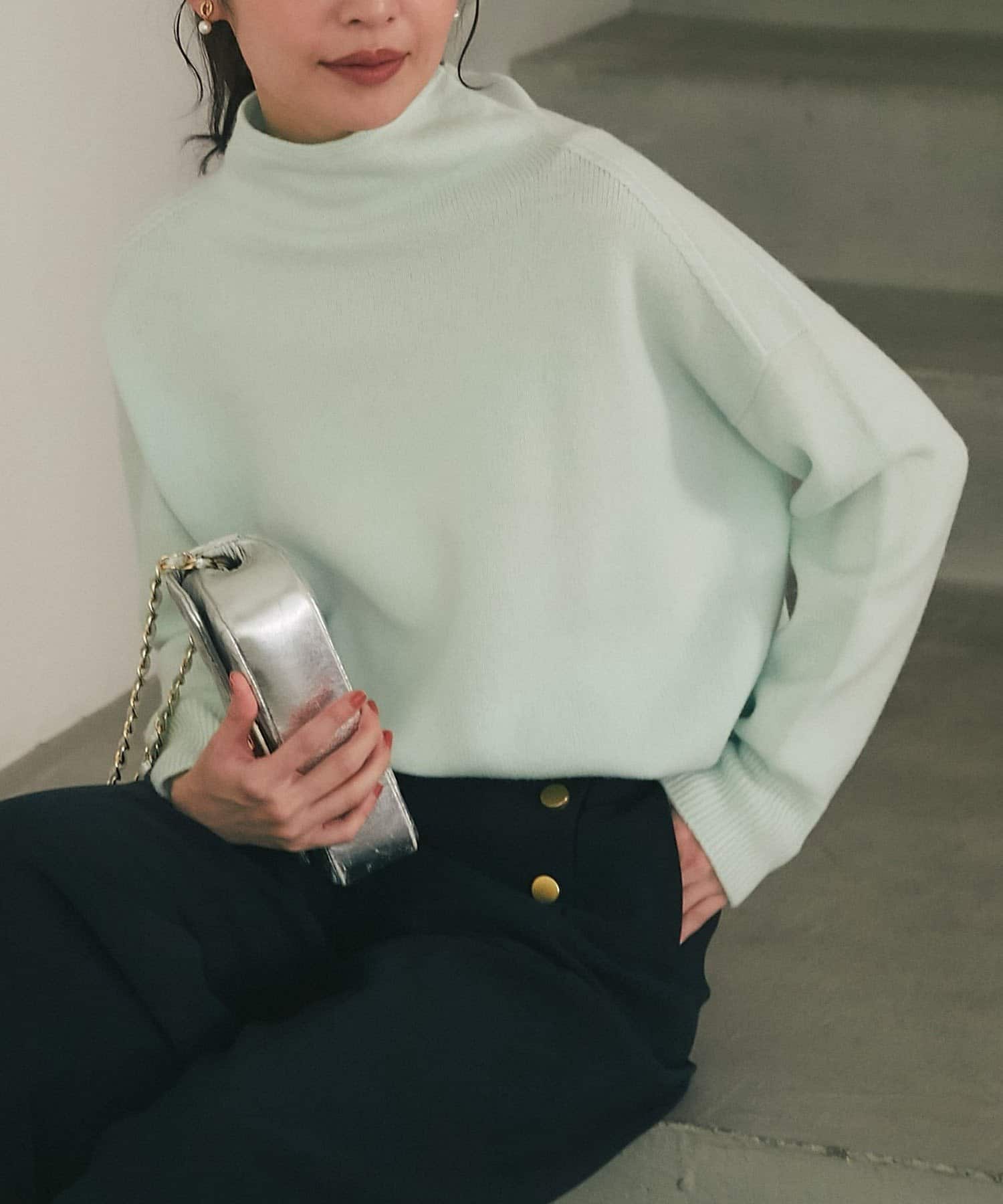 首元を包み込むボトルネックは、上品で洗練された印象を与えながら小顔効果も期待できます。
