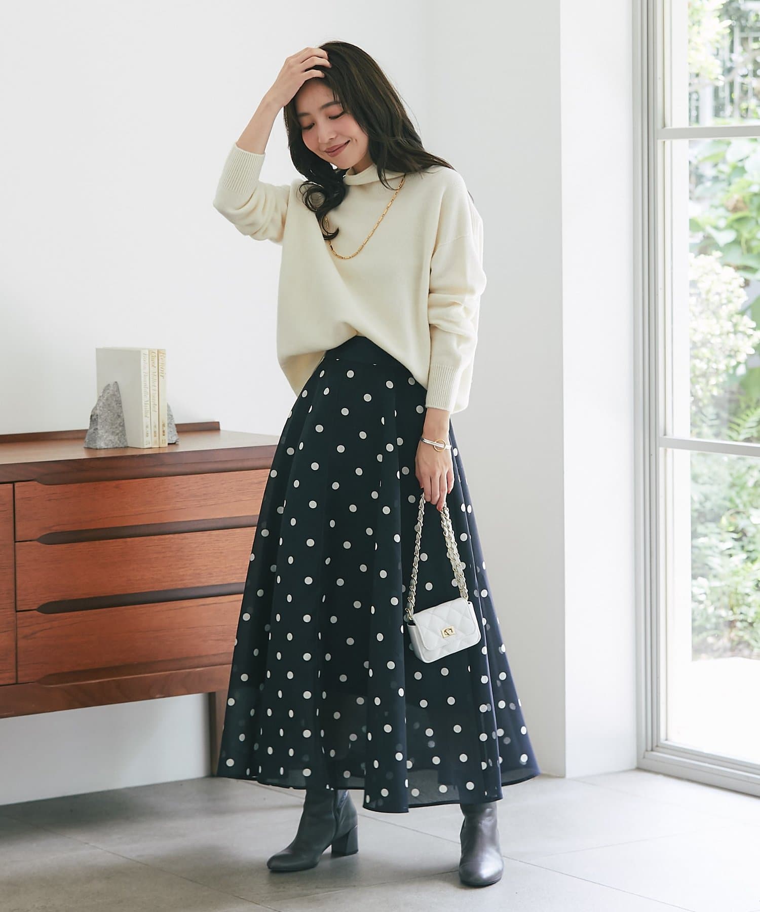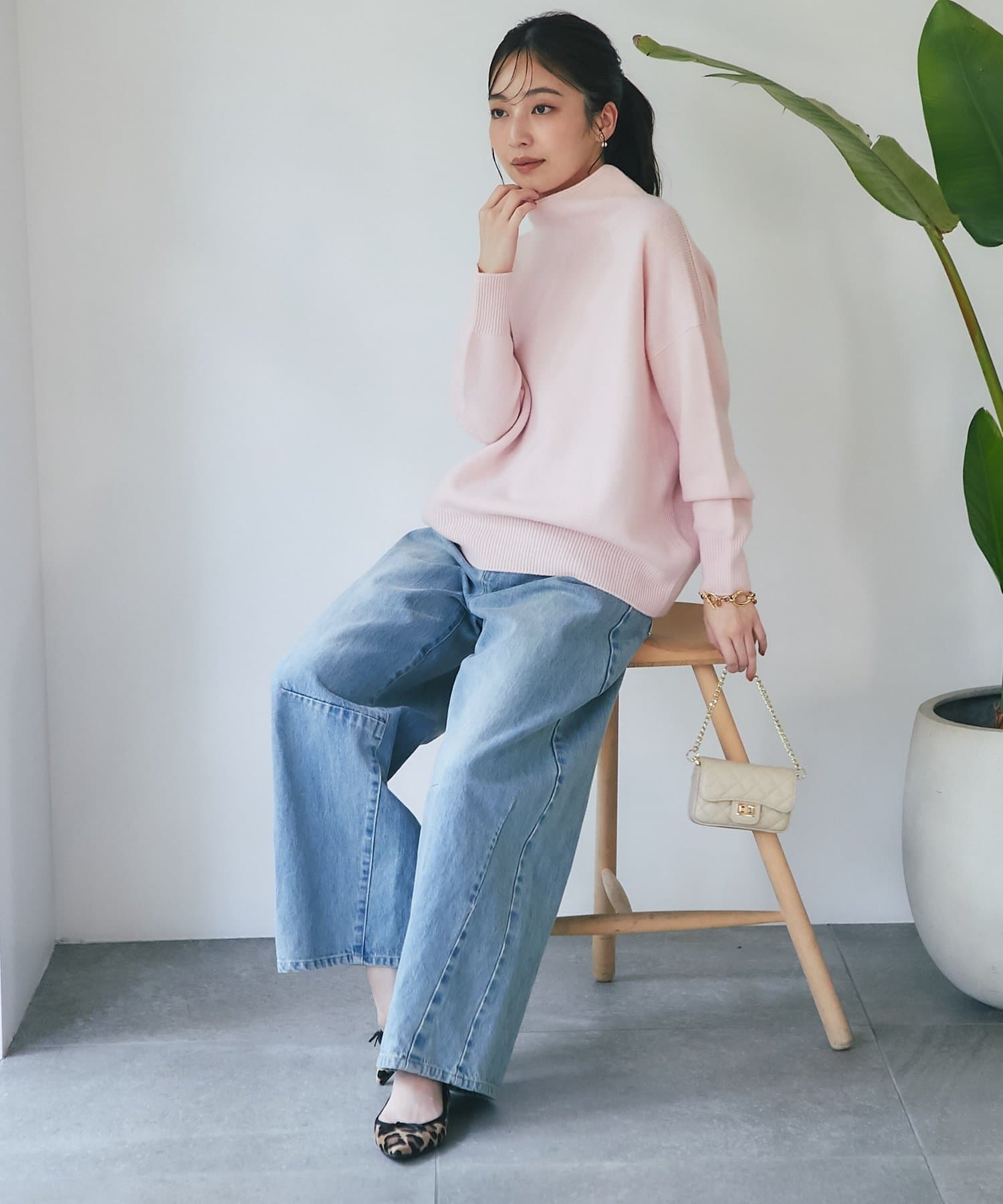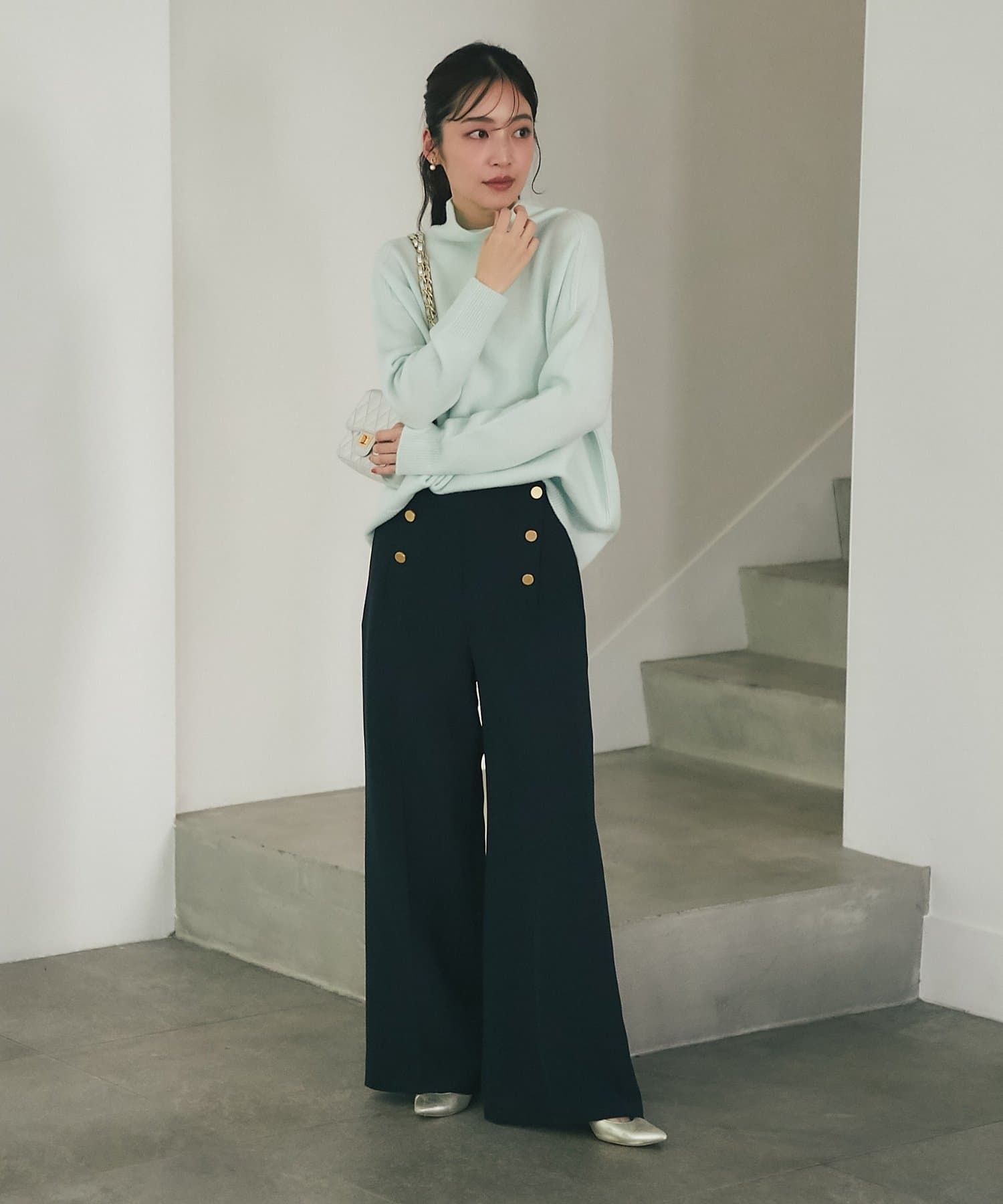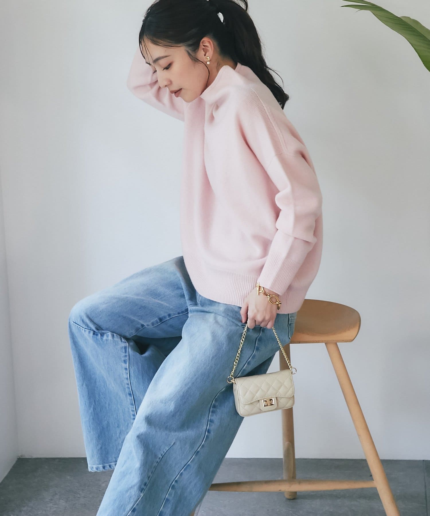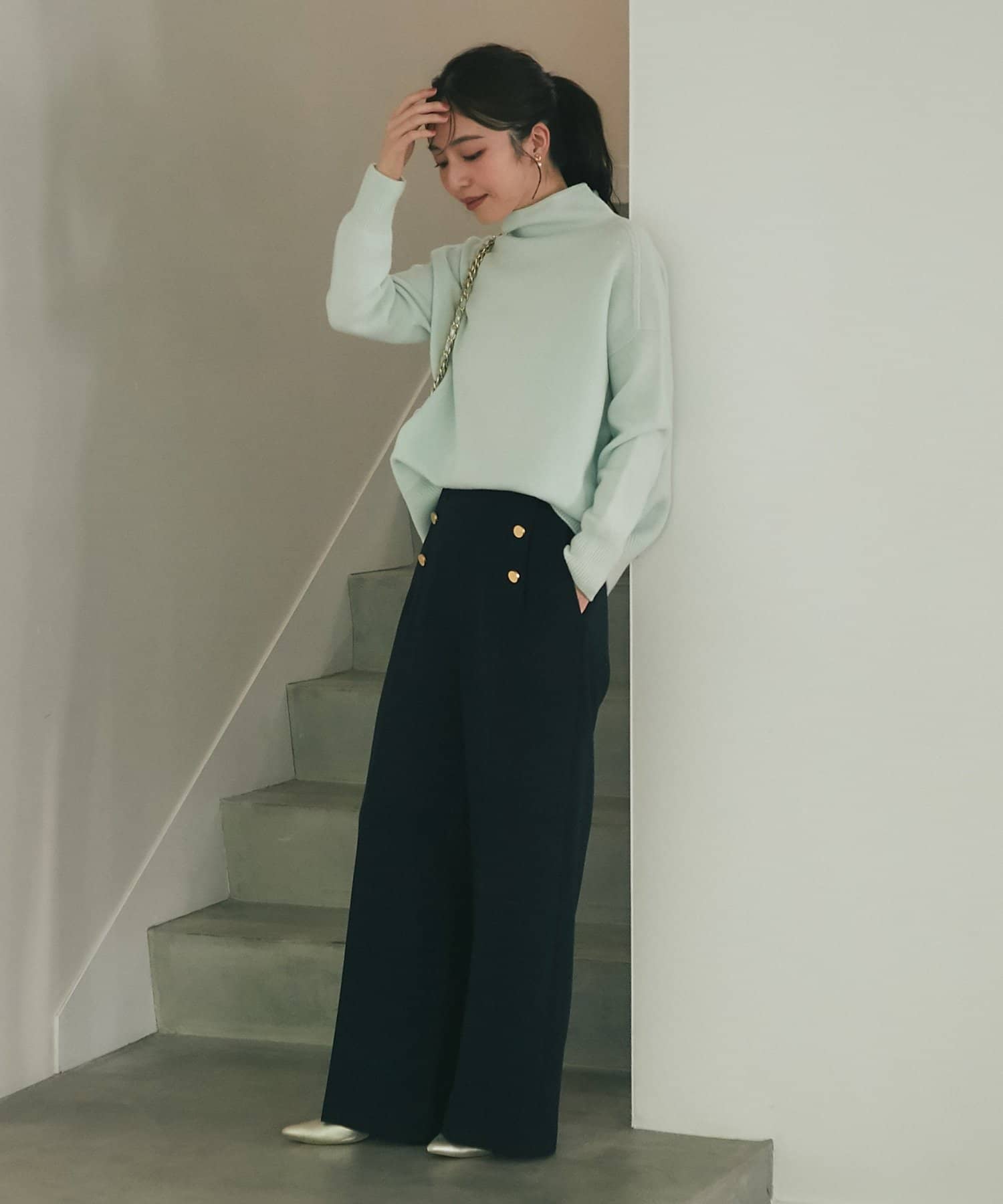 首元を包み込むボトルネックは、上品で洗練された印象を与えながら小顔効果も期待できます。