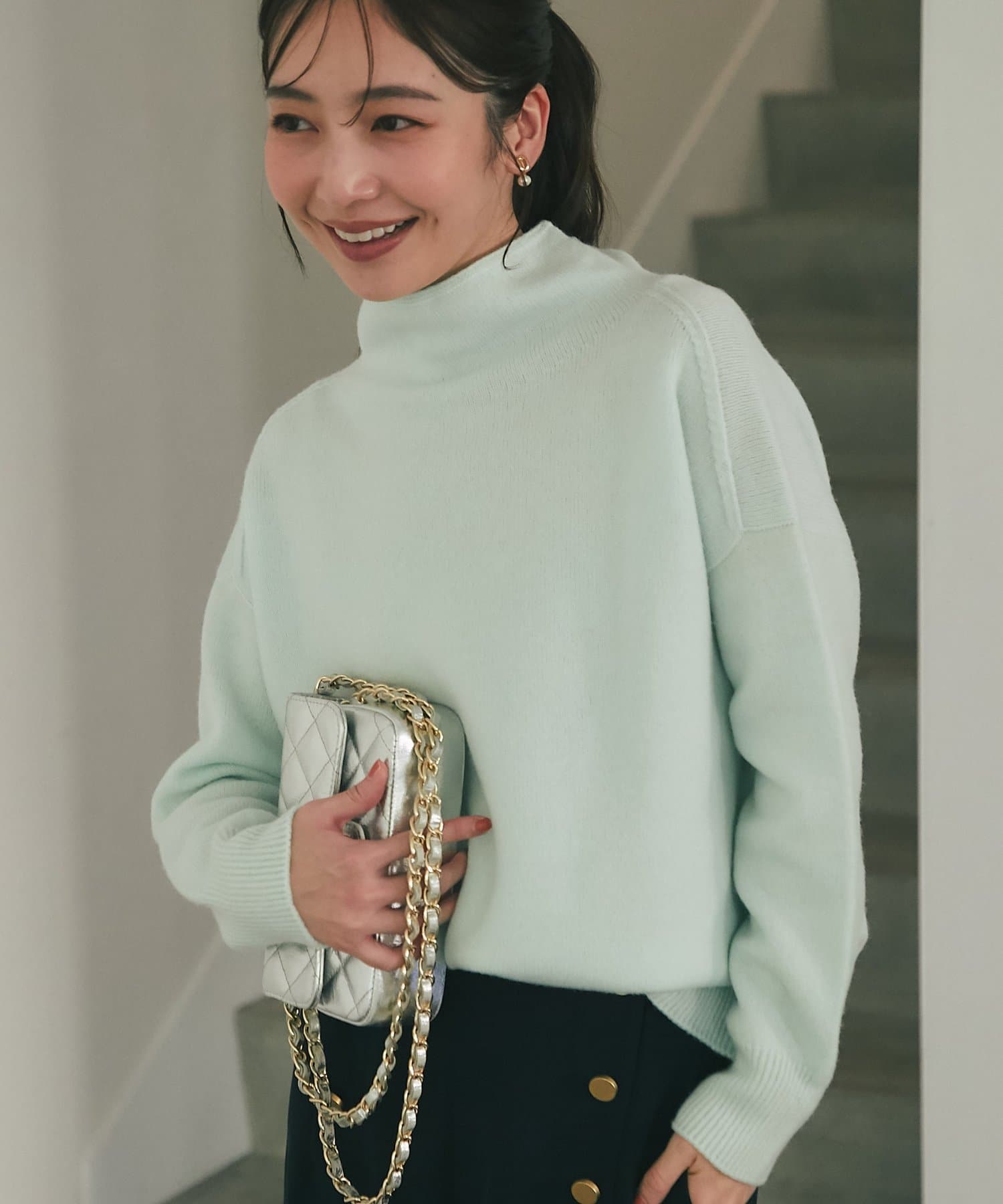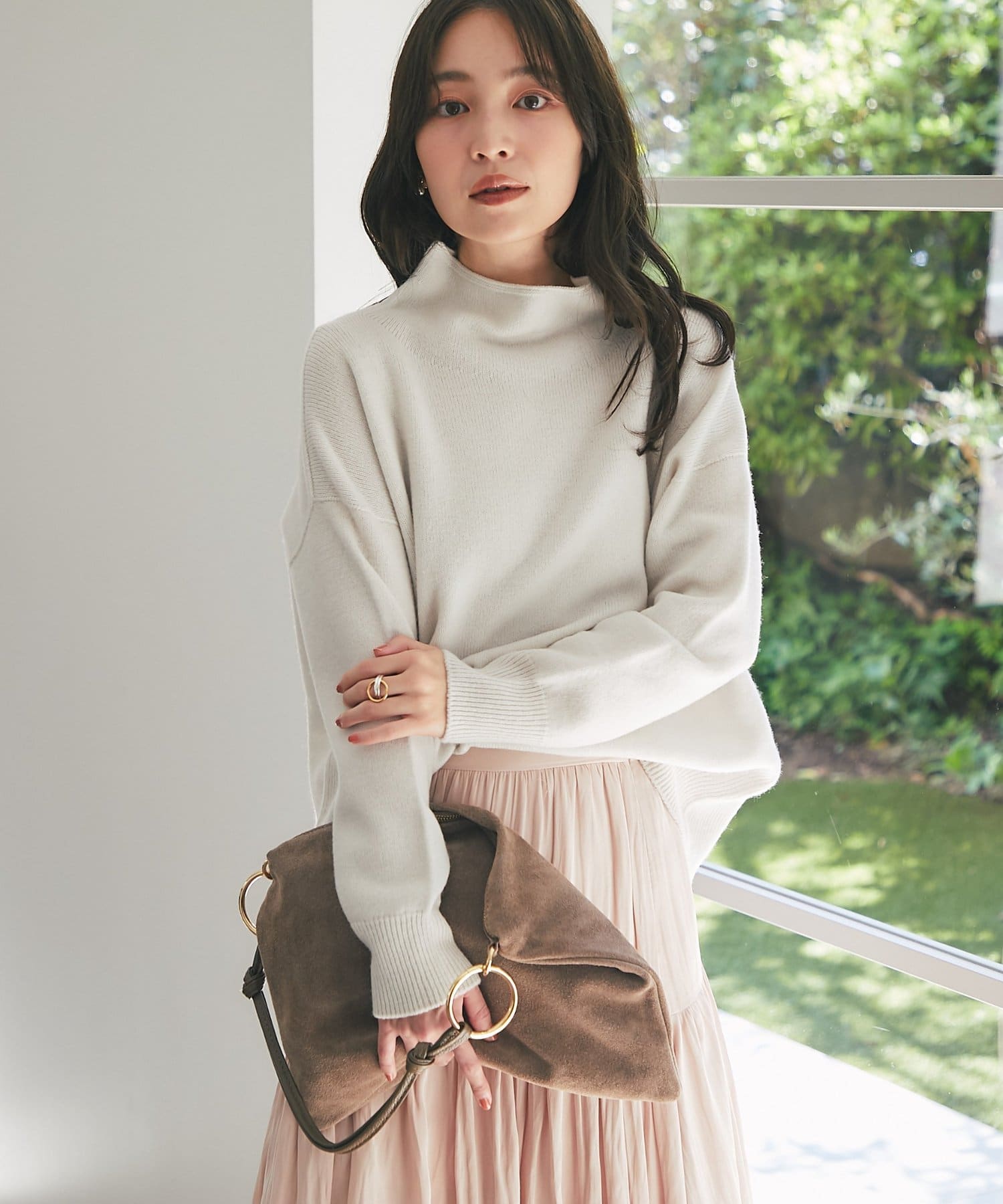 やわらかく包み込む、上質ウールのボトルネックニット。