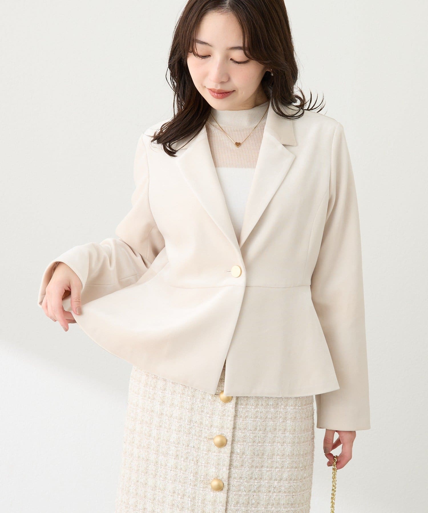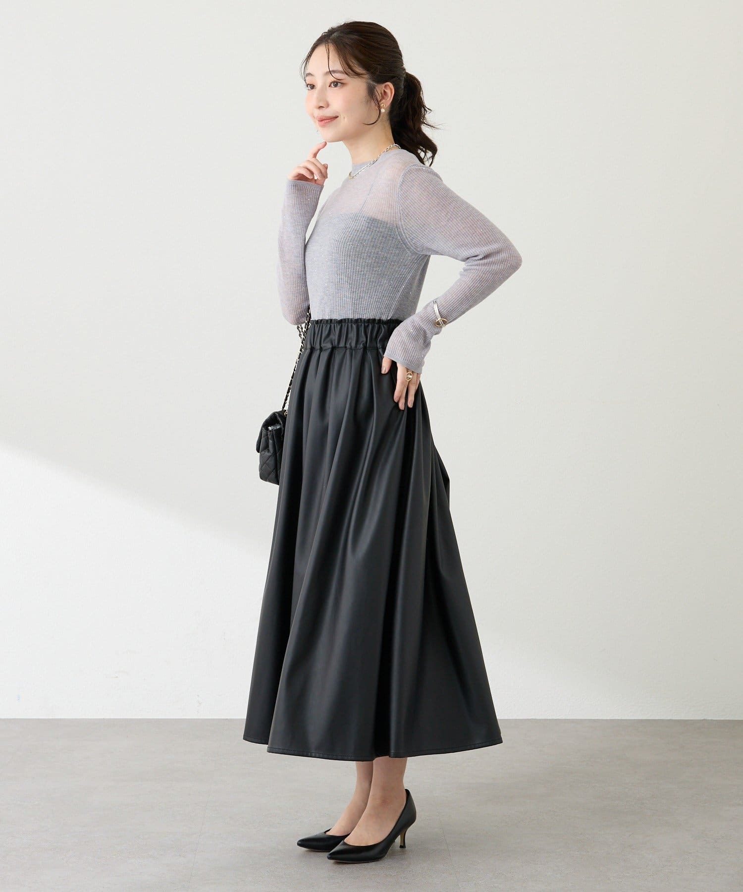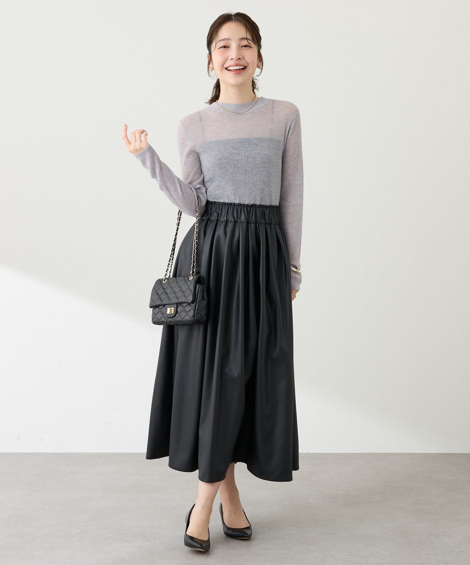 シアーな素材感がほんのりとした抜け感を演出し、トレンド感も漂います。