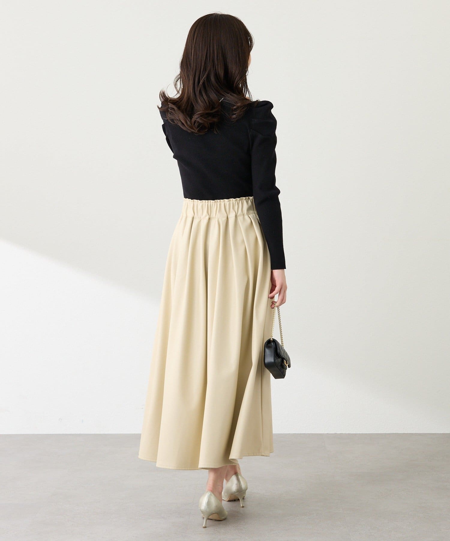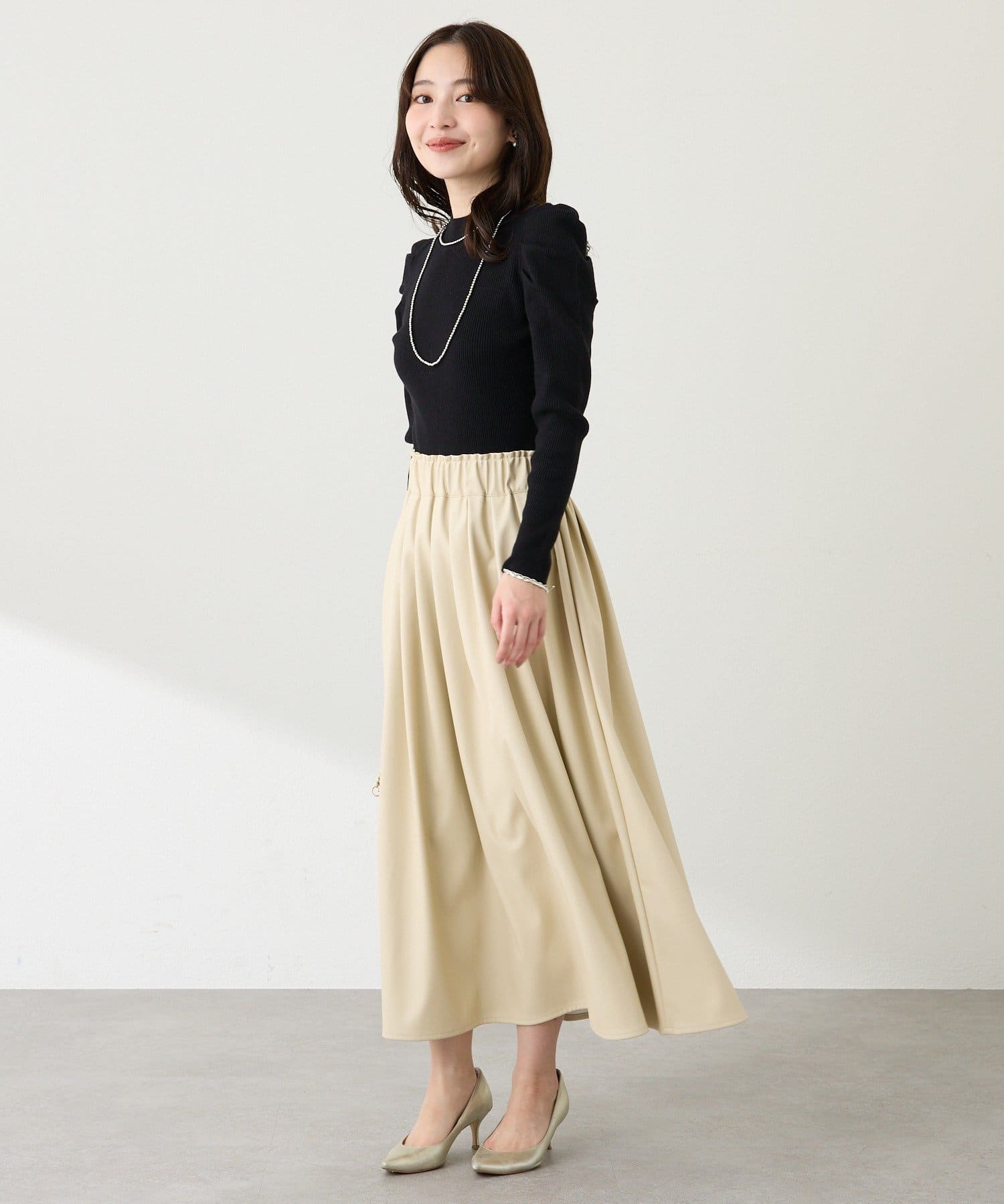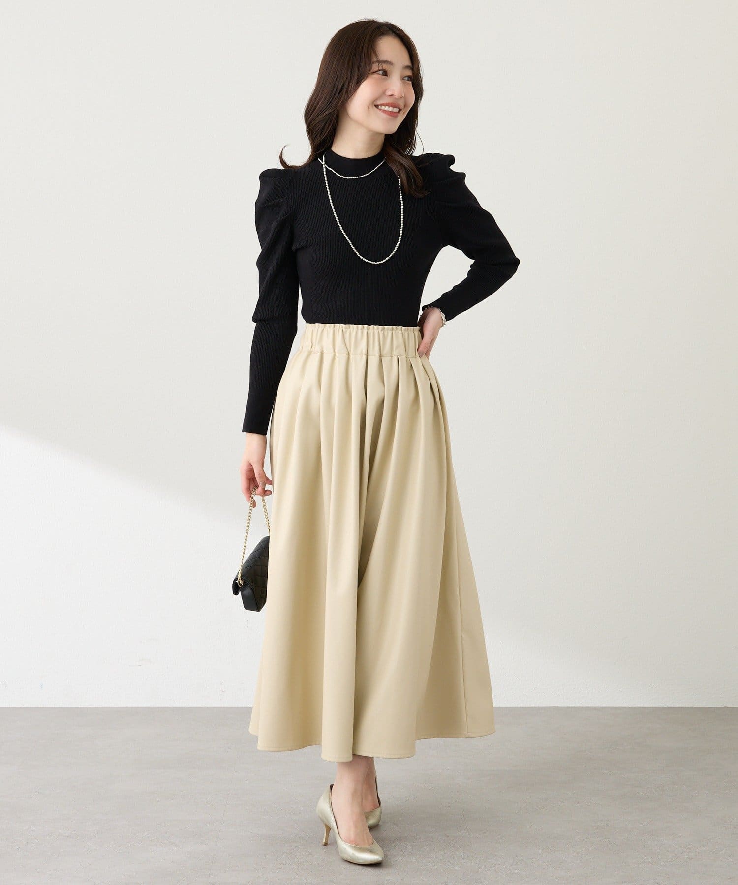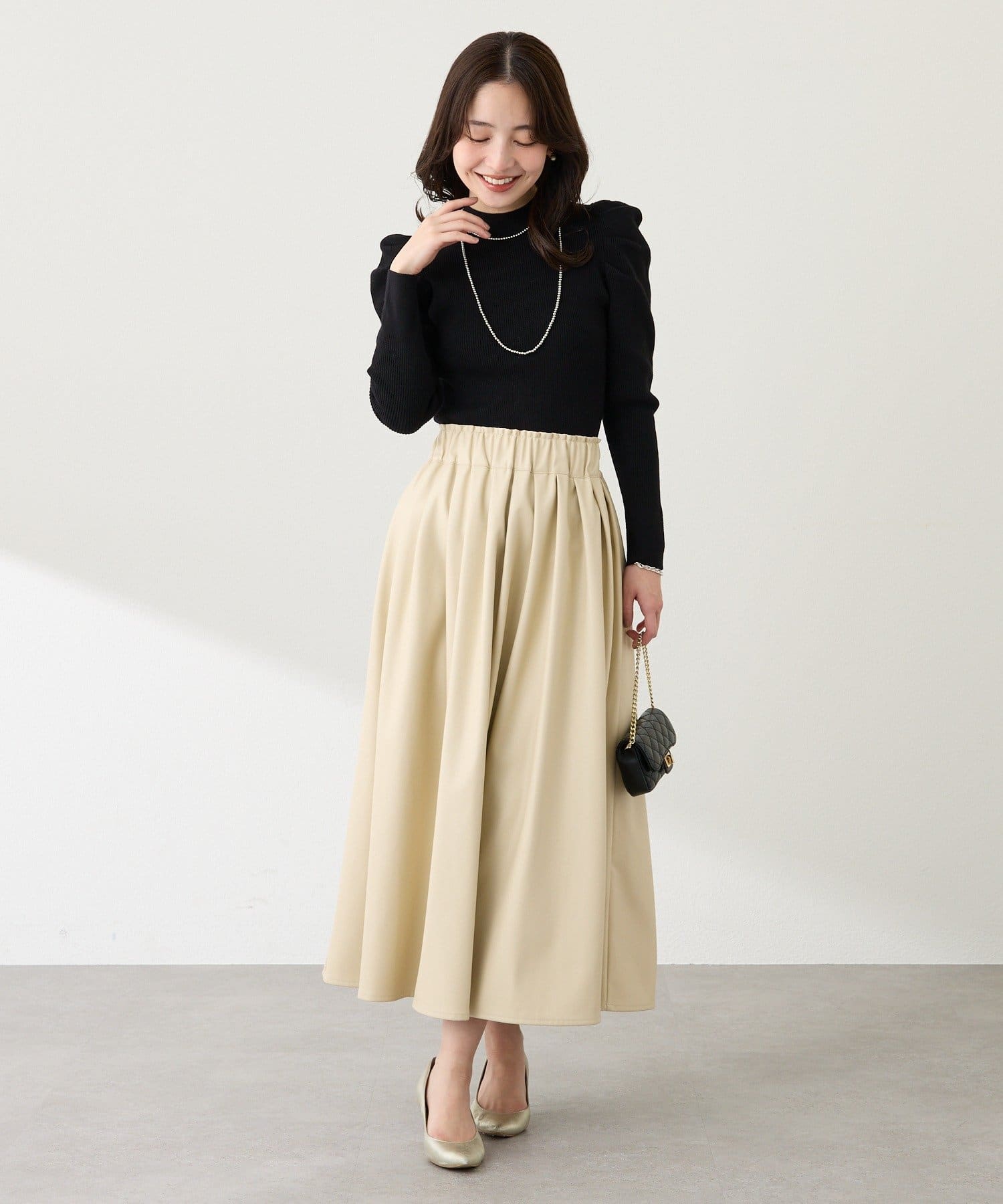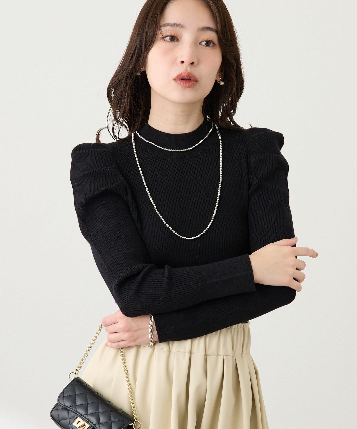 トレンドのパワショルデザインが、フェミニンな印象をプラスするリブニット。