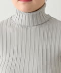 ハイネックデザインは首元をすっきりと見せ、上品な印象を演出。