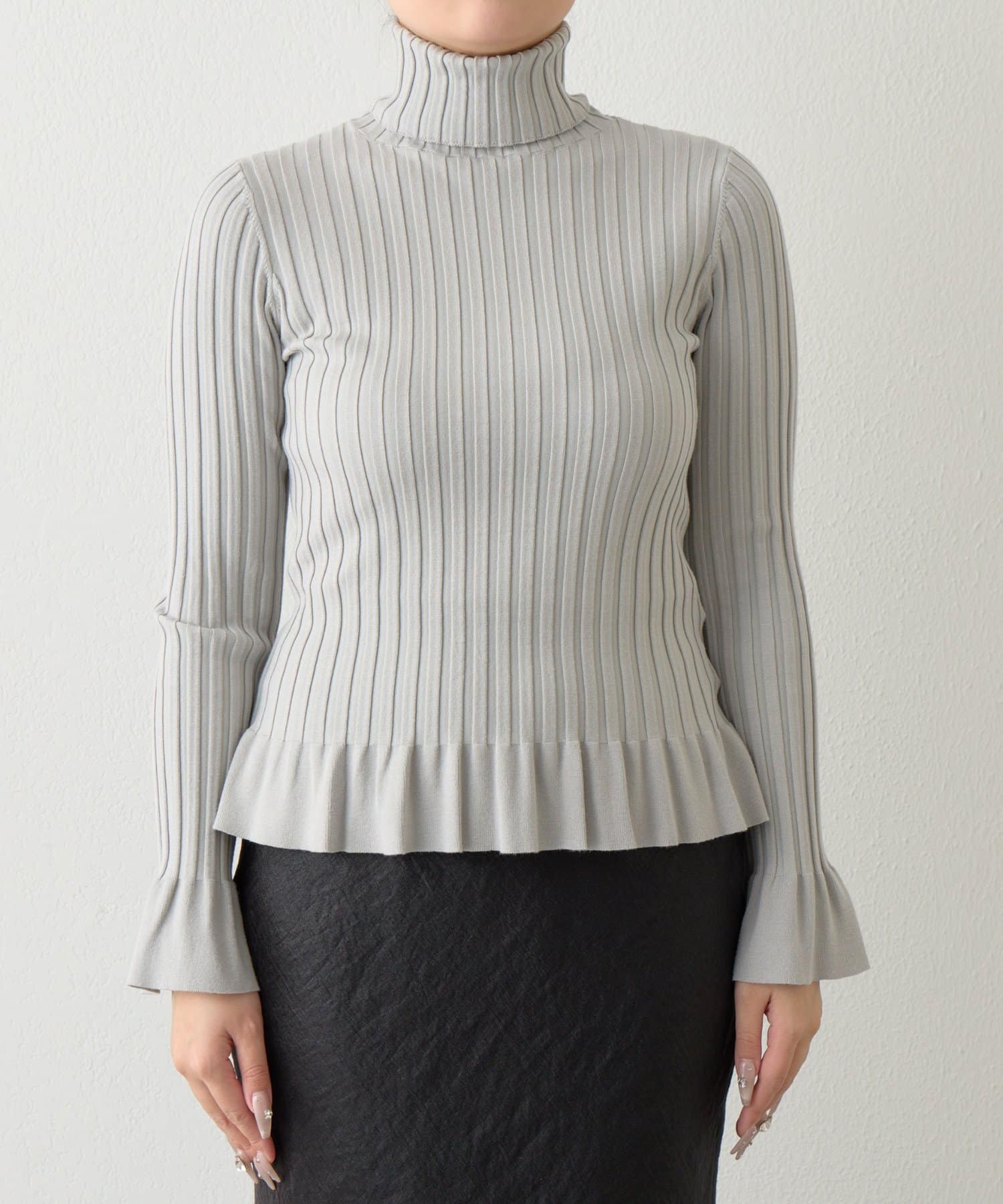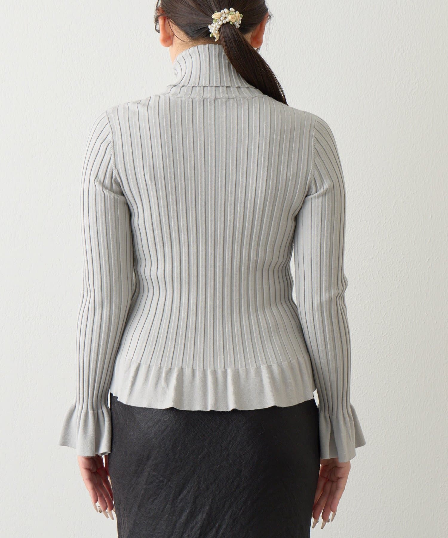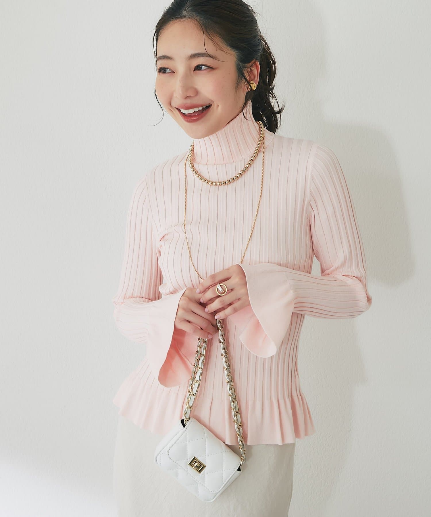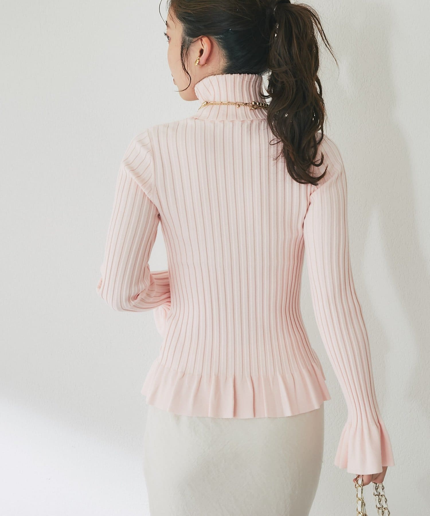 • La boutique BonBon(ラブティックボンボン) フリルハイネックリブニット