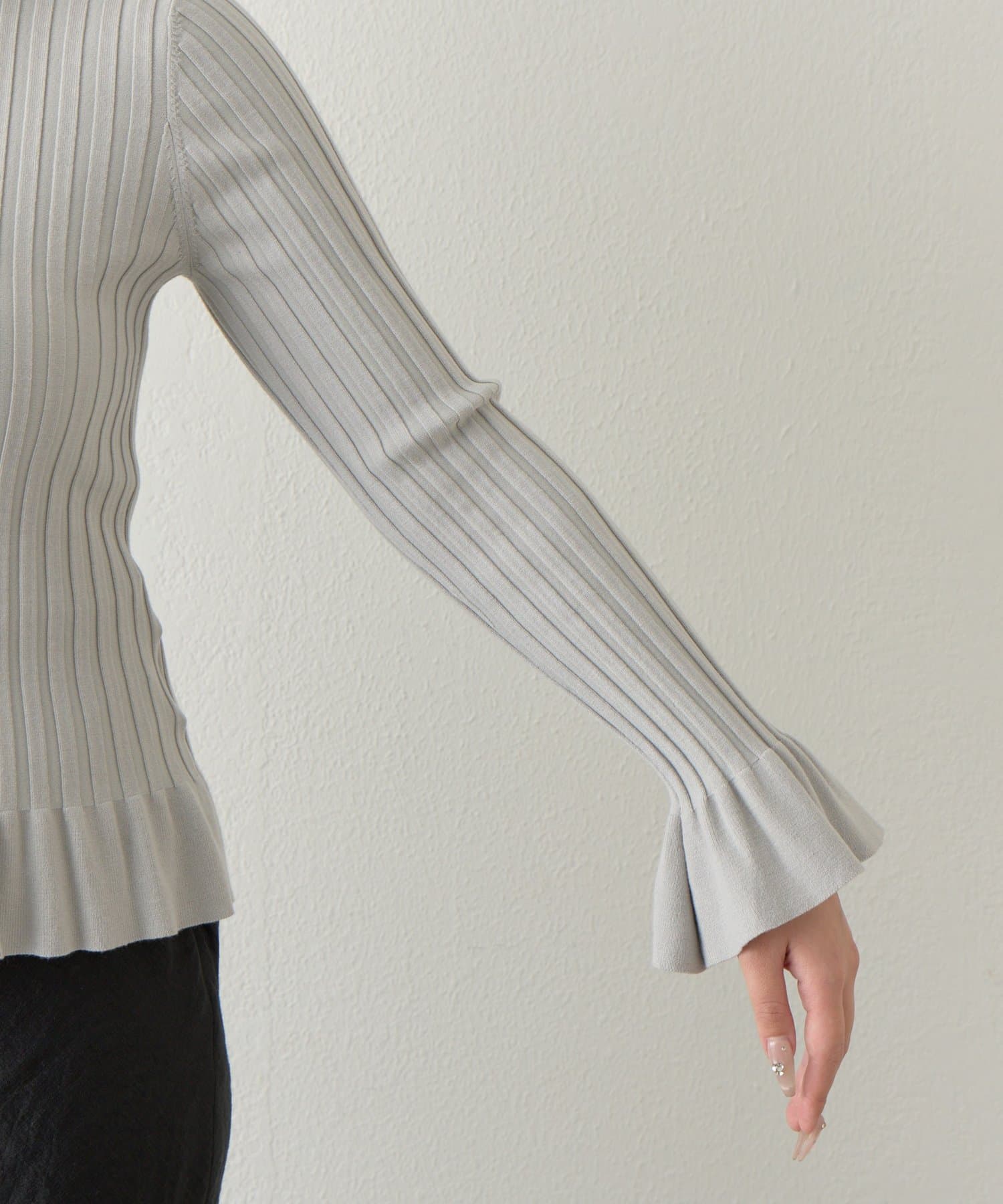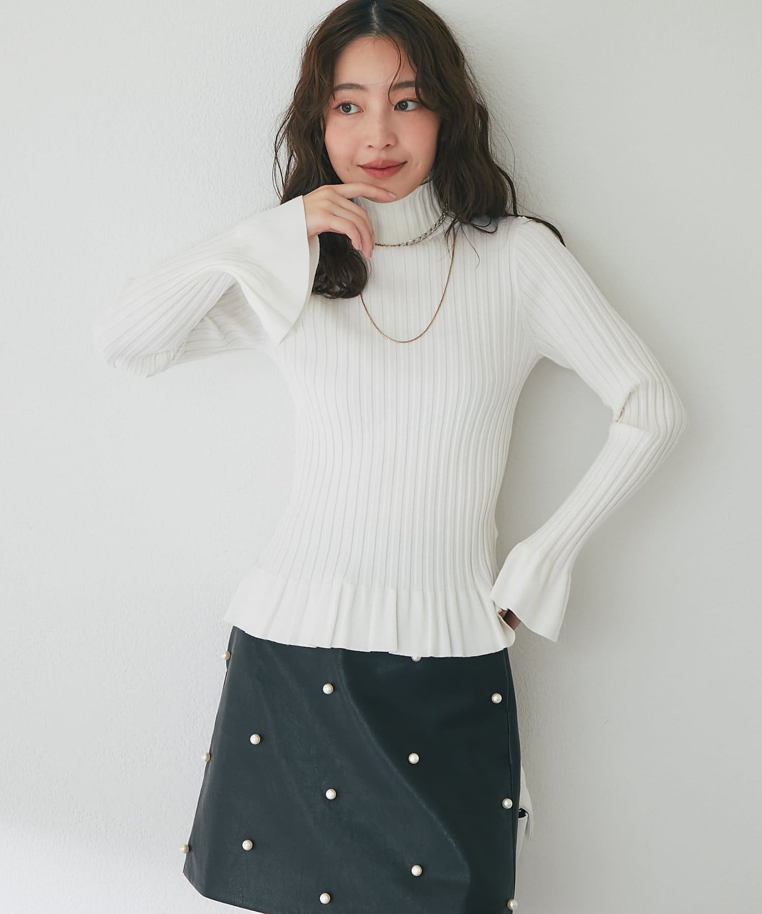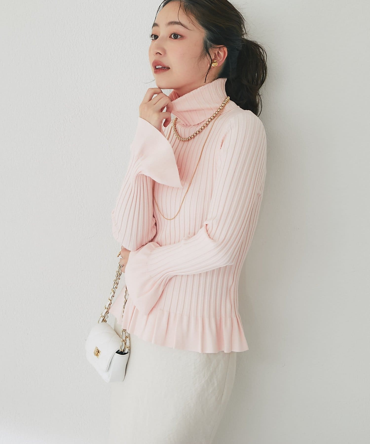 • La boutique BonBon(ラブティックボンボン) フリルハイネックリブニット