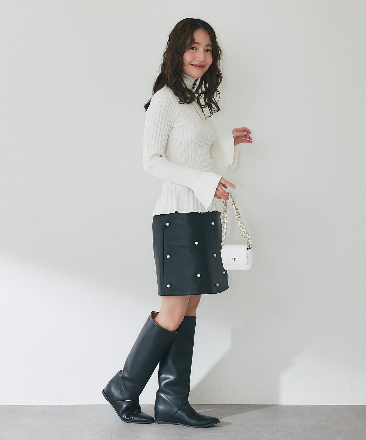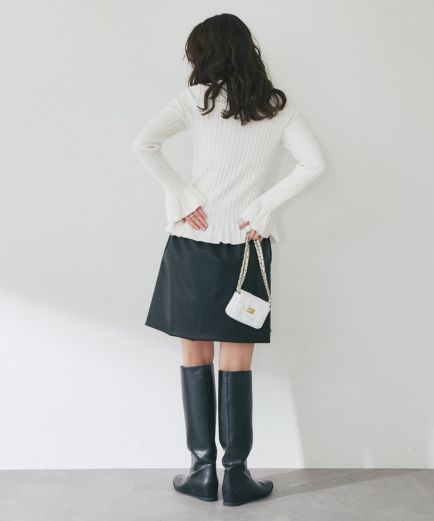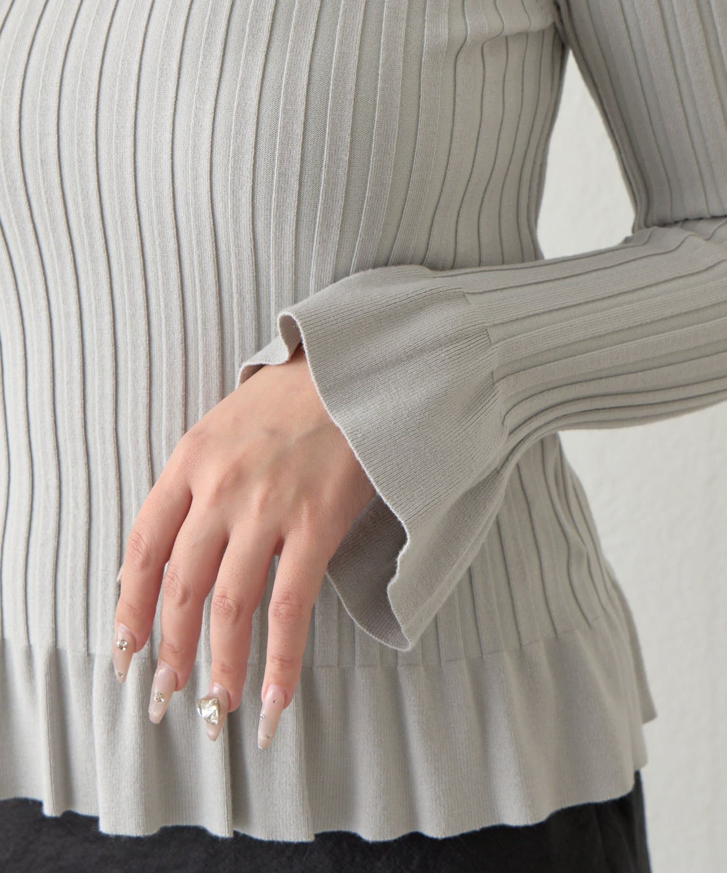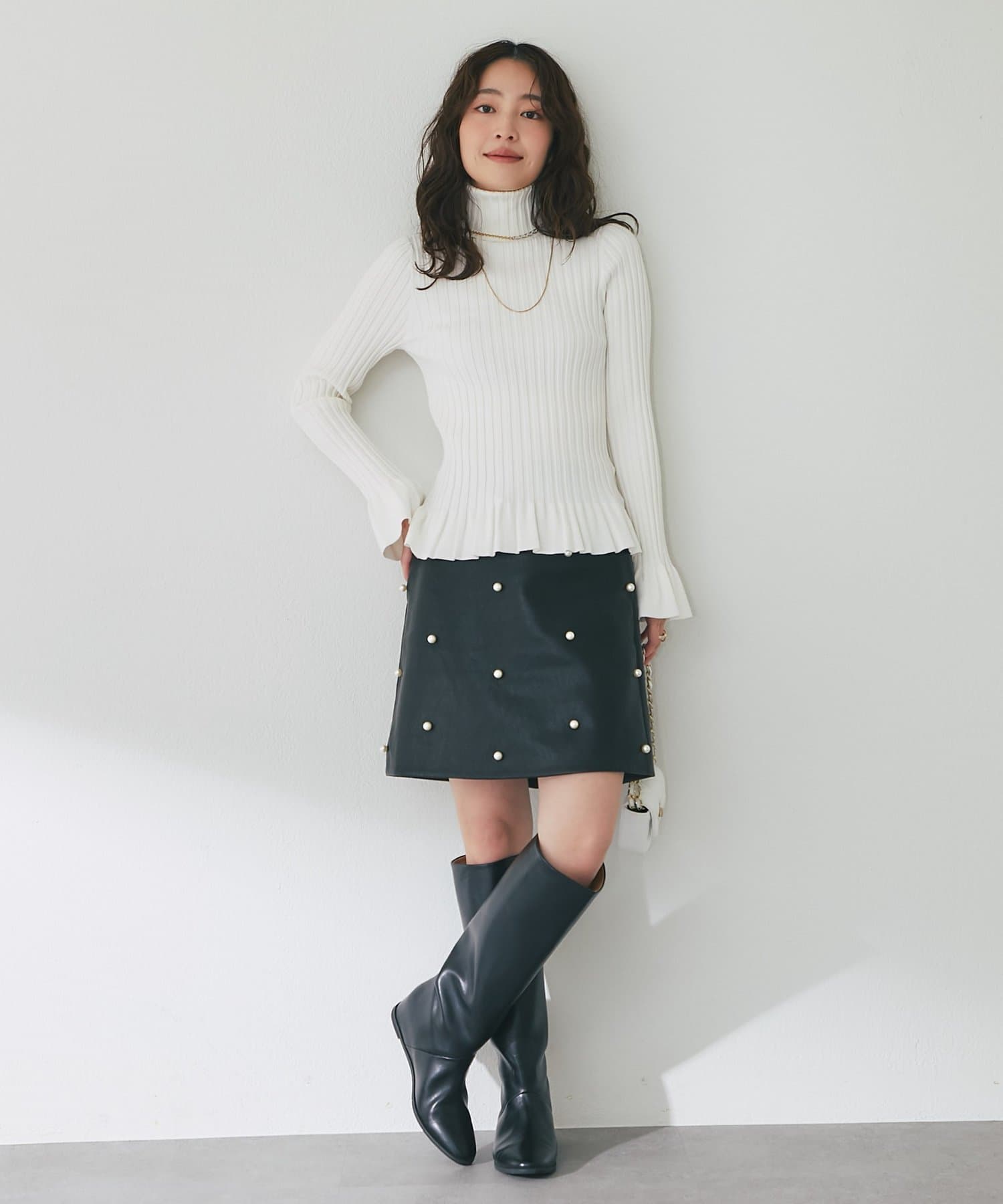 • La boutique BonBon(ラブティックボンボン) フリルハイネックリブニット