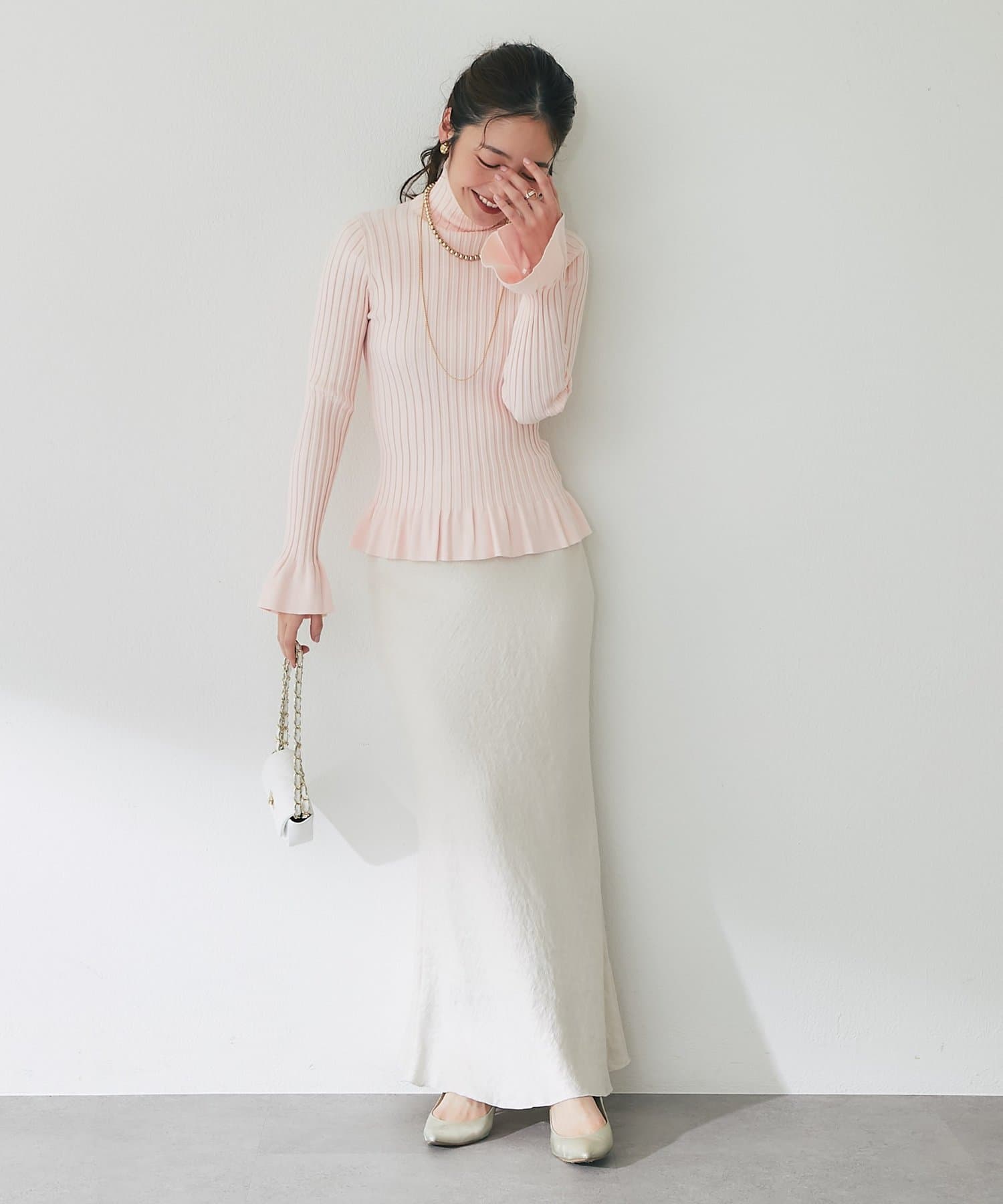フレアスカートやプリーツスカートと合わせれば、上品でフェミニンな印象に。