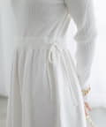 ウエストは両サイドのリボンで絞って調整でき、メリハリのあるシルエットに。