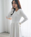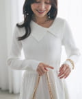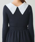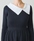 大きめの襟が目を引くクラシカルなニットワンピース。