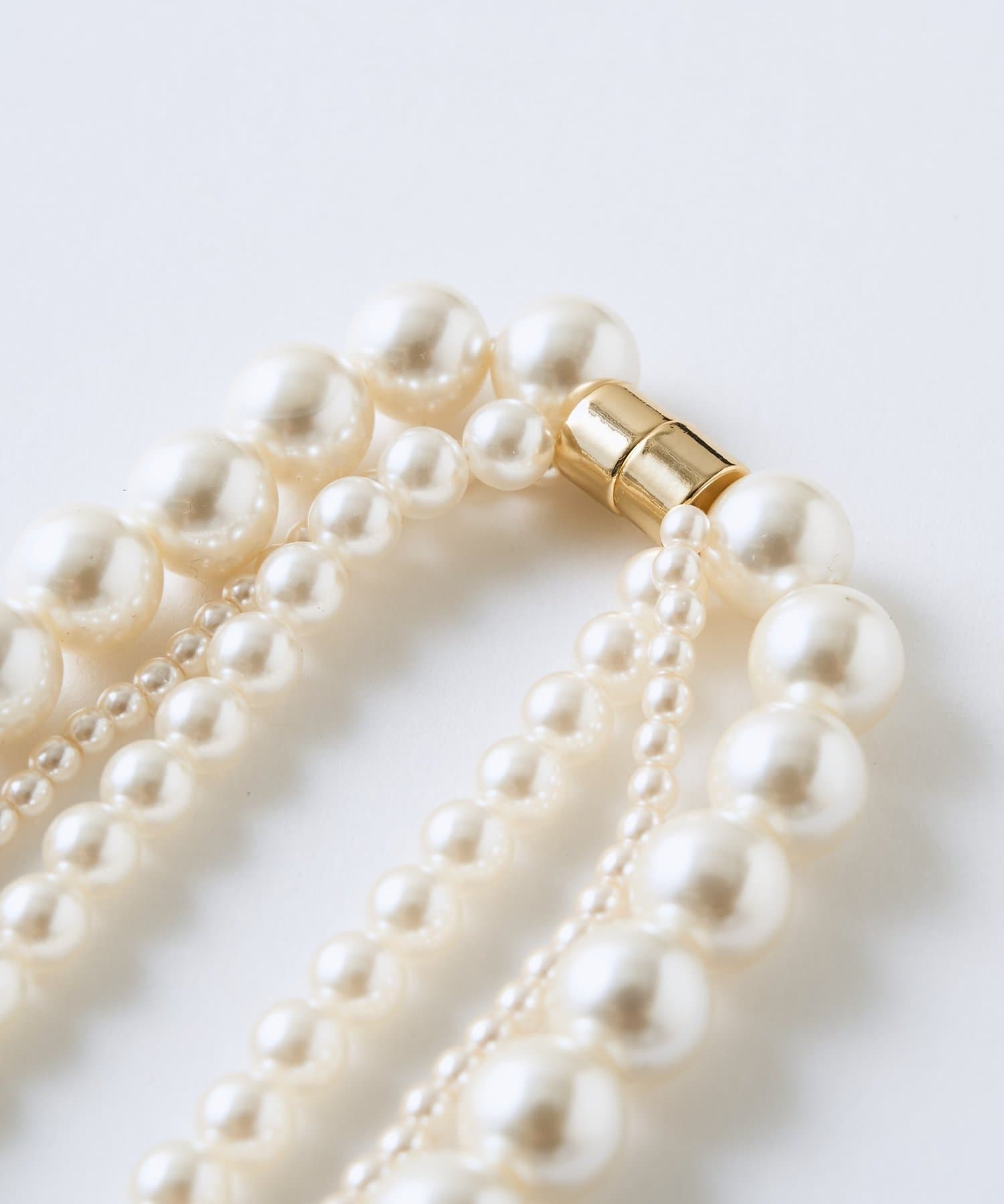 サイズ様々なパールが連なっておりエレガントな3連のデザイン。