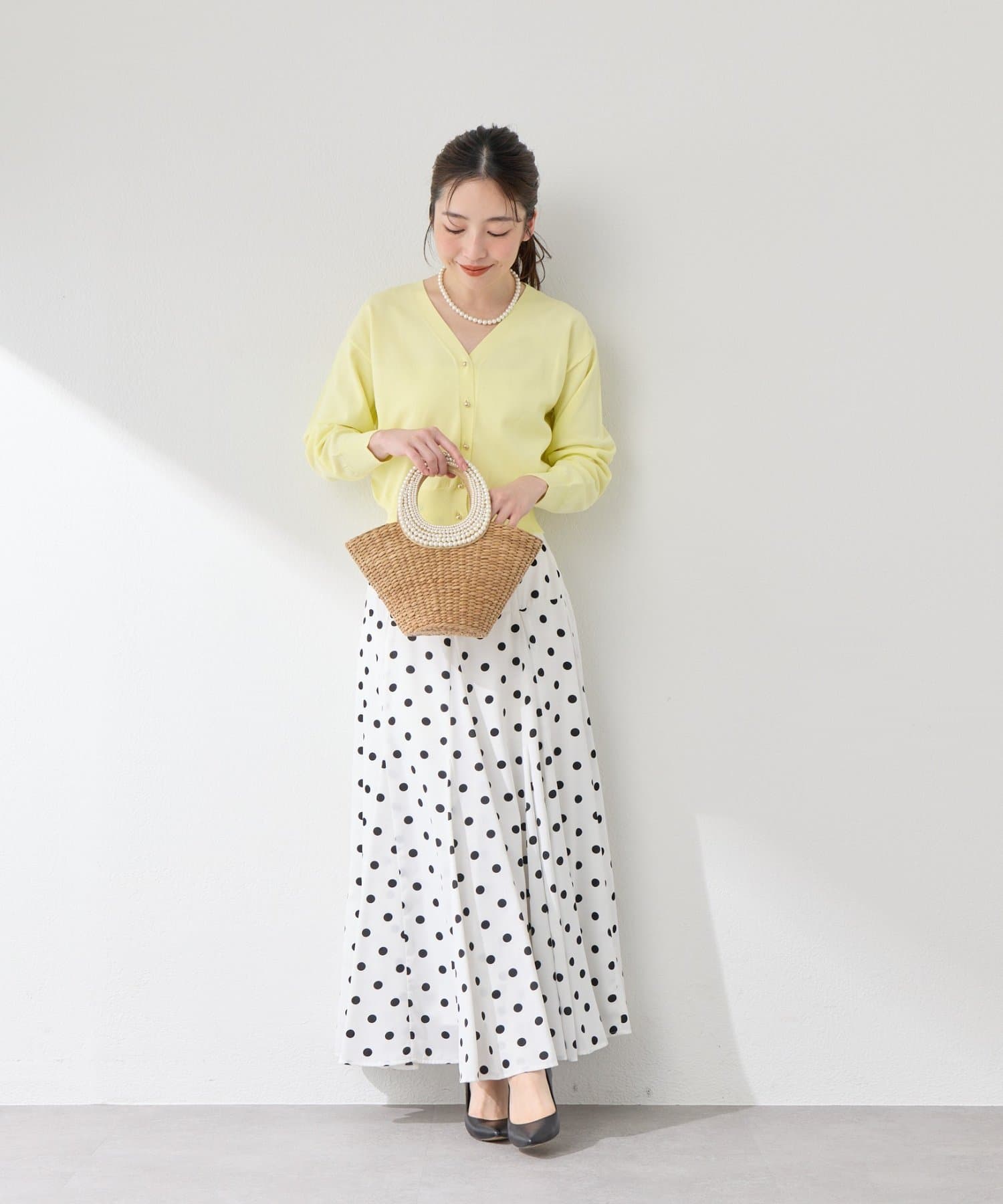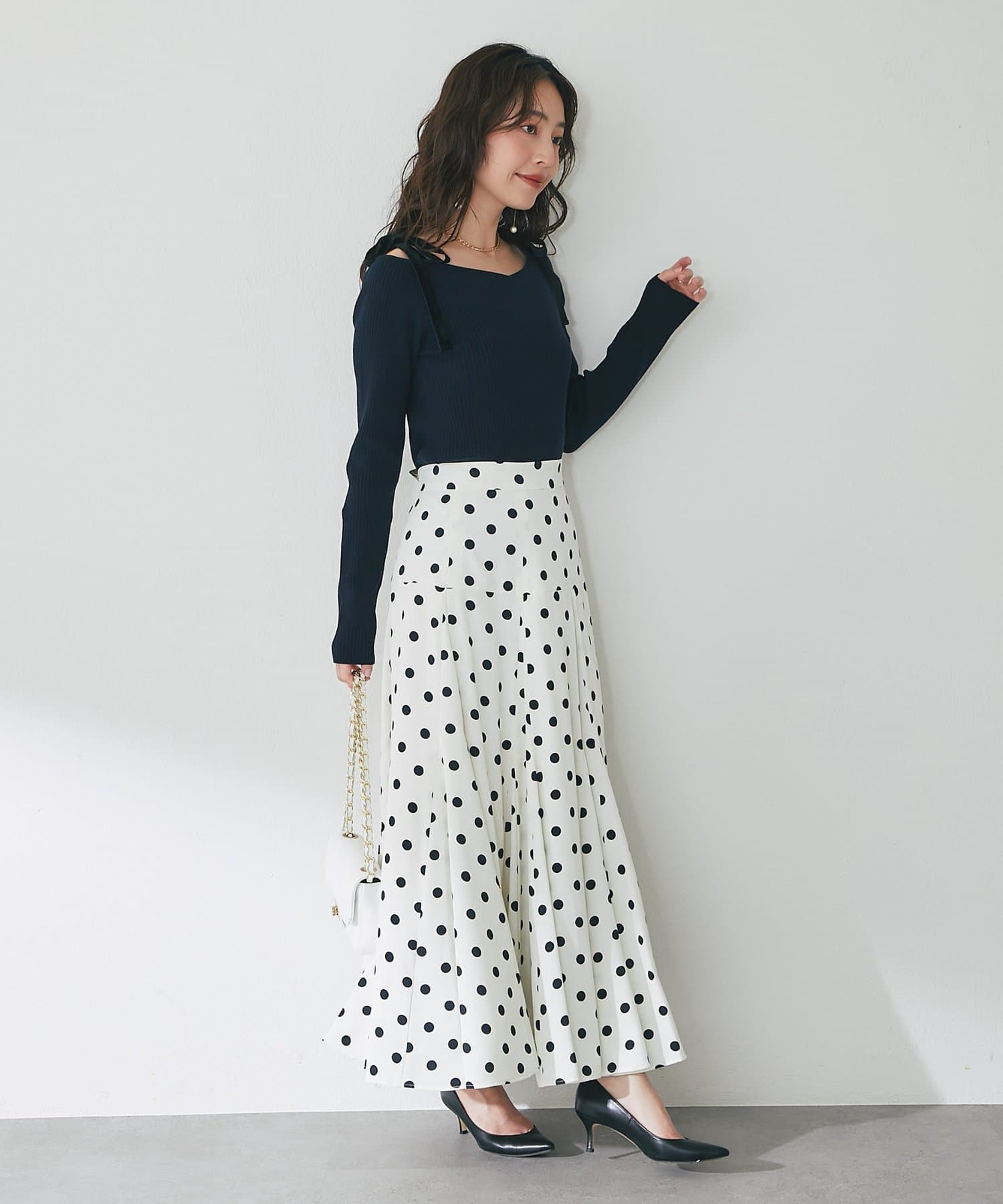 大きすぎないドット柄は、可愛らしさだけでなく、落ち着いた大人の雰囲気も演出します。