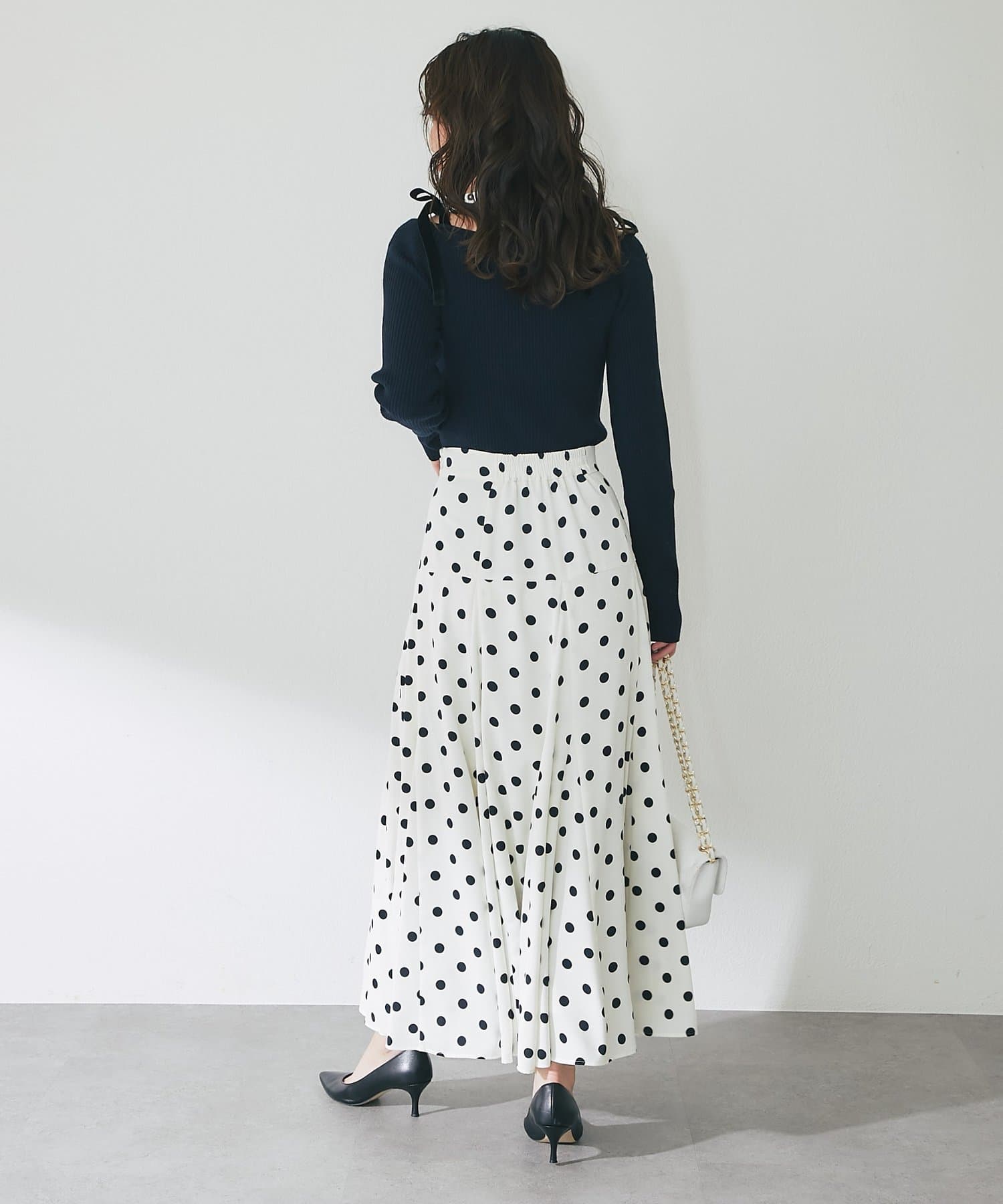 クラシカルで上品なドット柄が目を引くフレアスカート。