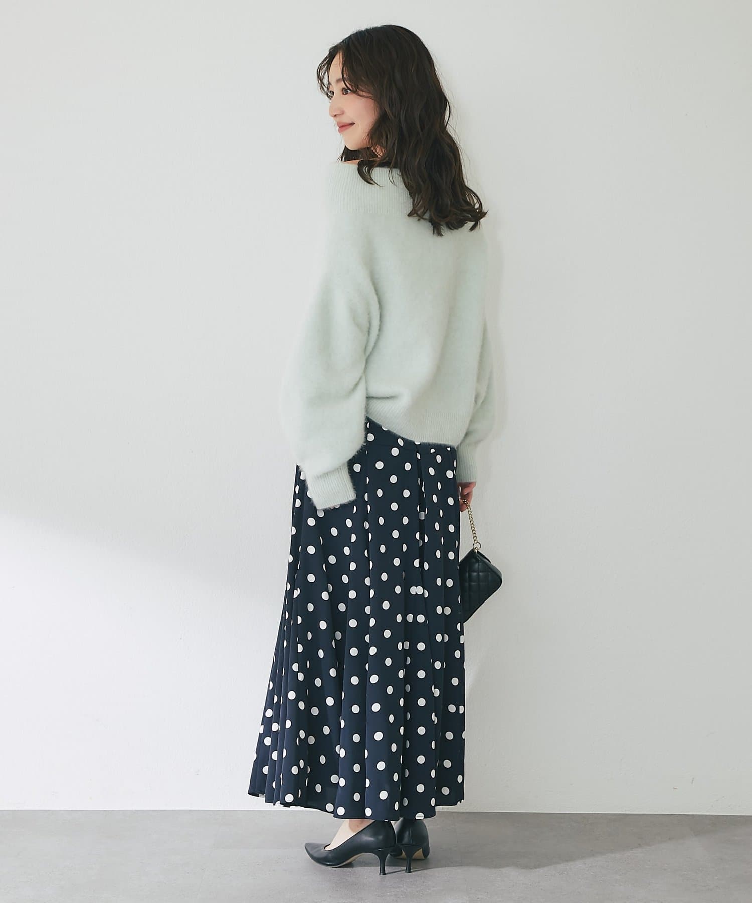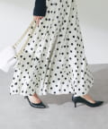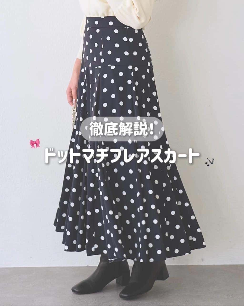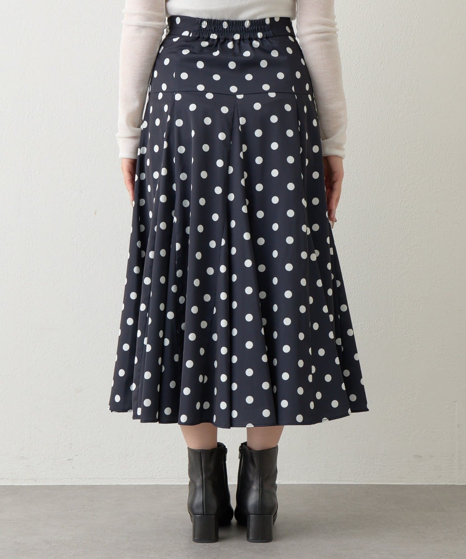 クラシカルで上品なドット柄が目を引くフレアスカート。