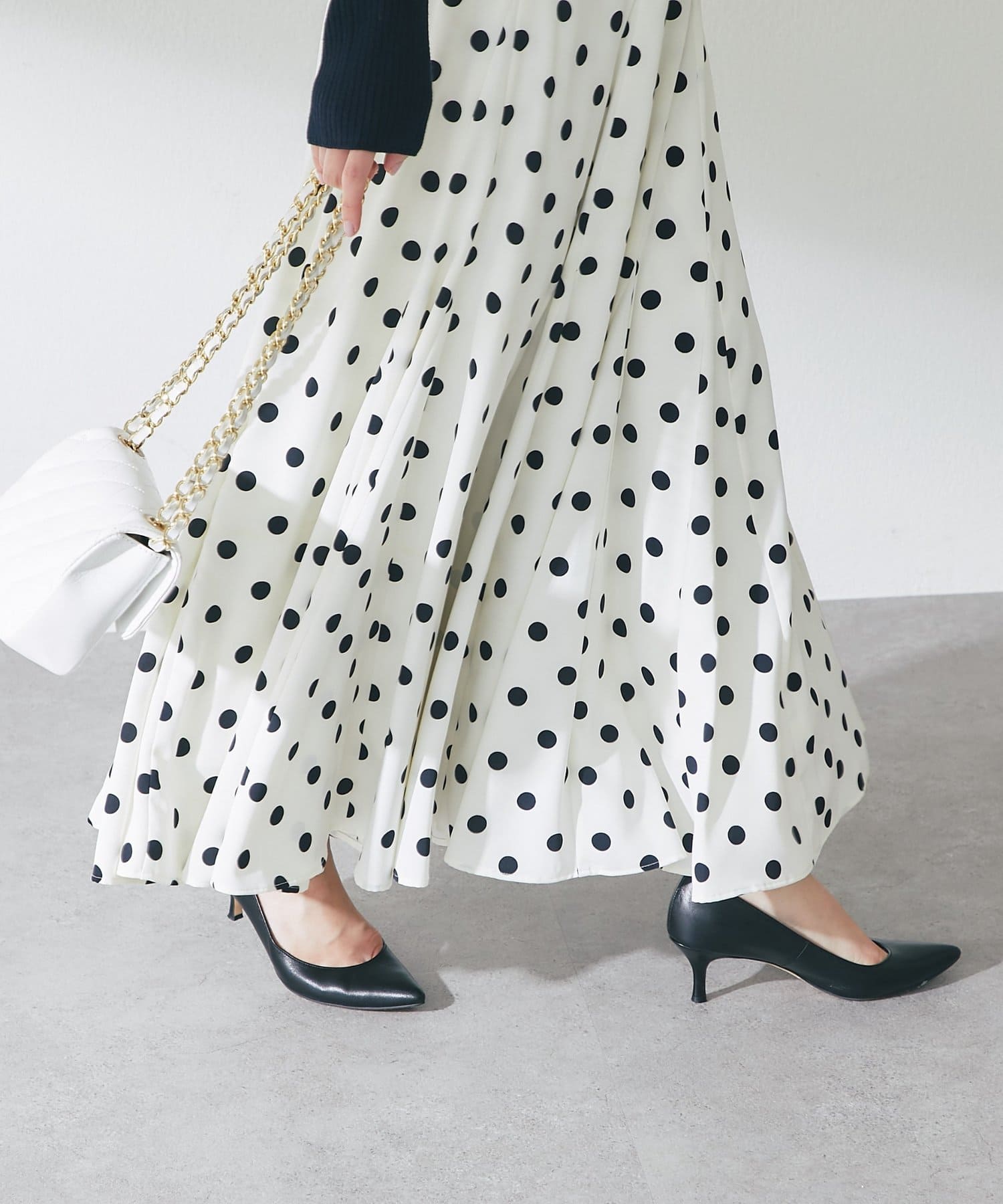 【3サイズ展開あり・リッチな揺れ感】ドットマチフレアスカート