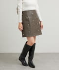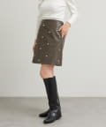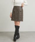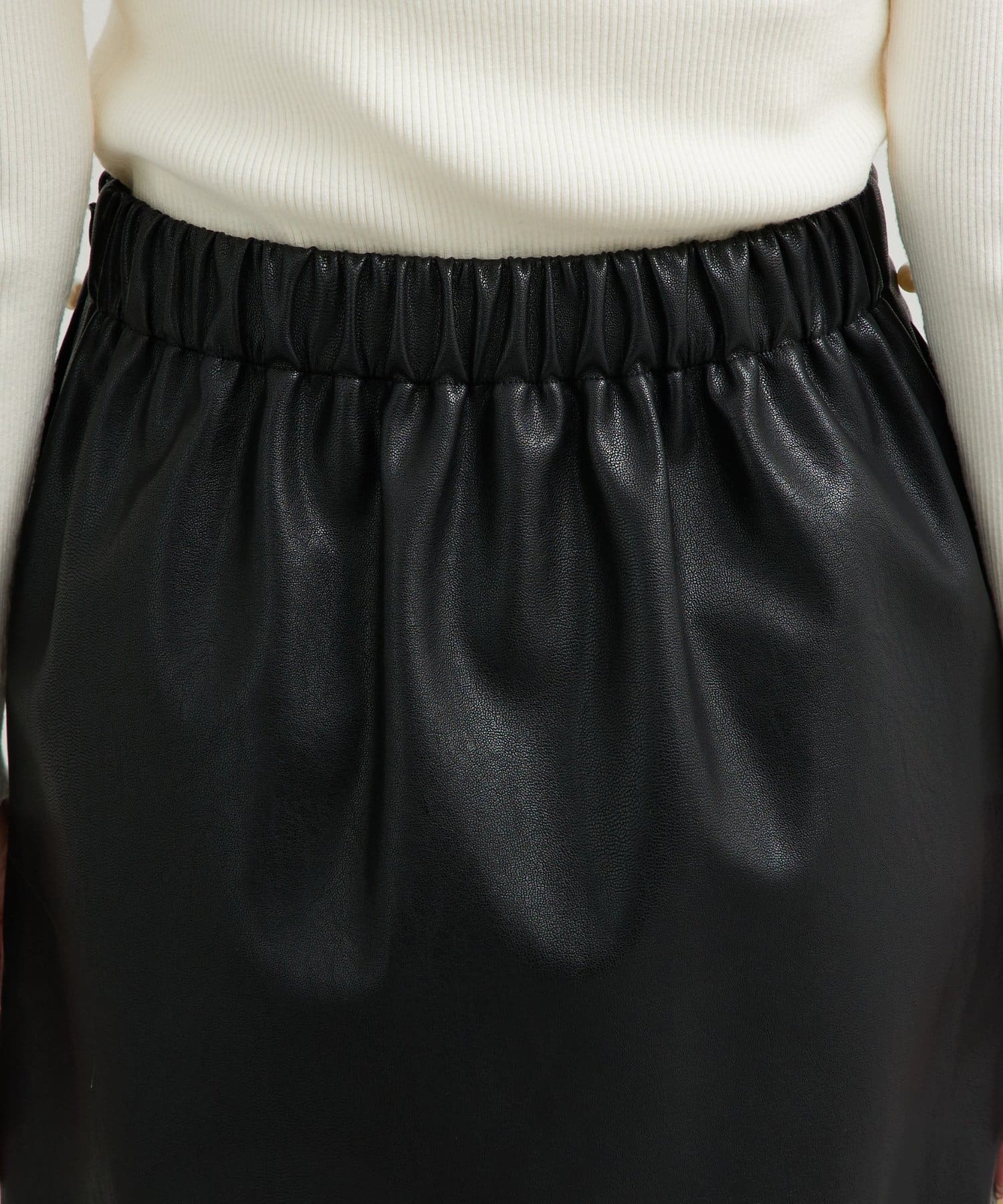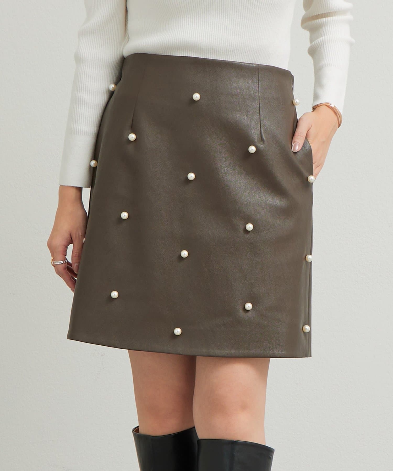 上品な光沢を放つフェイクレザーに繊細なパールを散りばめた、大人可愛いレザースカート。