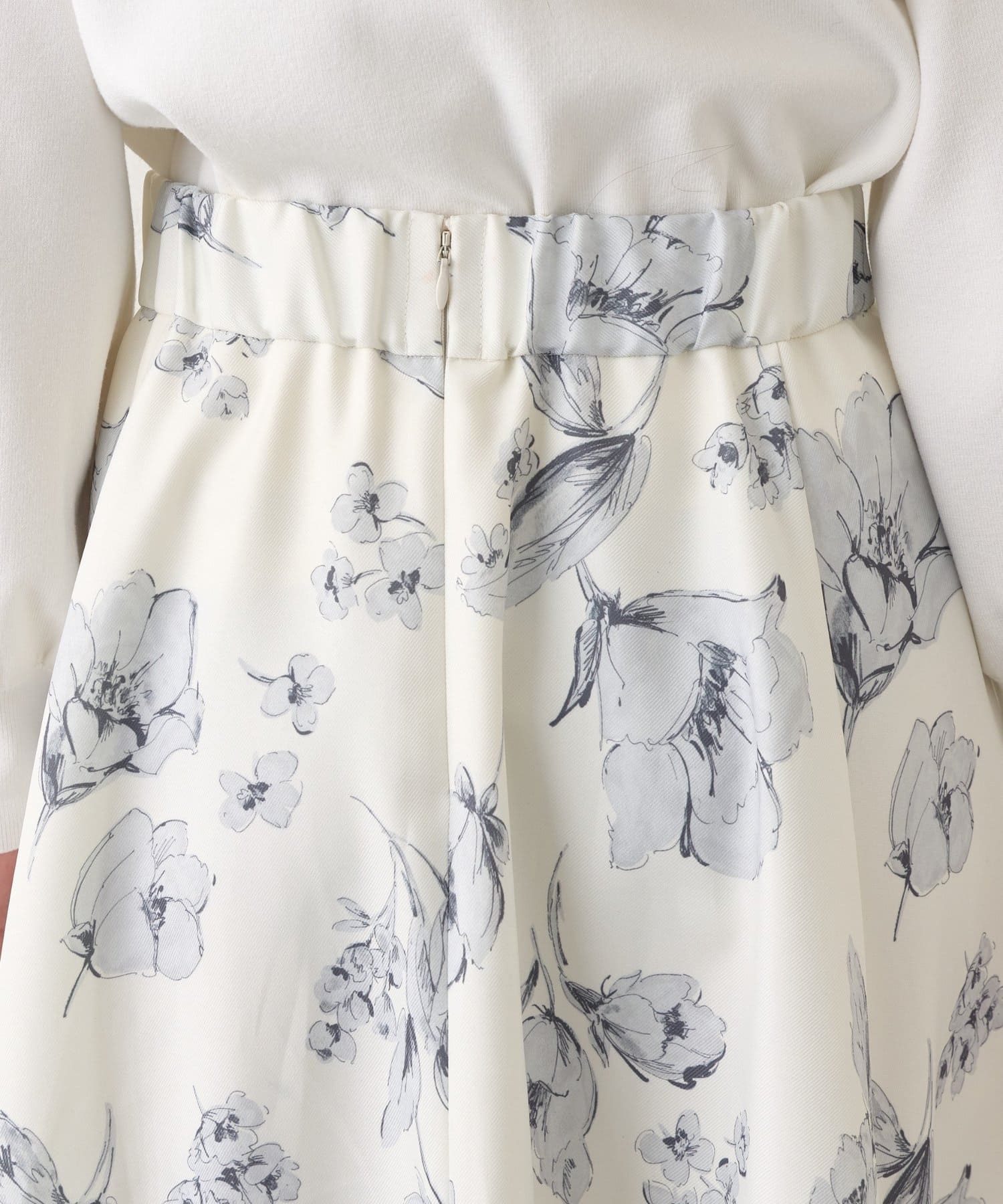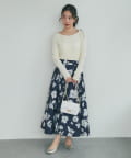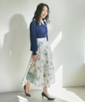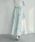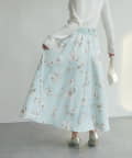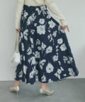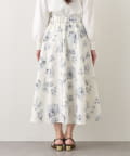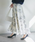 水彩画のような繊細なタッチで描かれた花柄が、フェミニンな雰囲気を醸し出すフレアスカート。