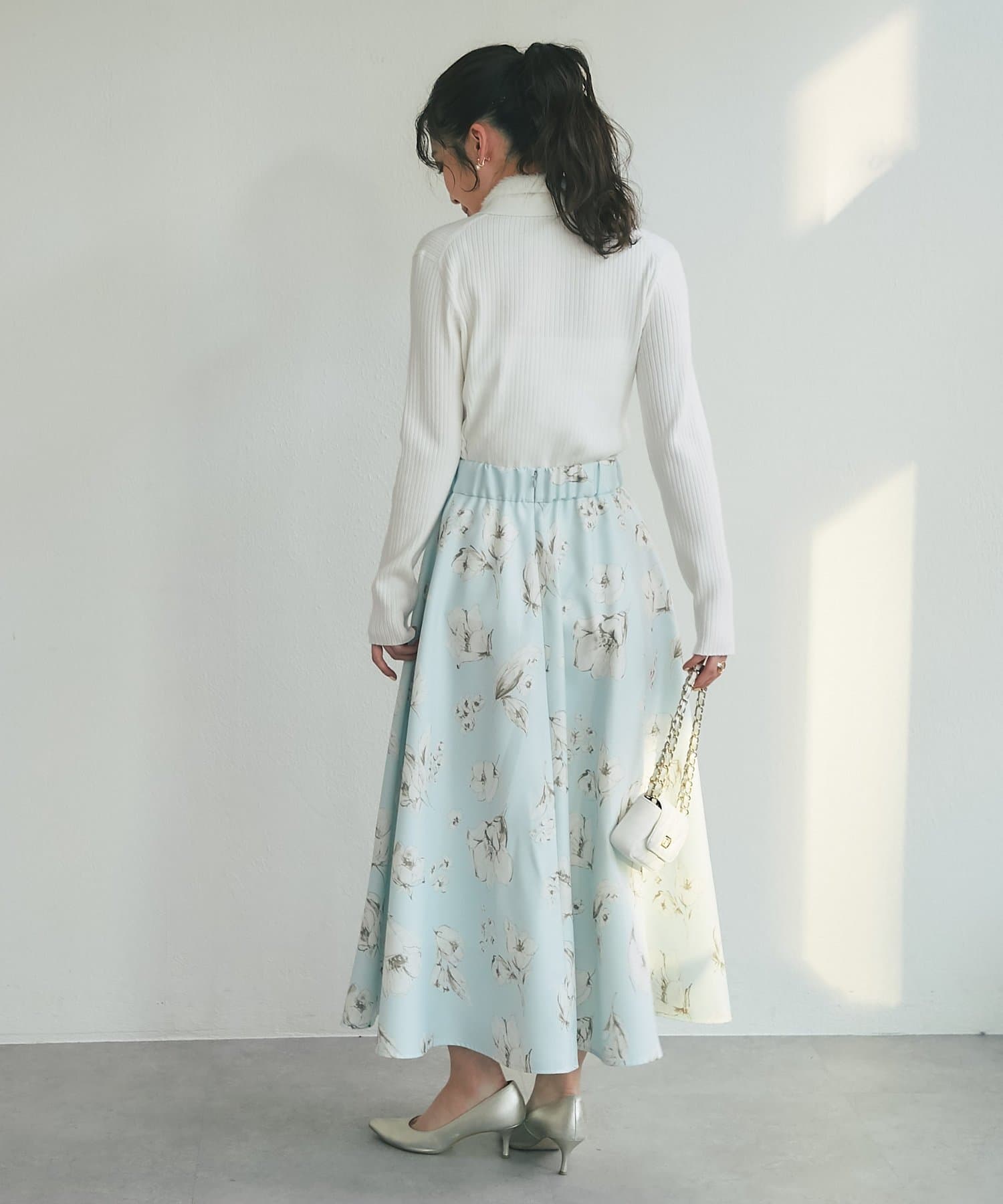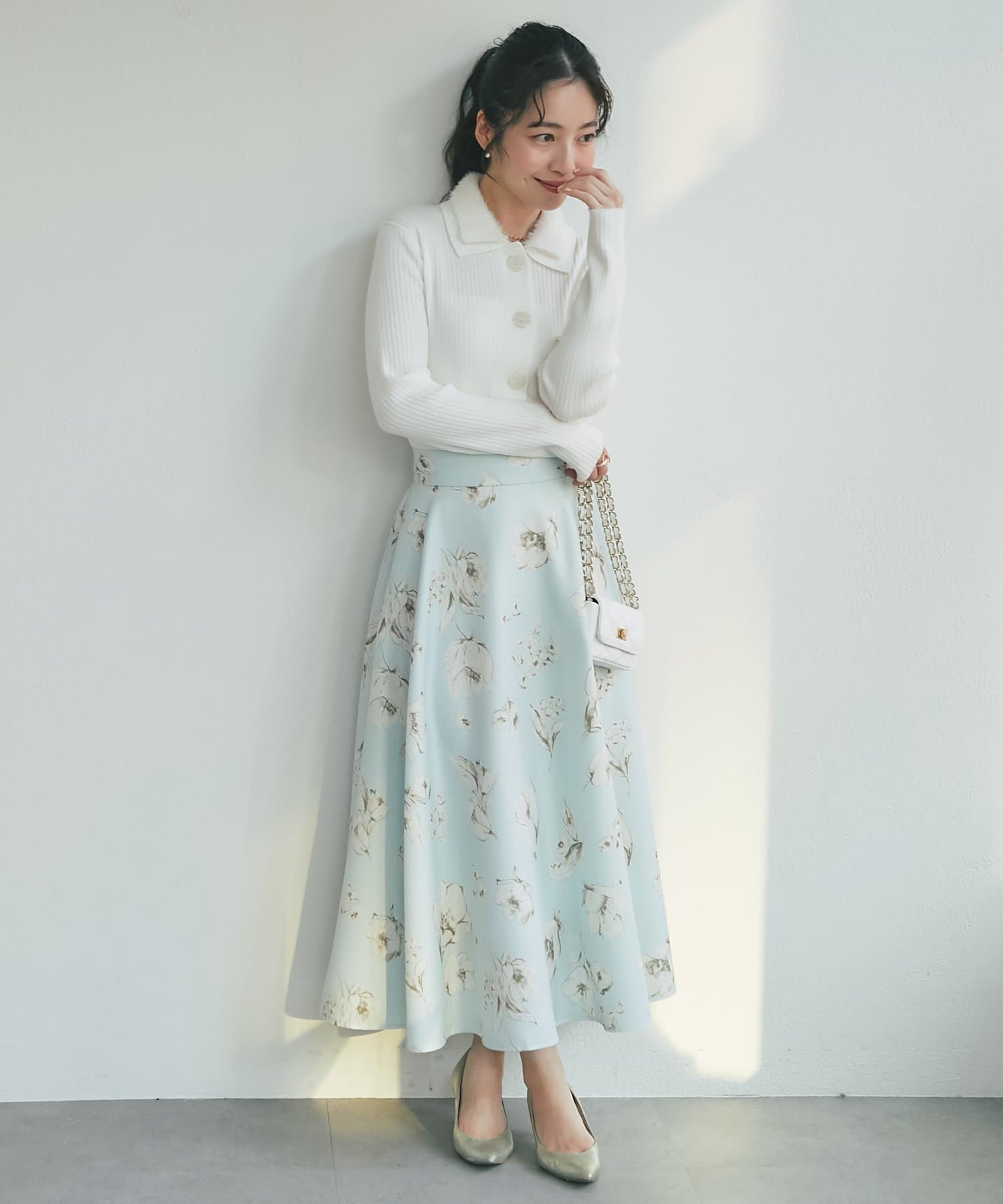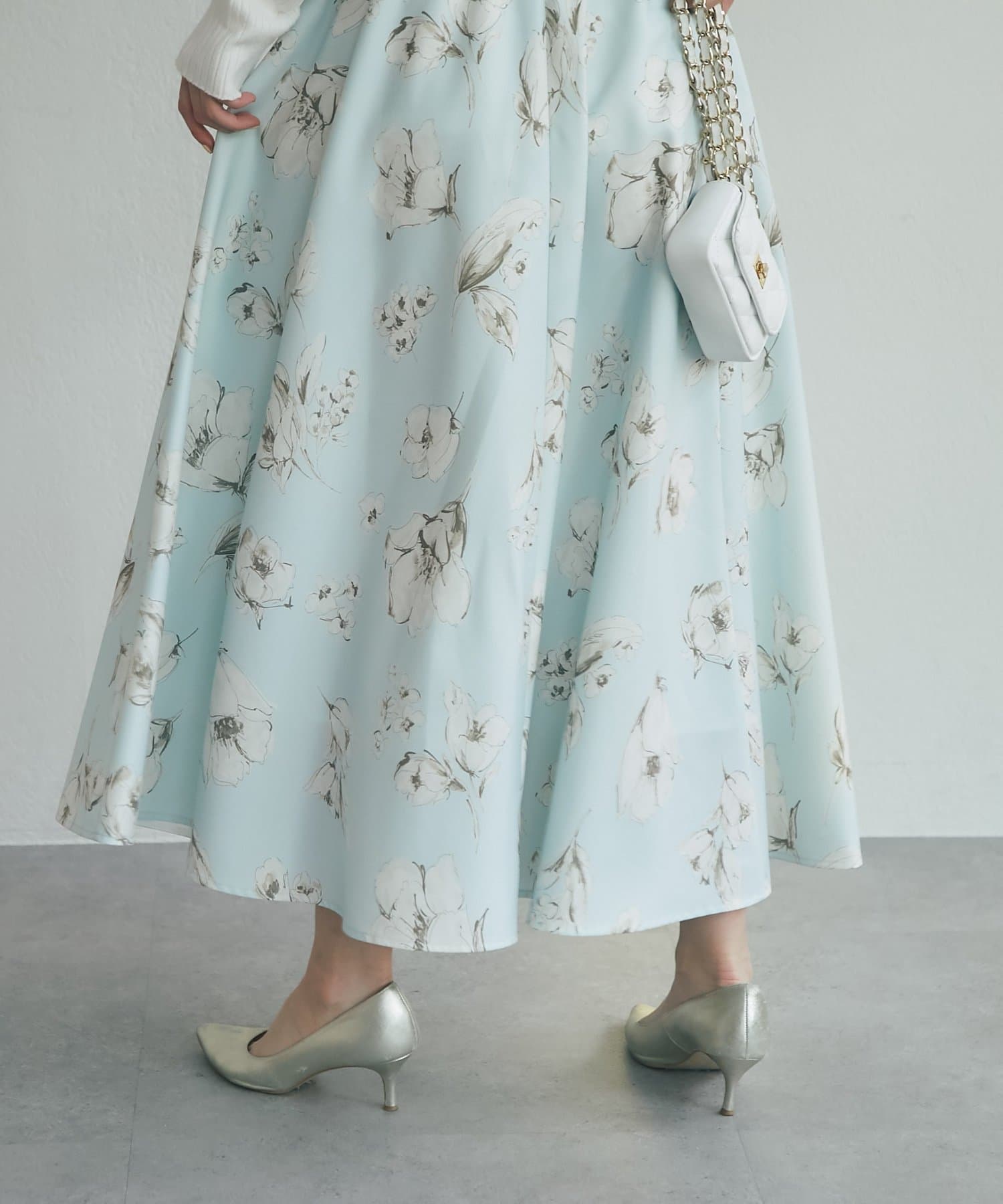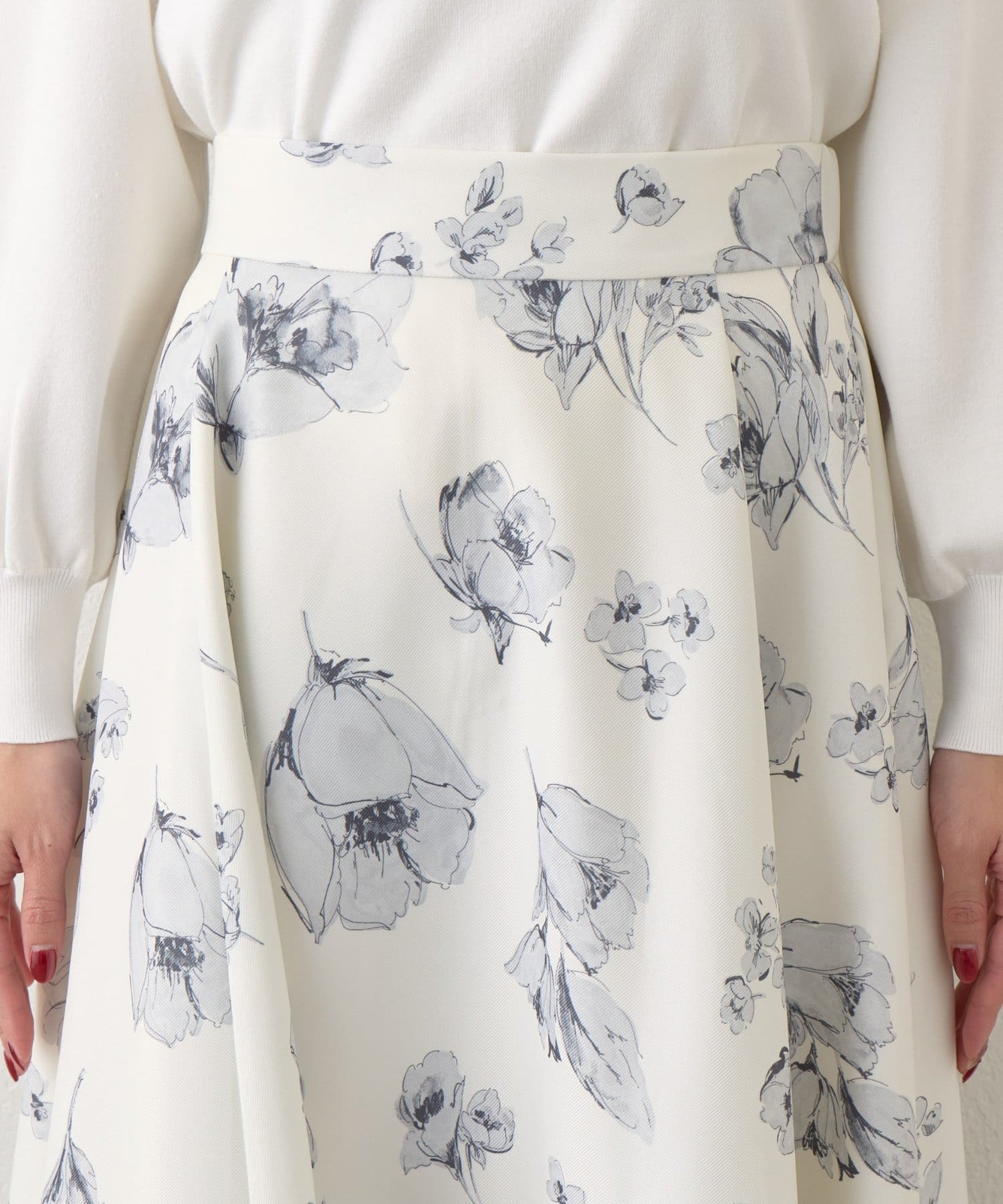 儚げな美しさを纏う、水彩タッチの花柄スカート