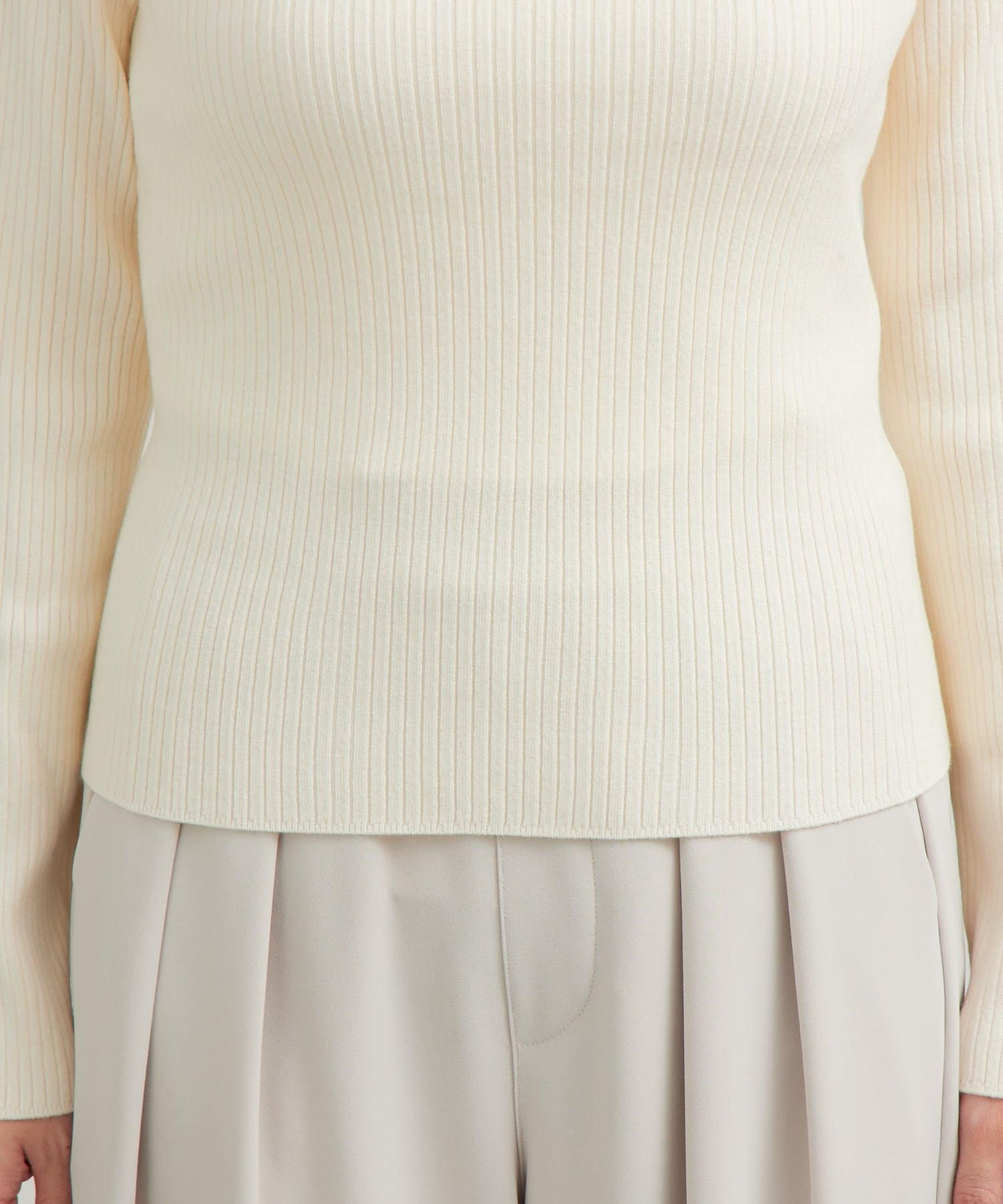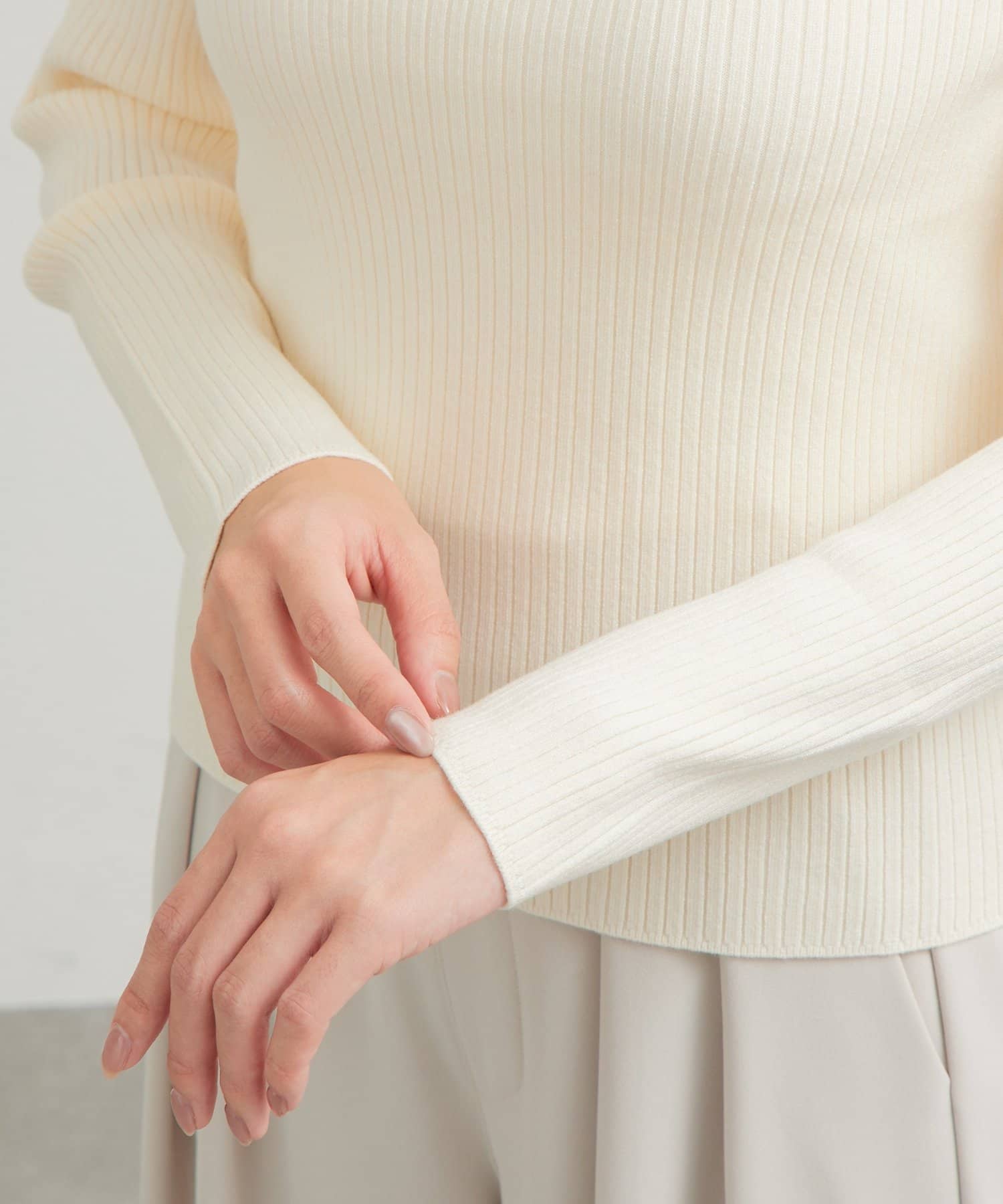 リブ編みがボディラインに優しくフィットし、女性らしいシルエットにしてくれます。