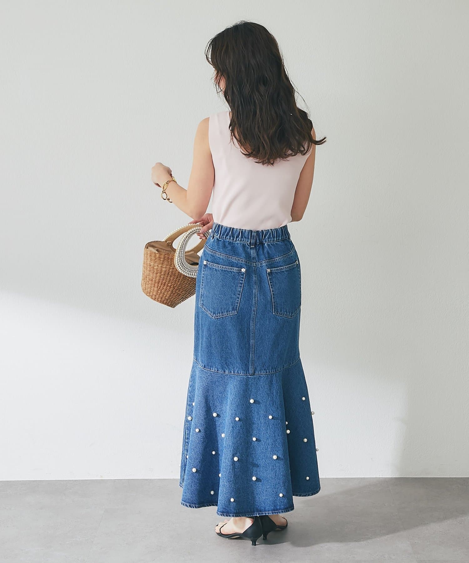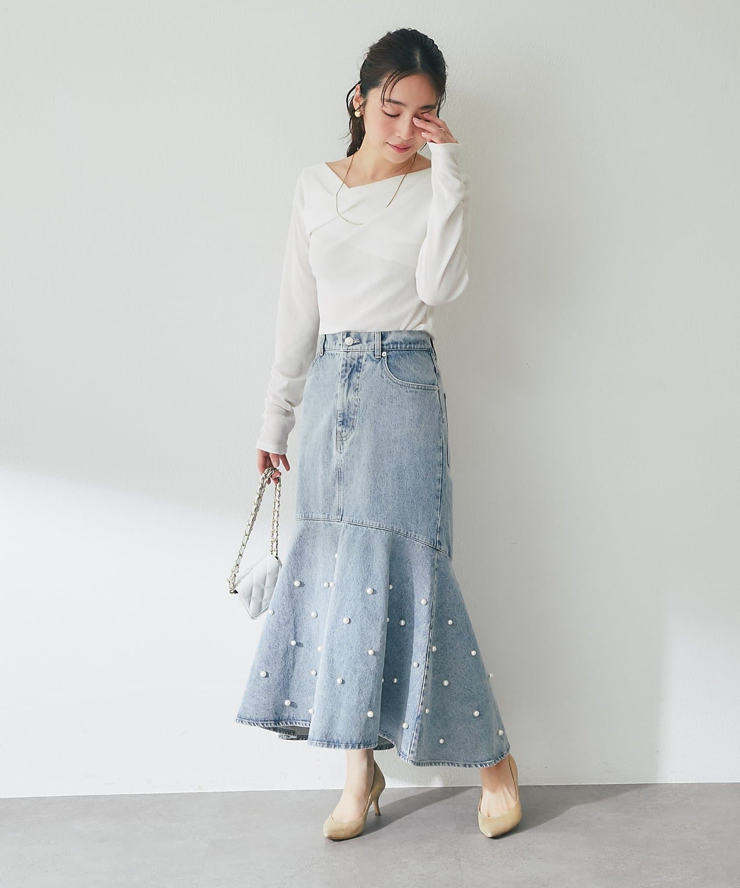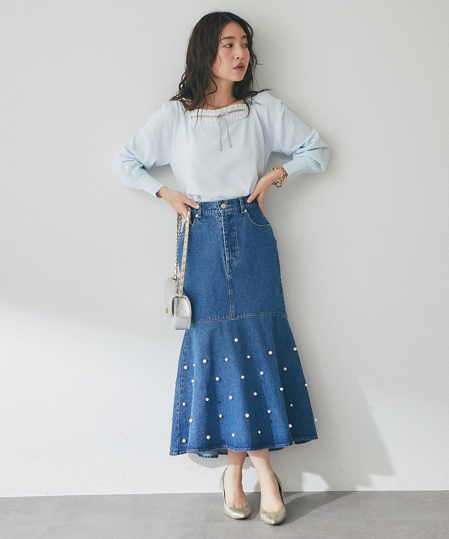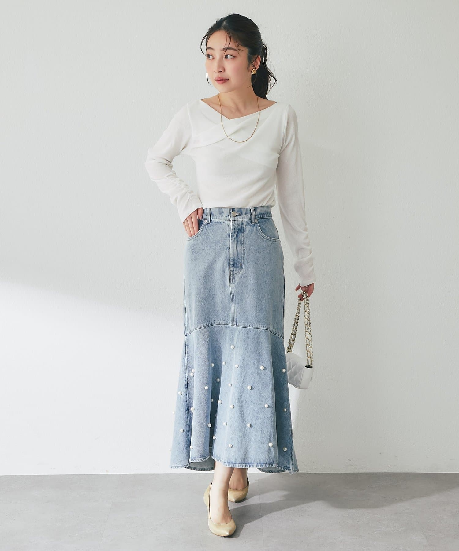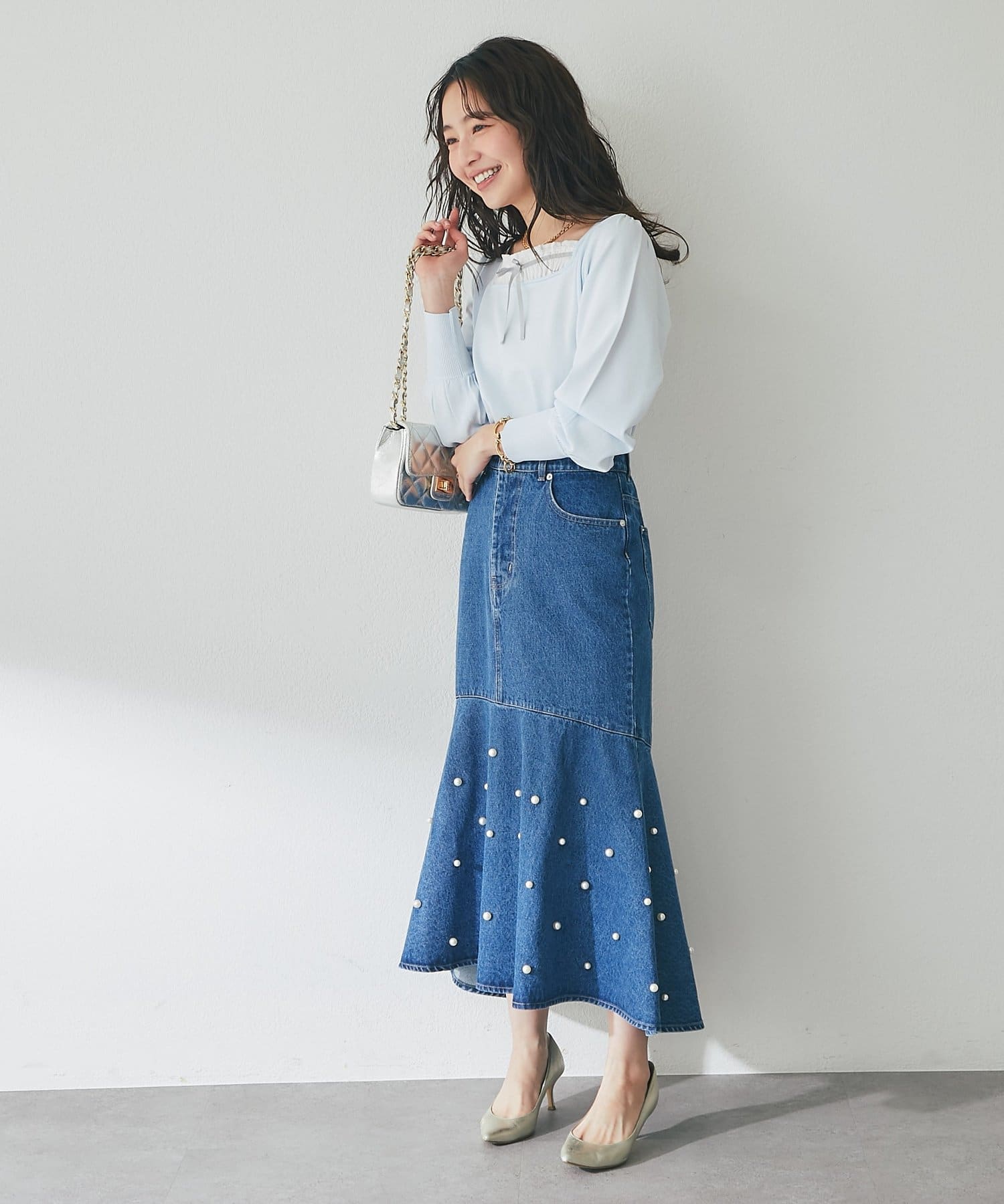 カジュアルすぎずに着こなしができるマーメイドデニムスカート。