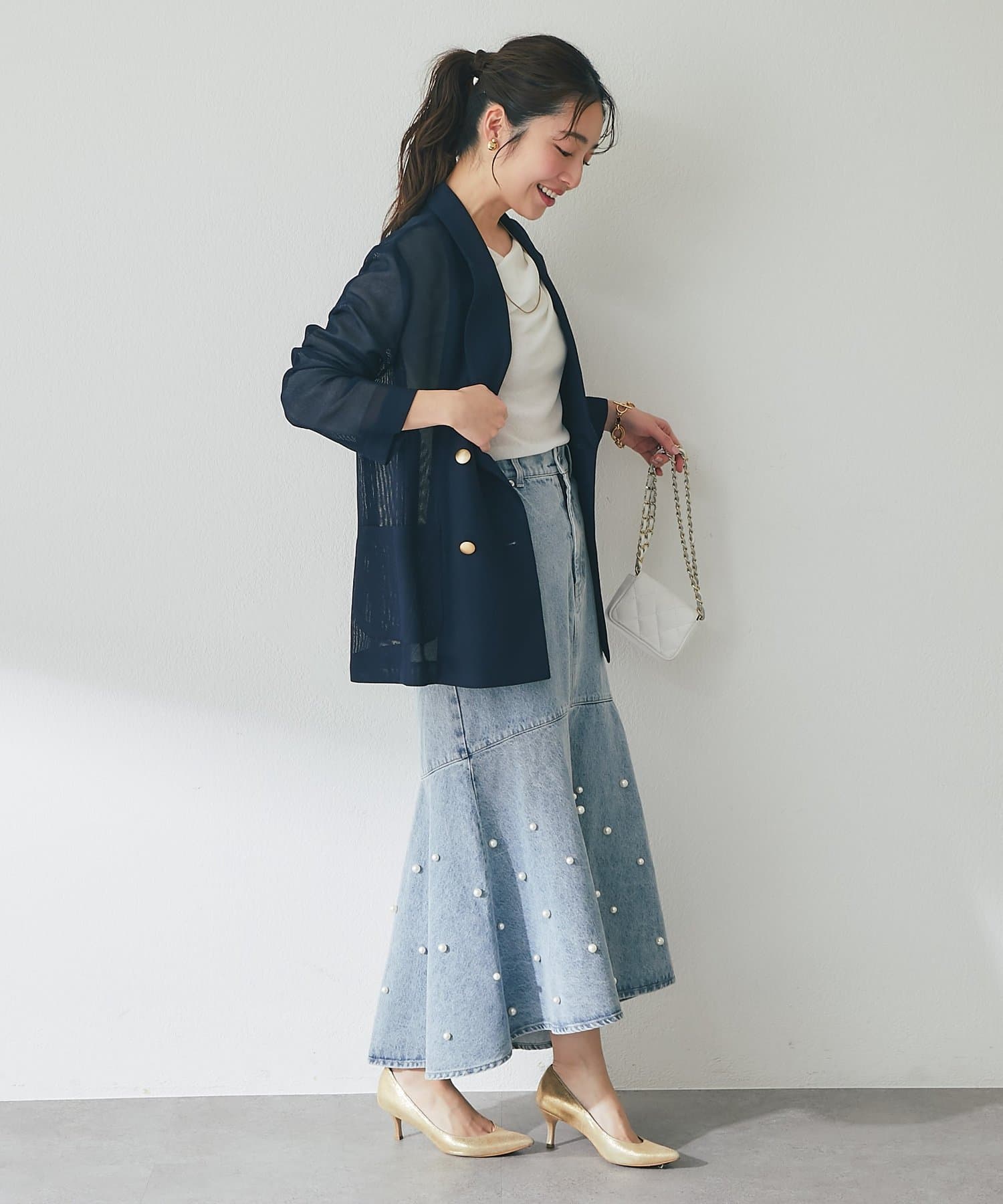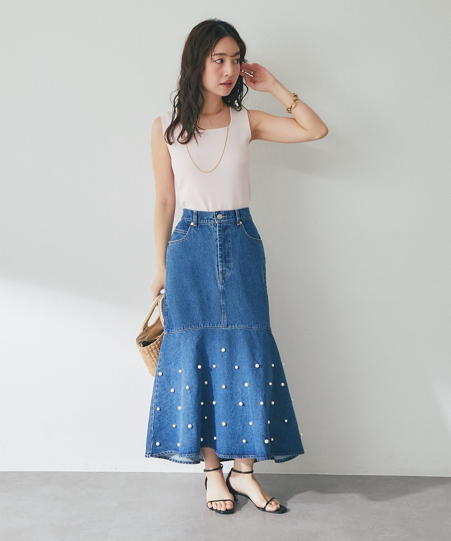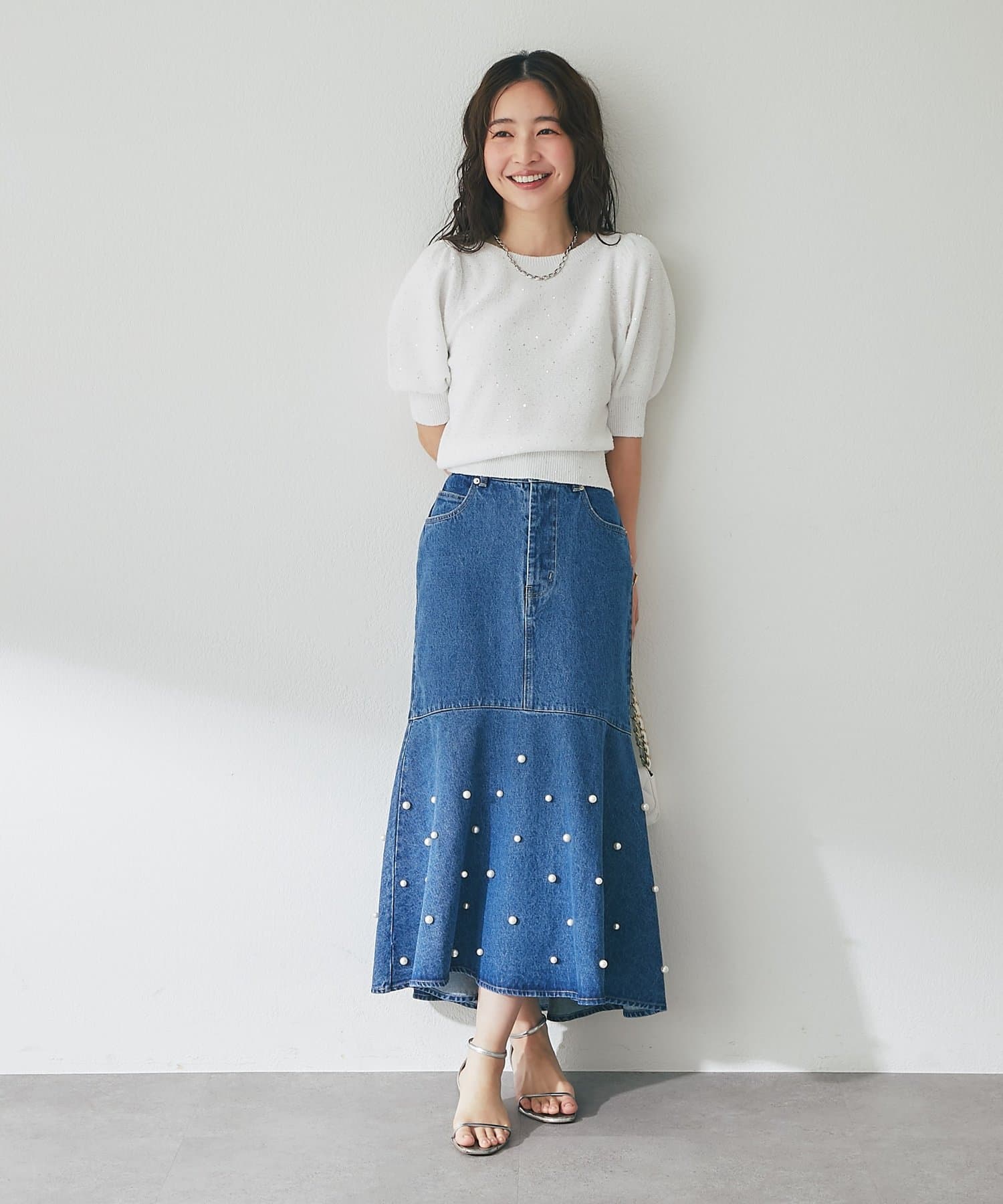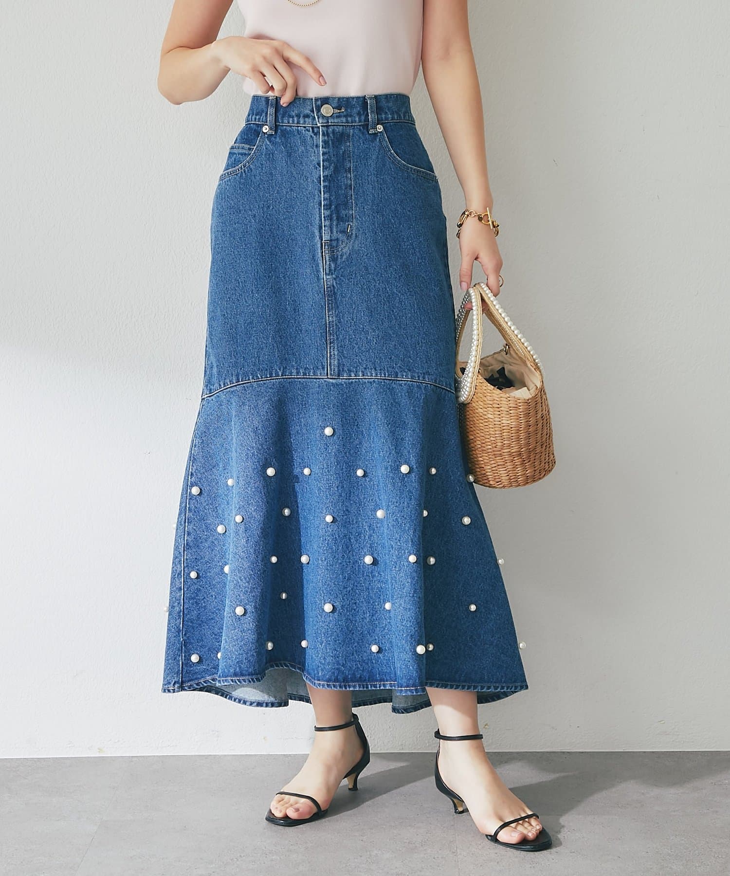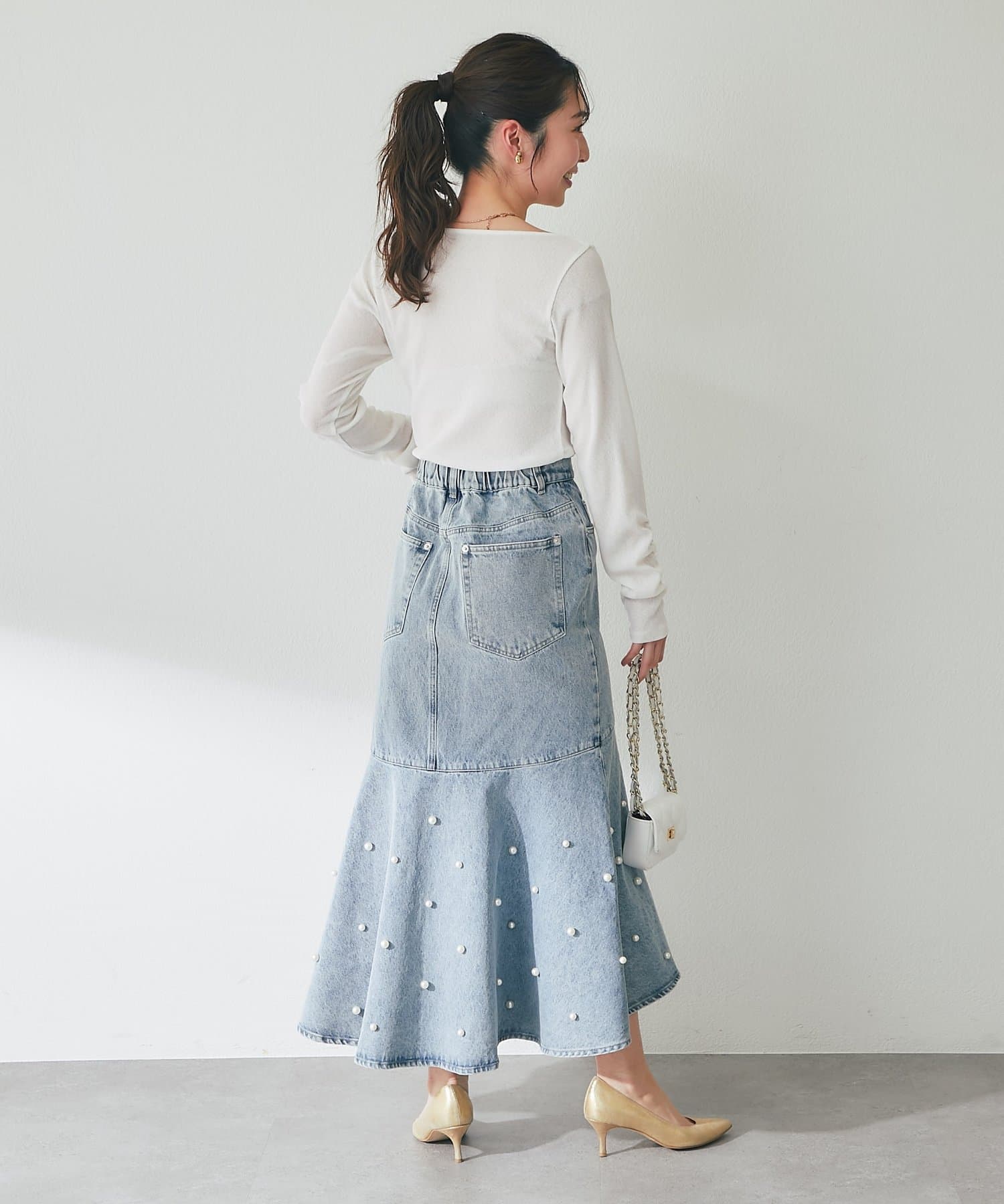 カジュアルすぎずに着こなしができるマーメイドデニムスカート。
