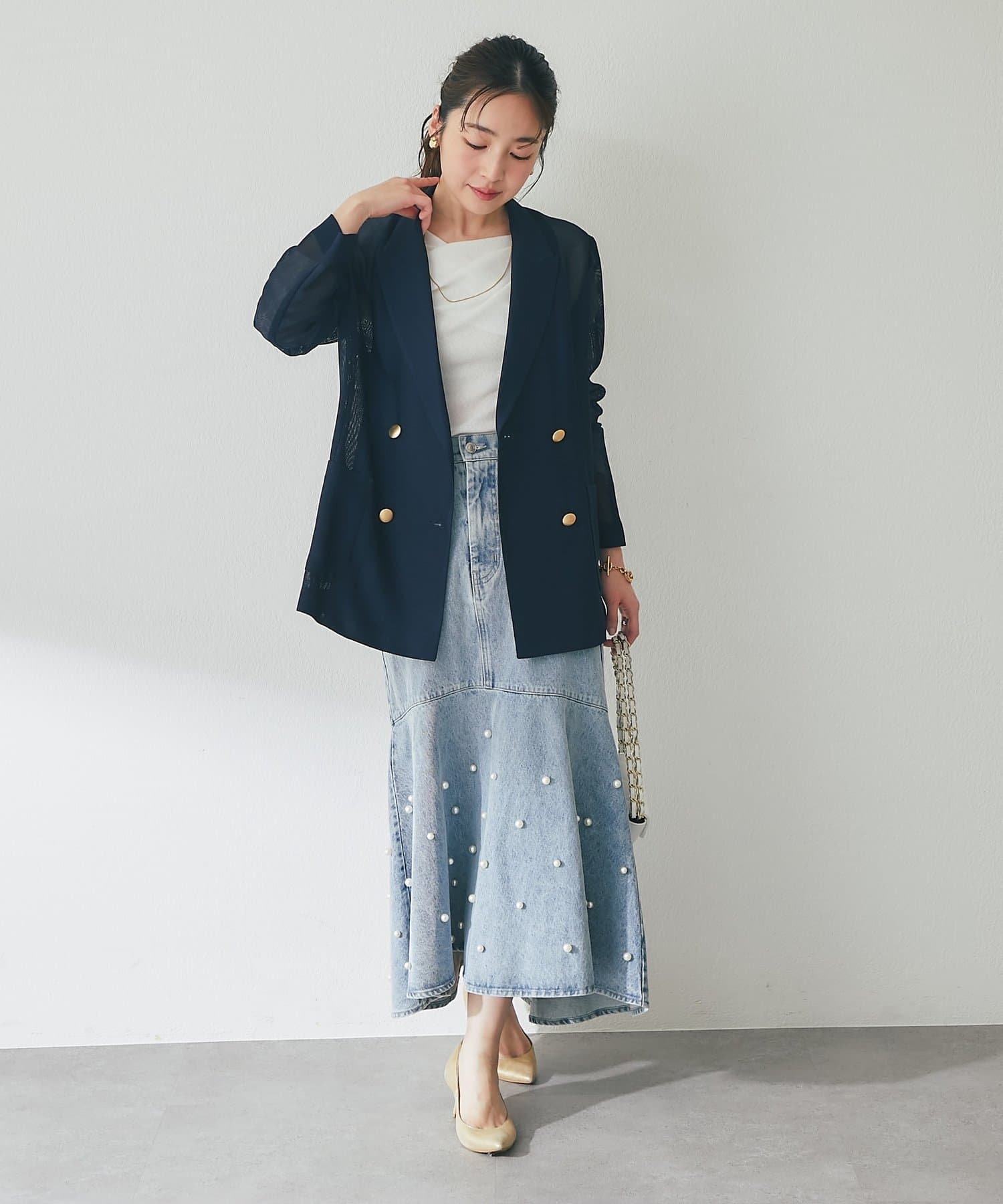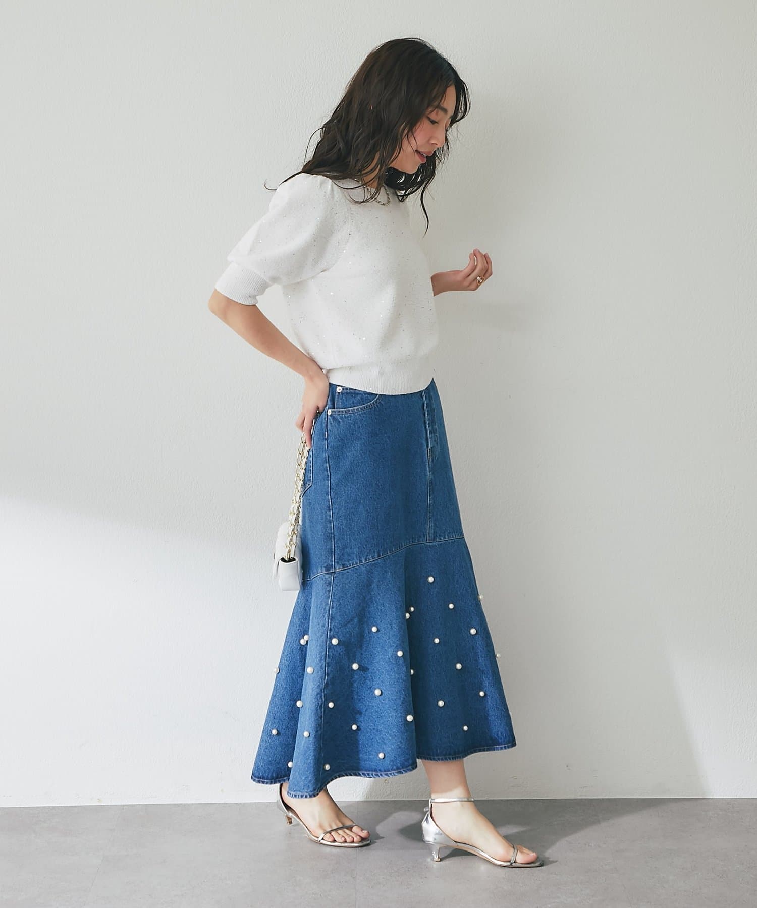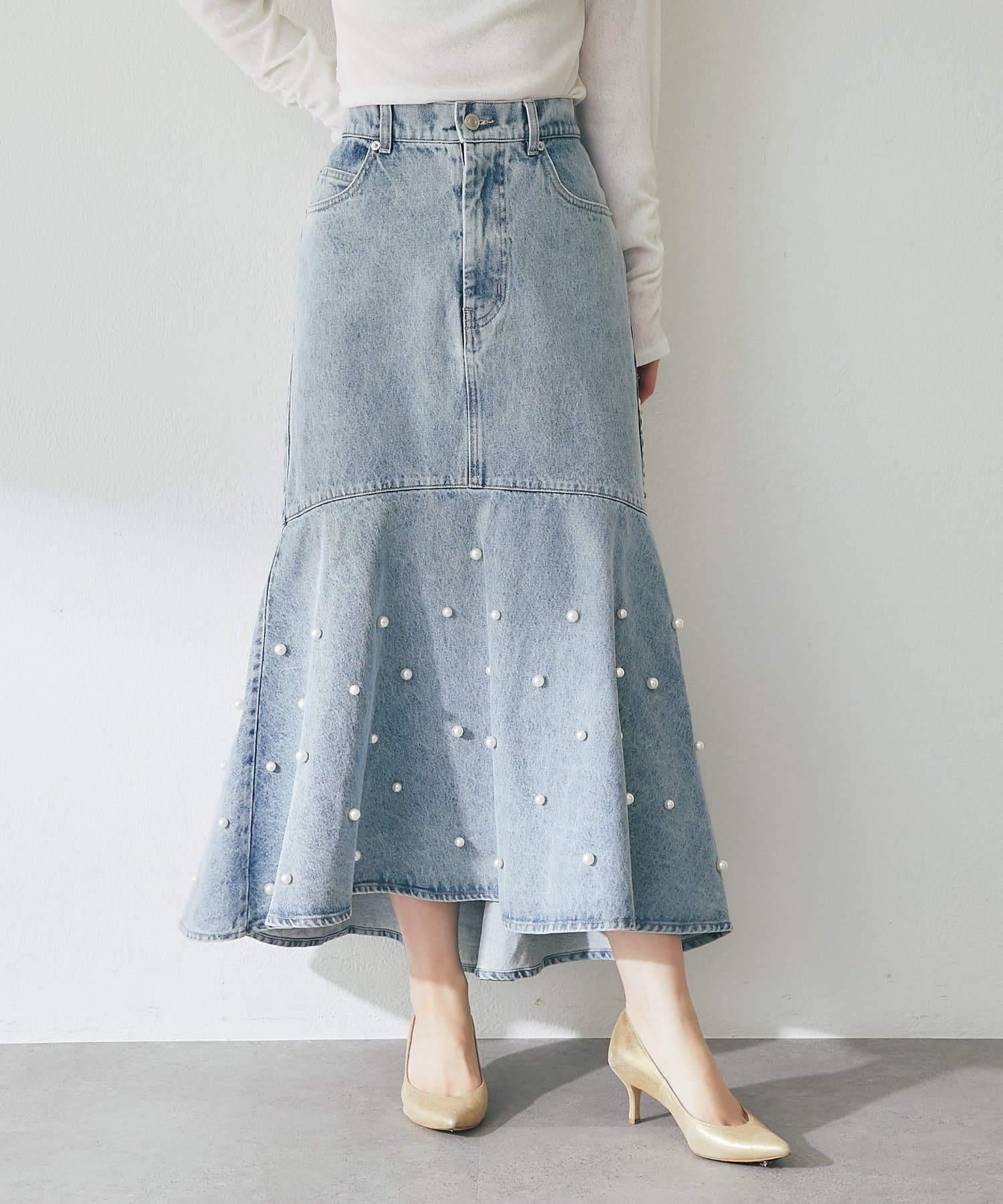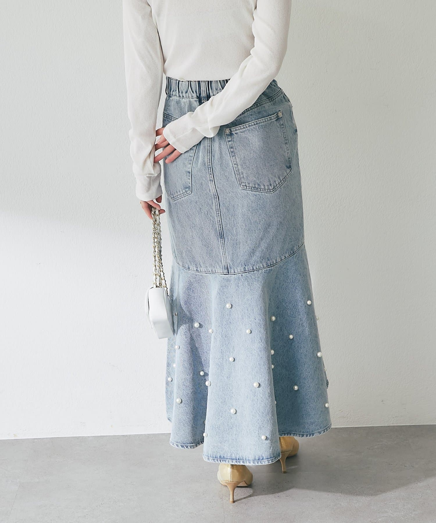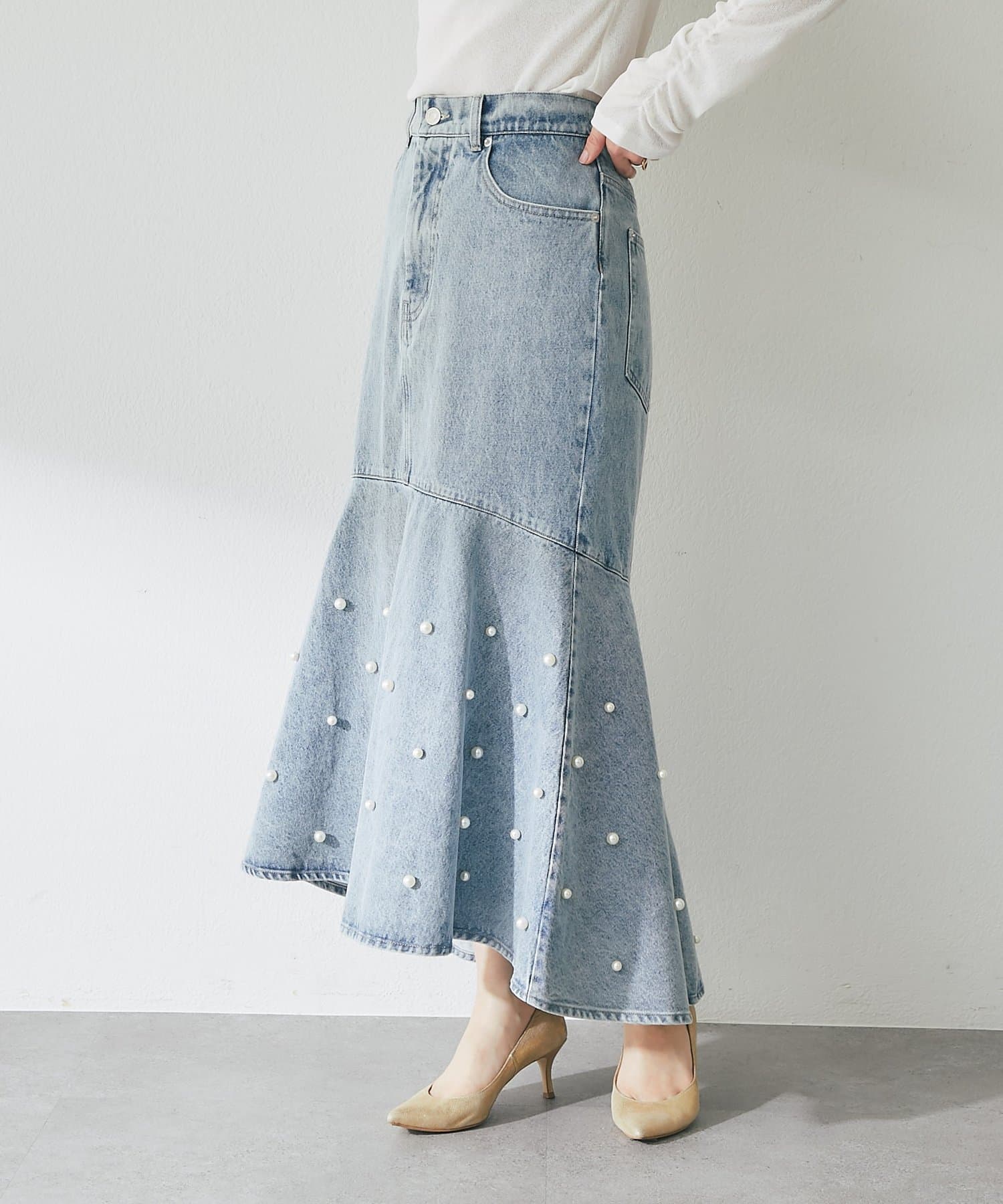 カジュアルすぎずに着こなしができるマーメイドデニムスカート。