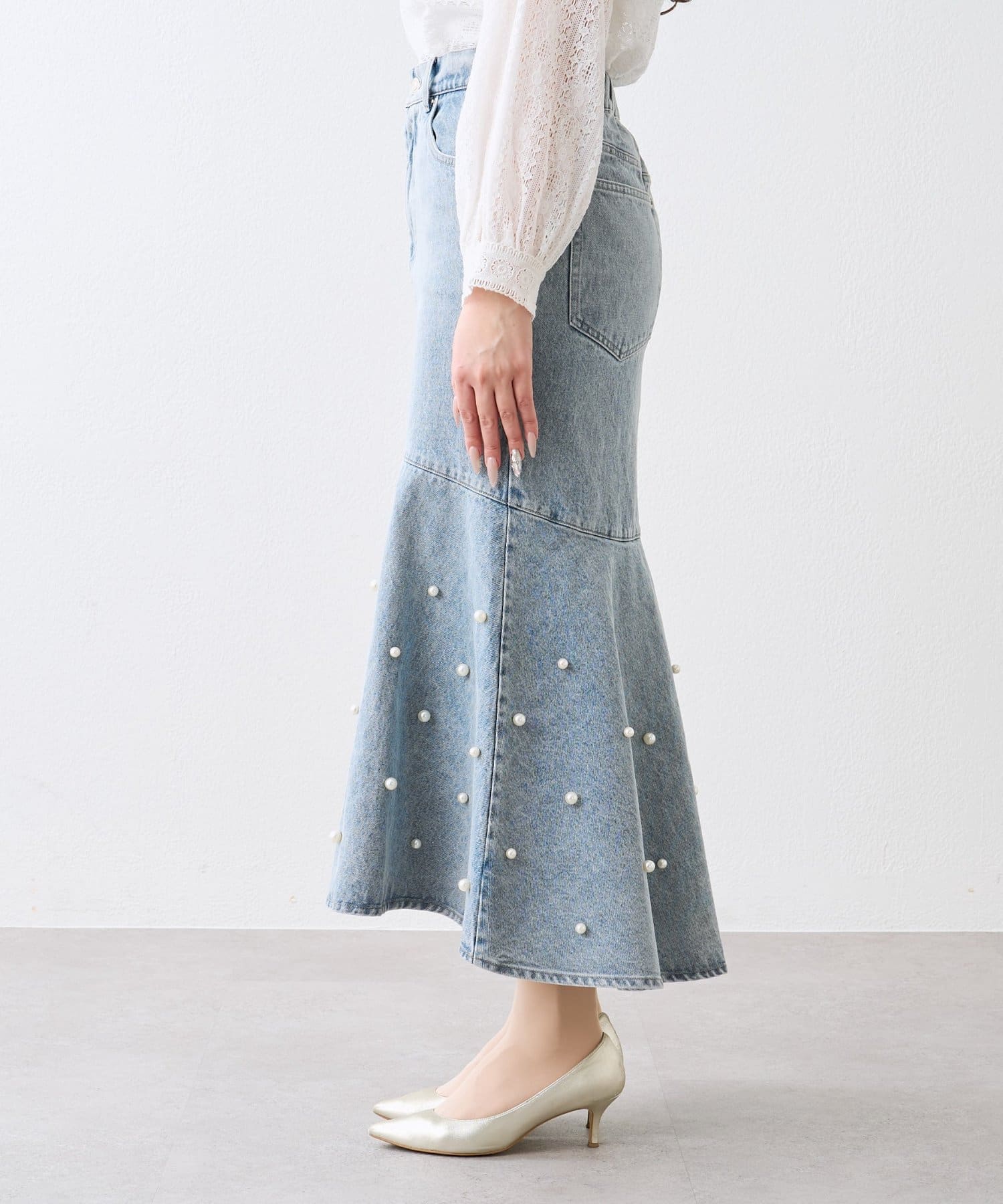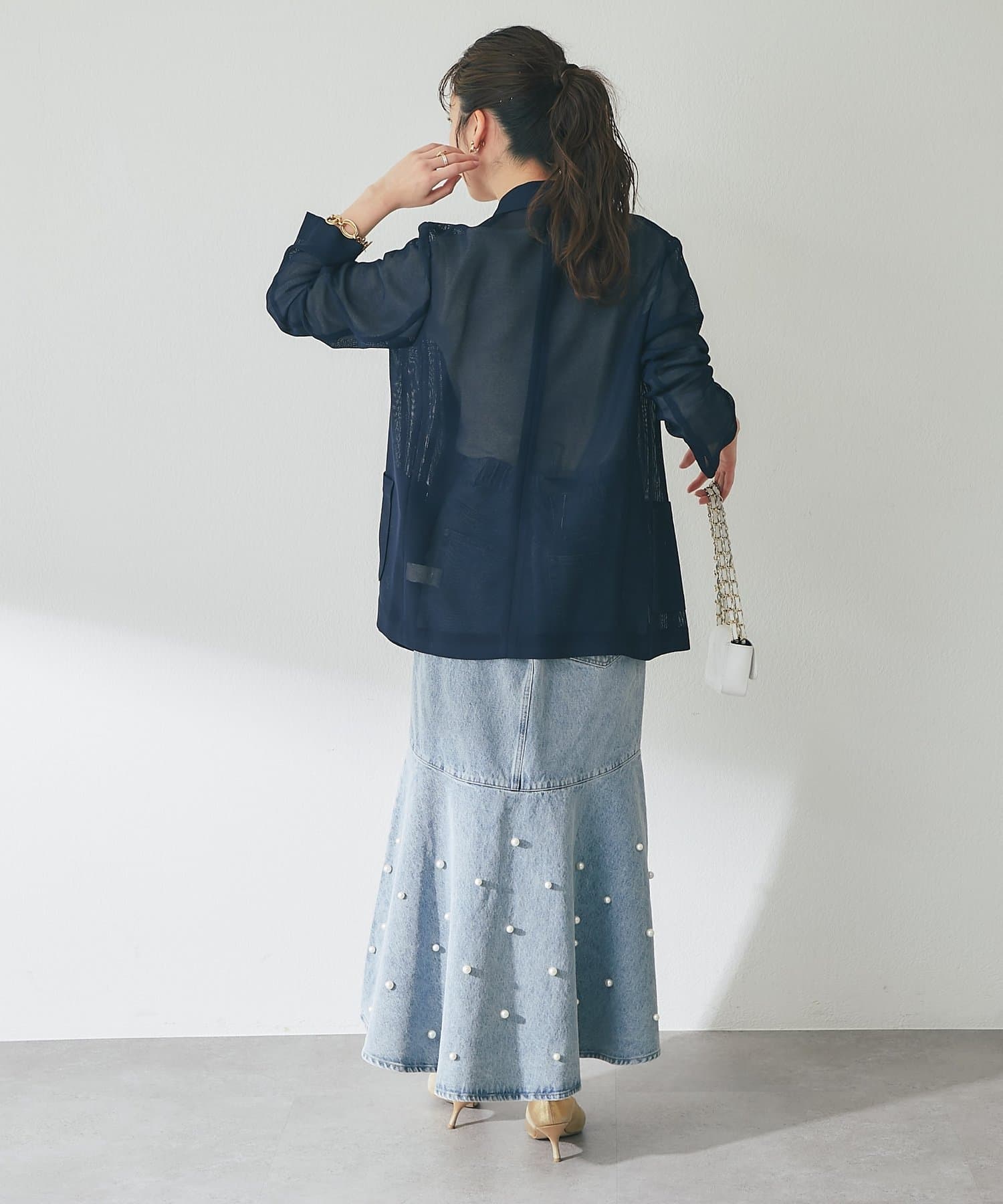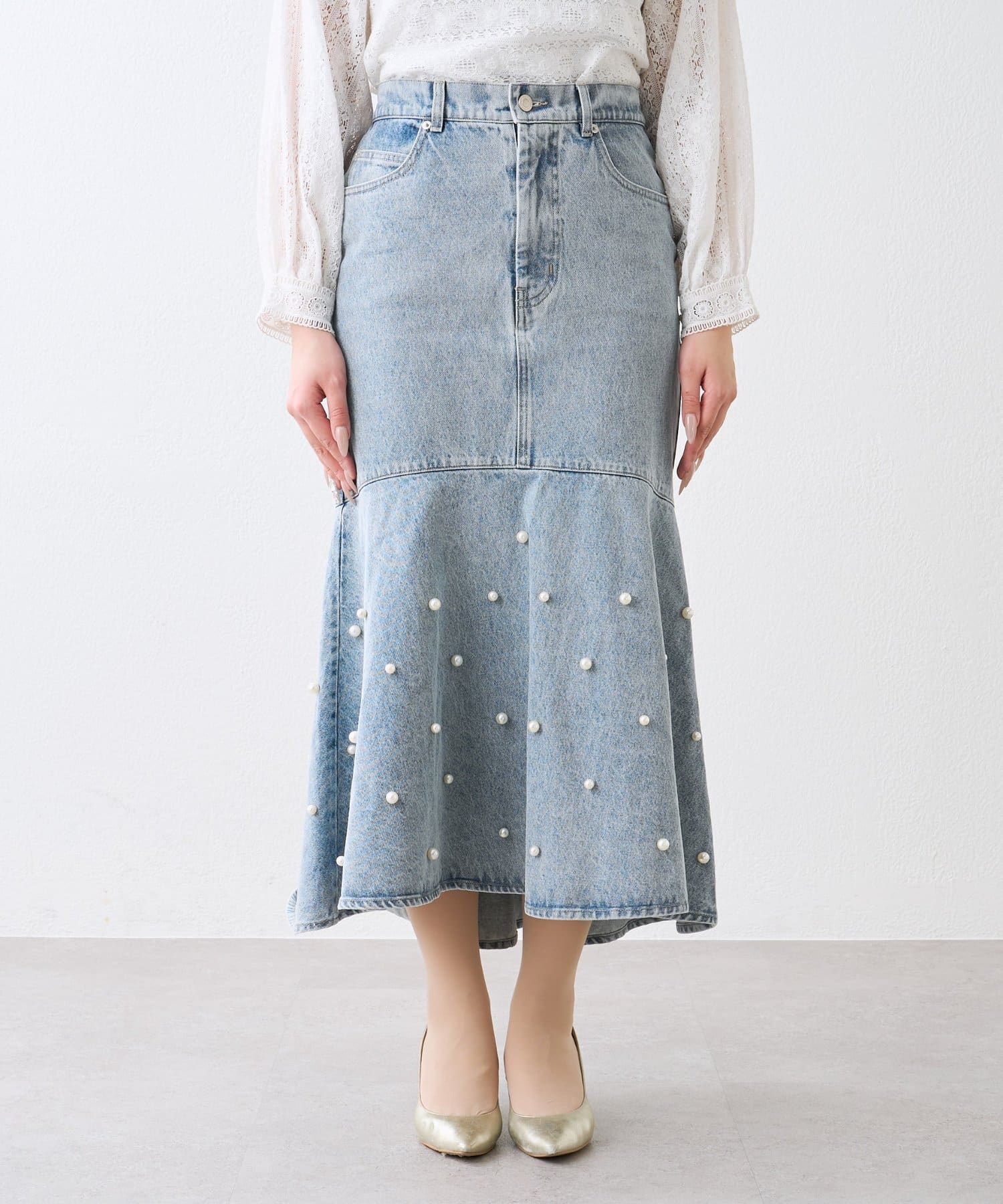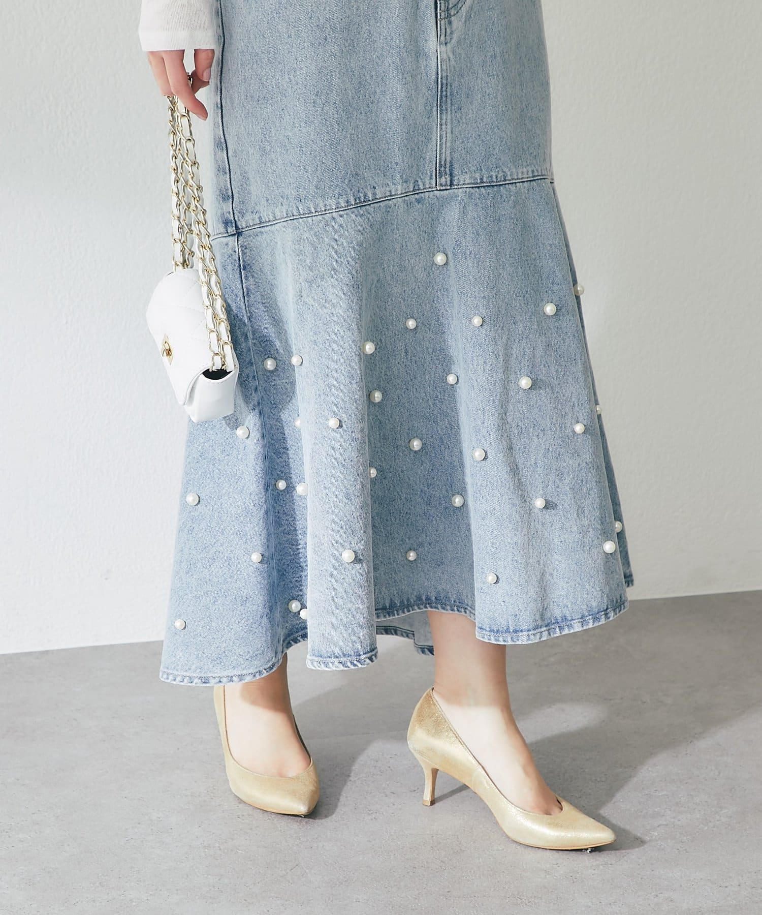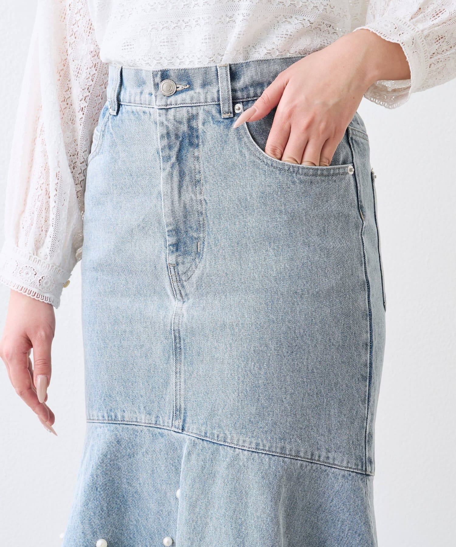 カジュアルすぎずに着こなしができるマーメイドデニムスカート。