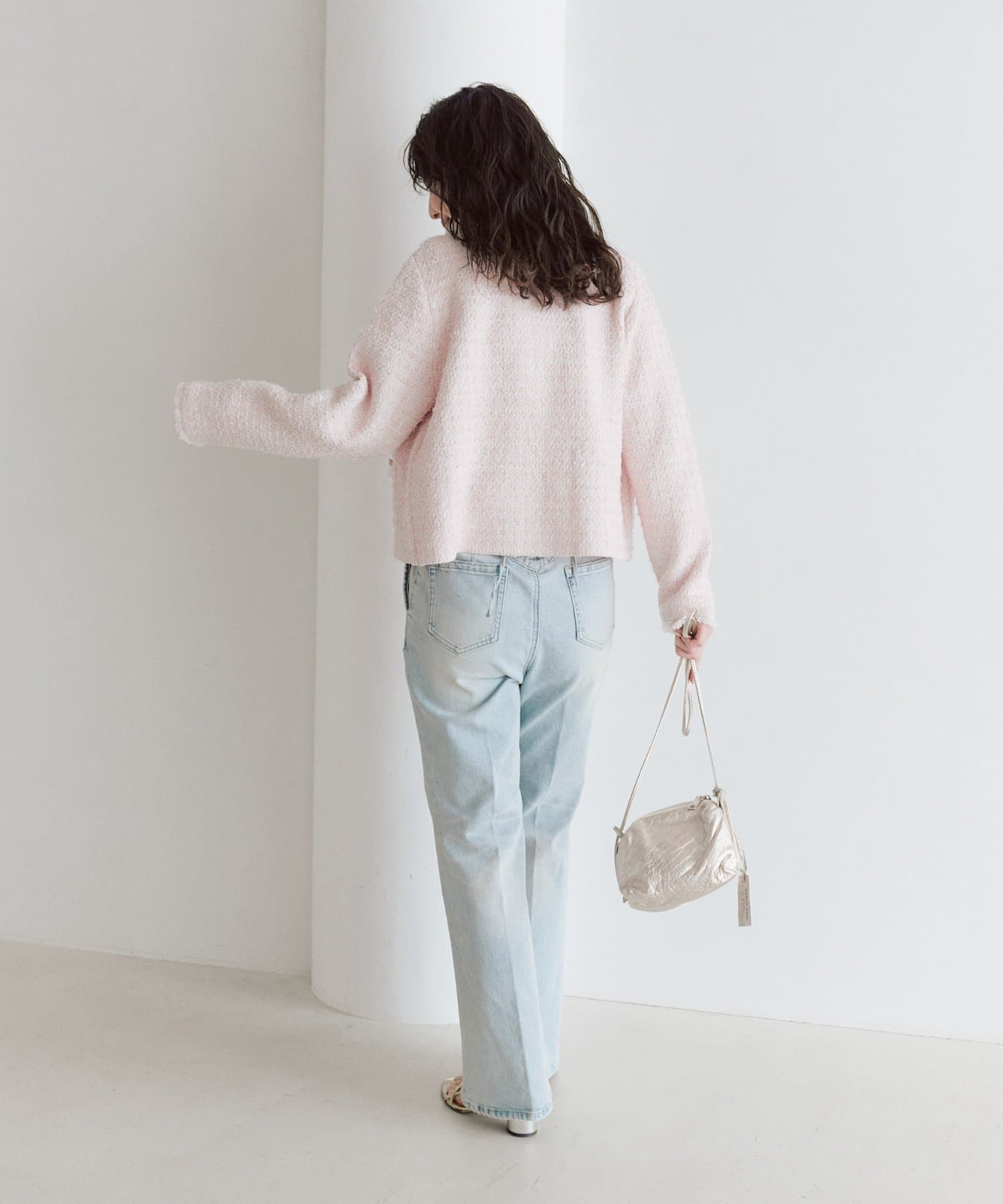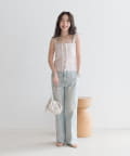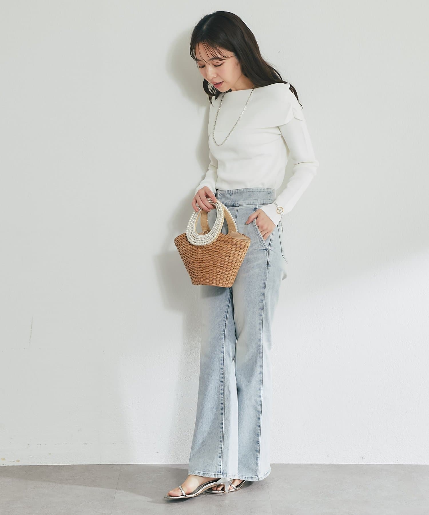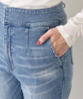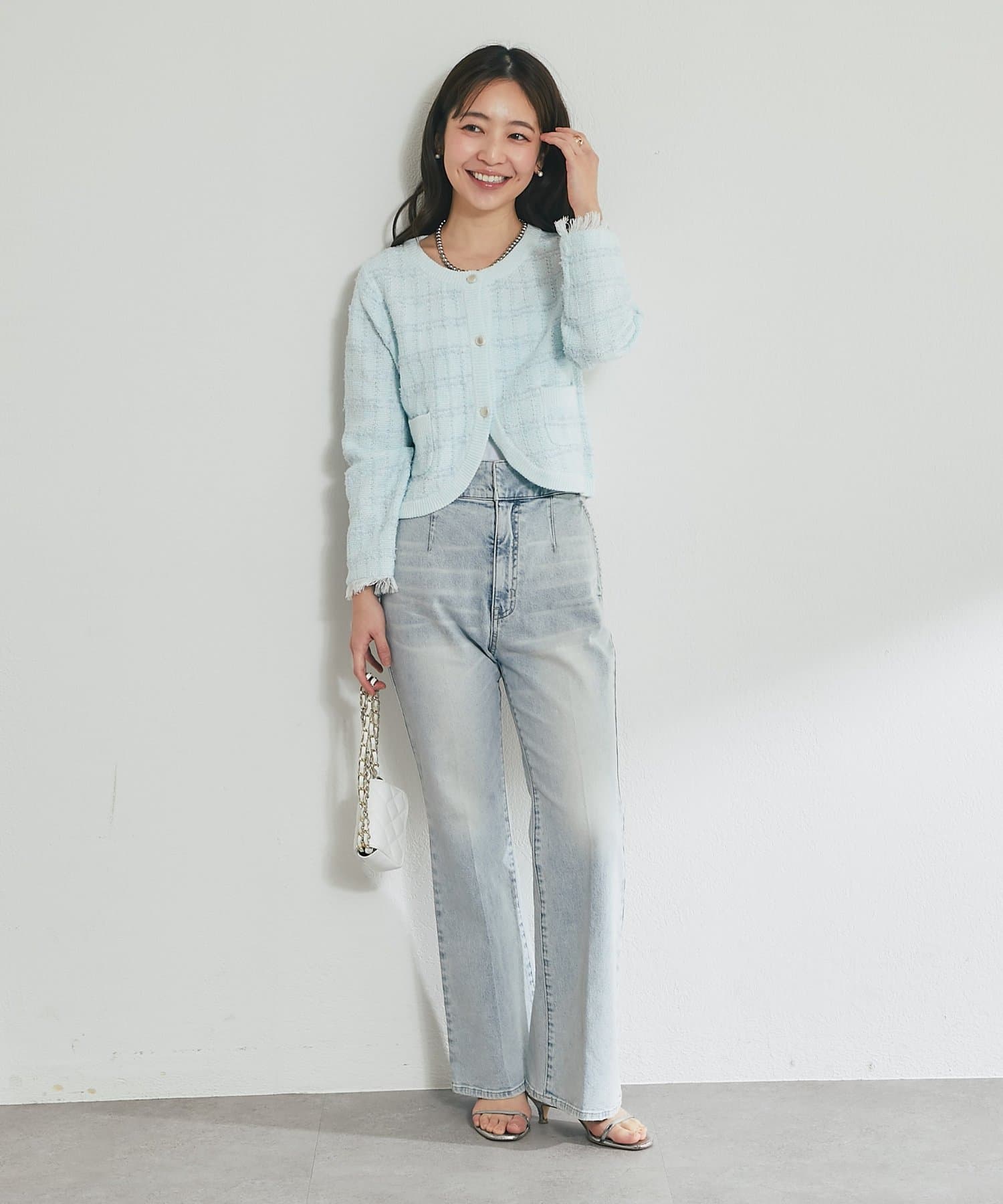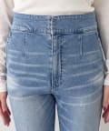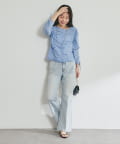 コンパクトなトップスを合わせれば、女性らしいきれいめデニムスタイルに。