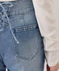 ハイウエストにバックレースアップを施し、女性らしいアクセントをプラスしました。