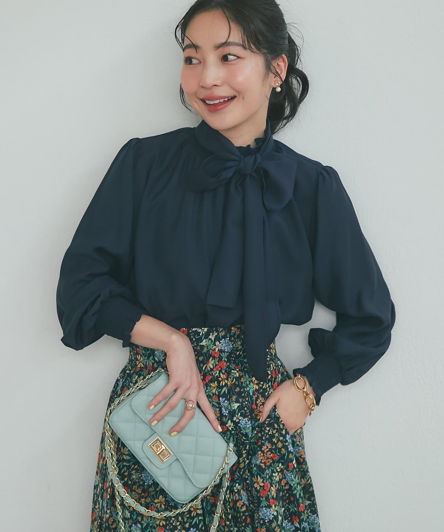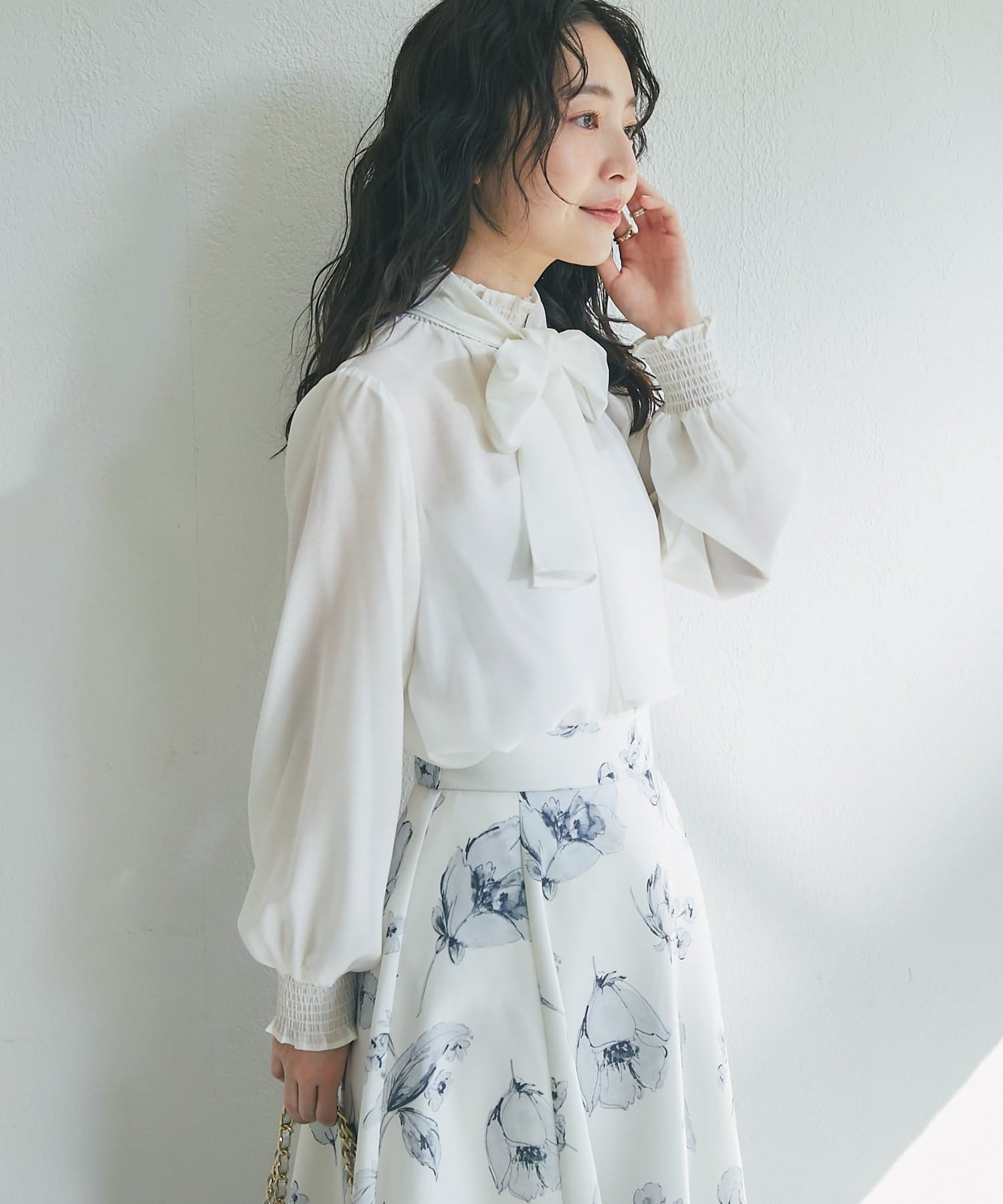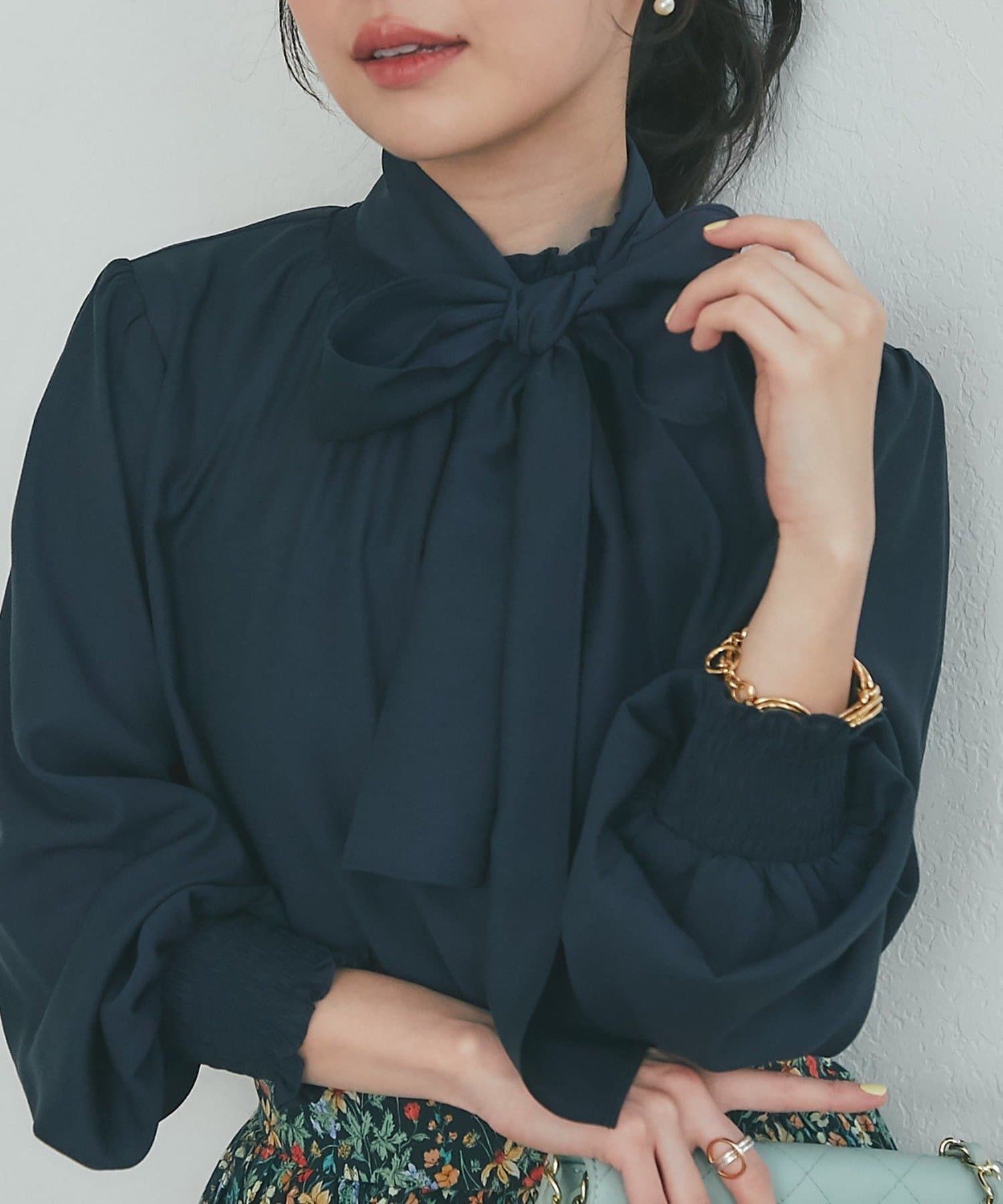 顔まわり華やぐ、大人の上品ボウタイブラウス