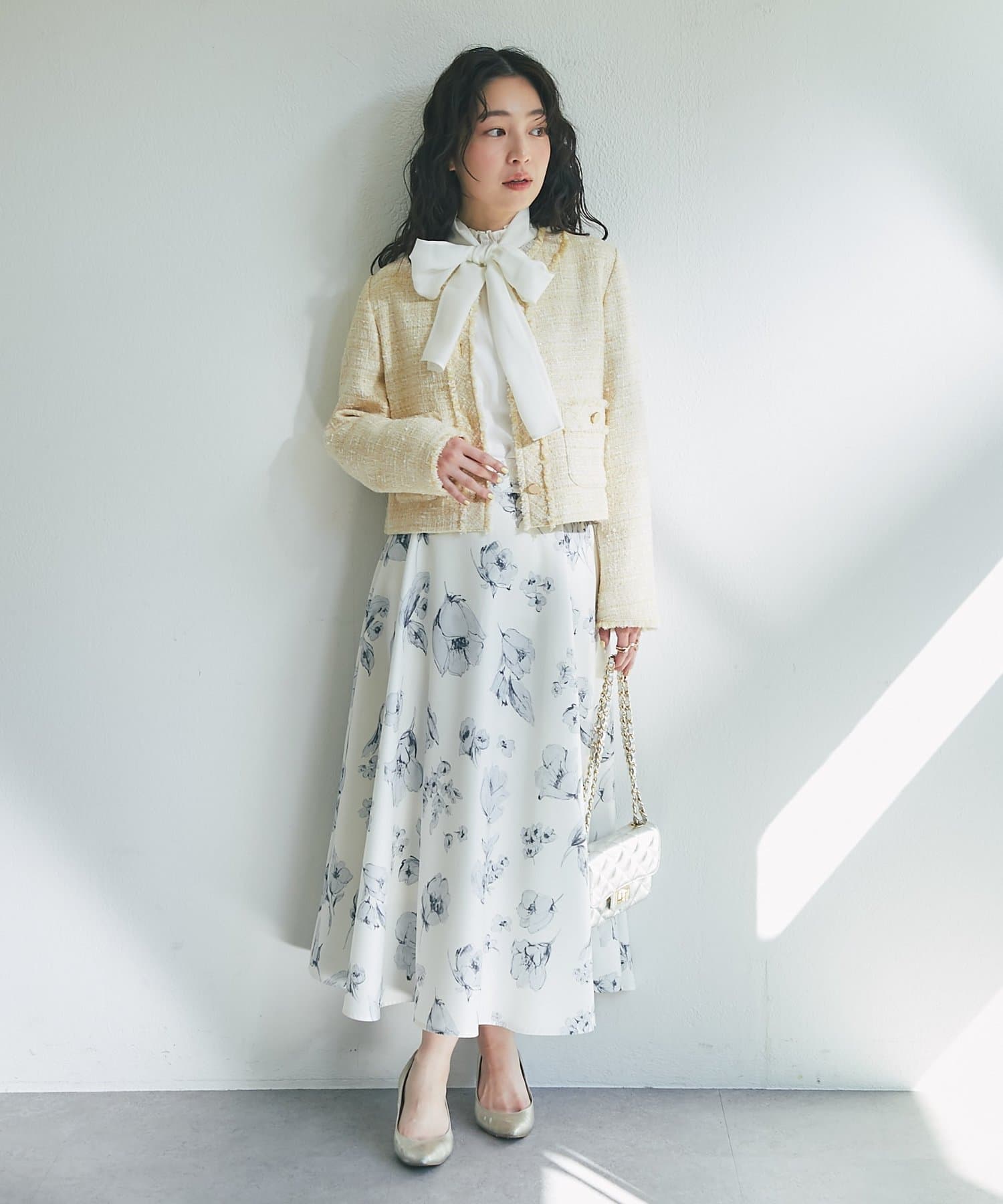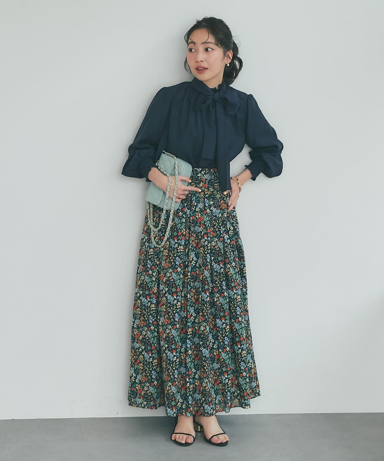 スカートと合わせたフェミニンコーデならデートやお食事にも◎