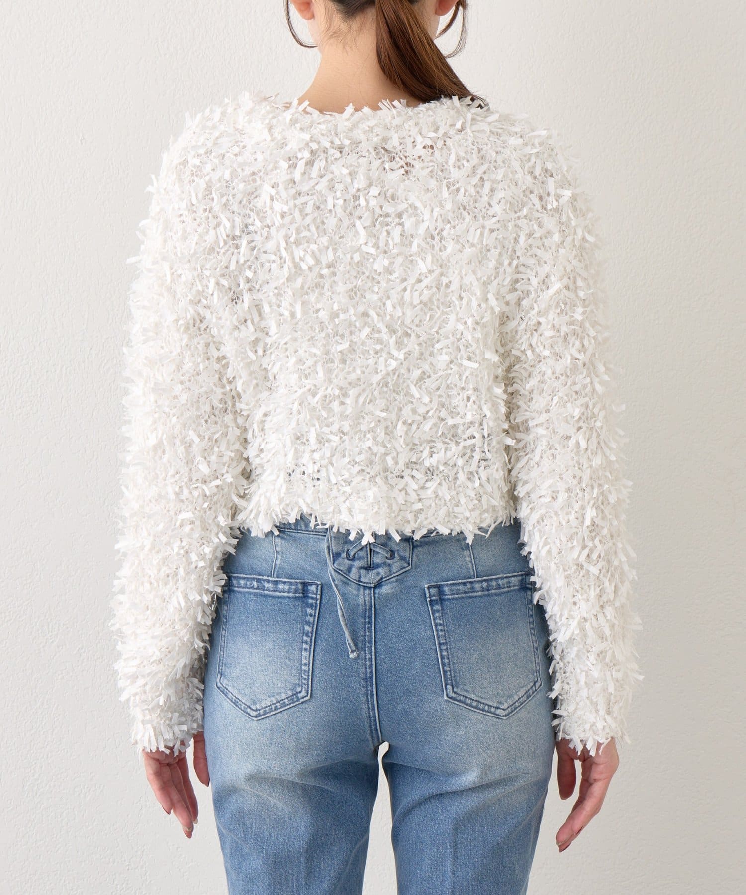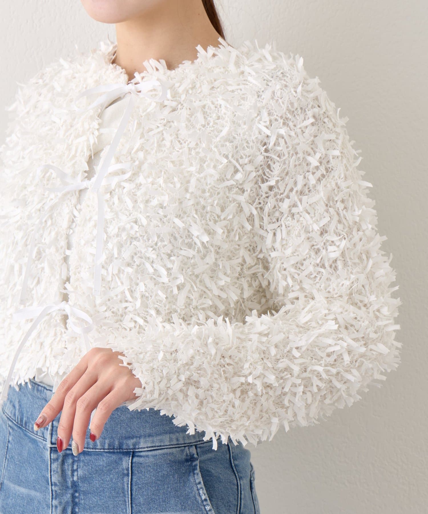 デニムと合わせで、ふわふわな素材がより引き立つ大人カジュアルに。