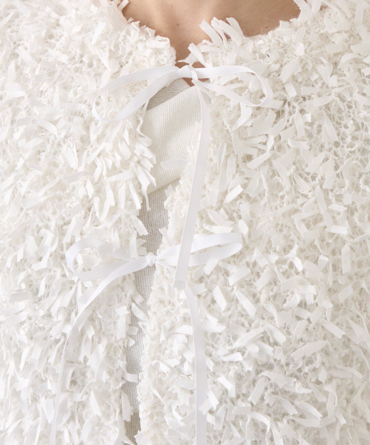 テープヤーンならではの立体感ある表情が目を惹く2WAYカーディガン。