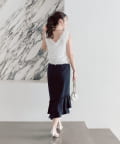 シャツやカットソーにレイヤードして、旬なバランスの大人カジュアルに。