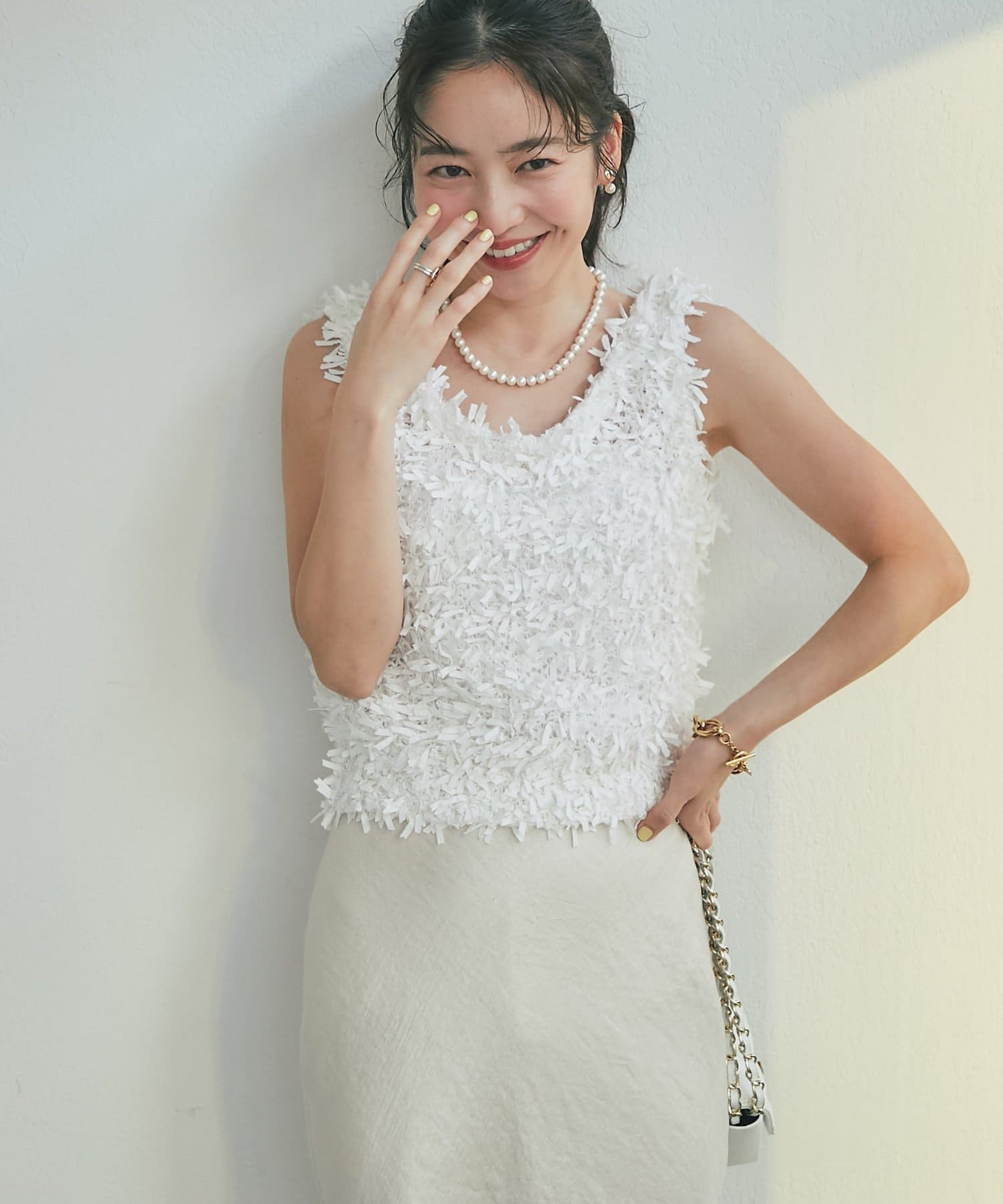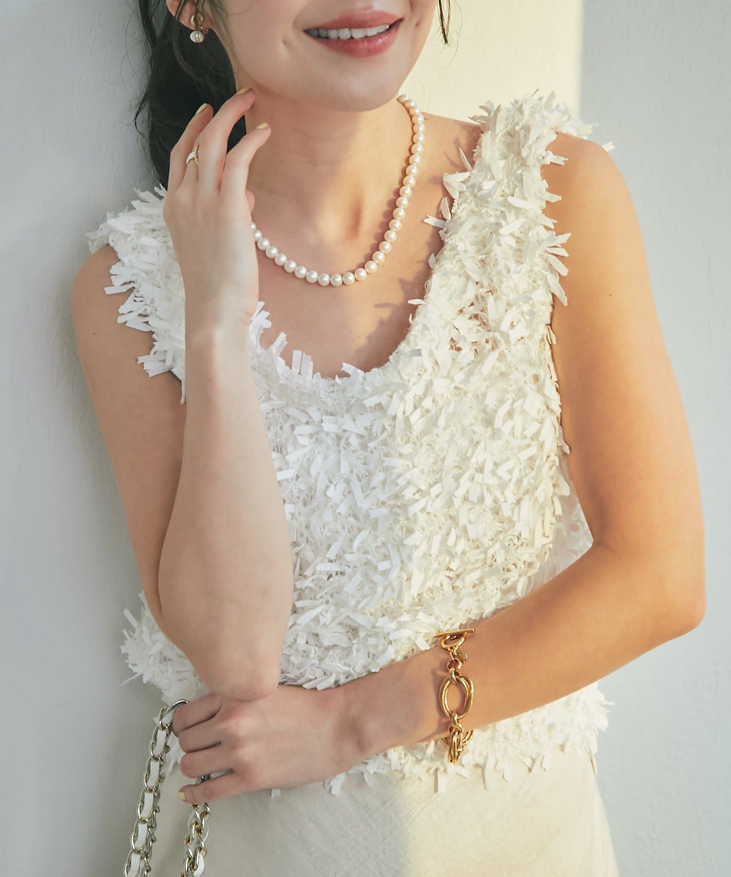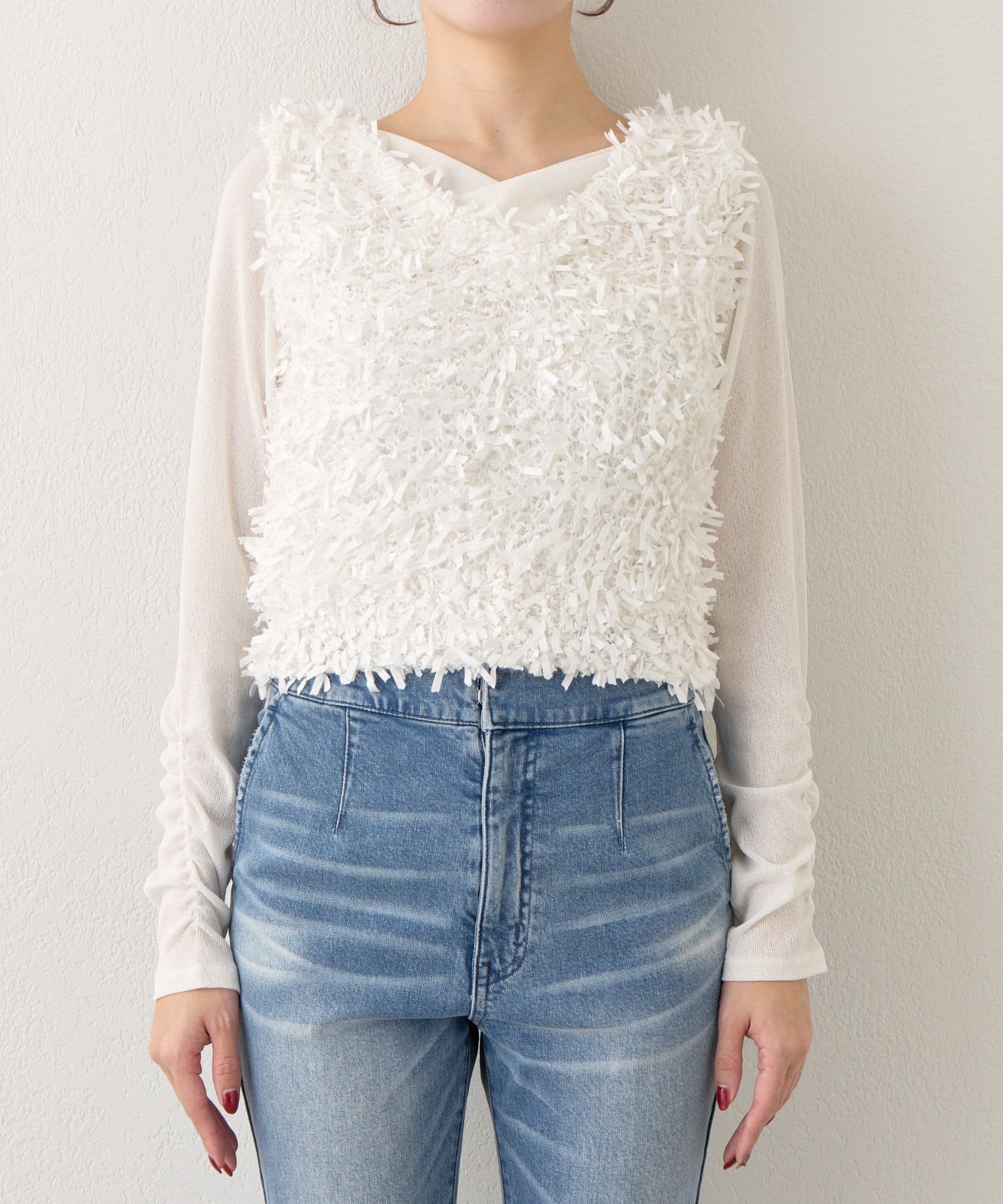 一枚着はもちろん、シアーインナーやタイトなカットソーとの