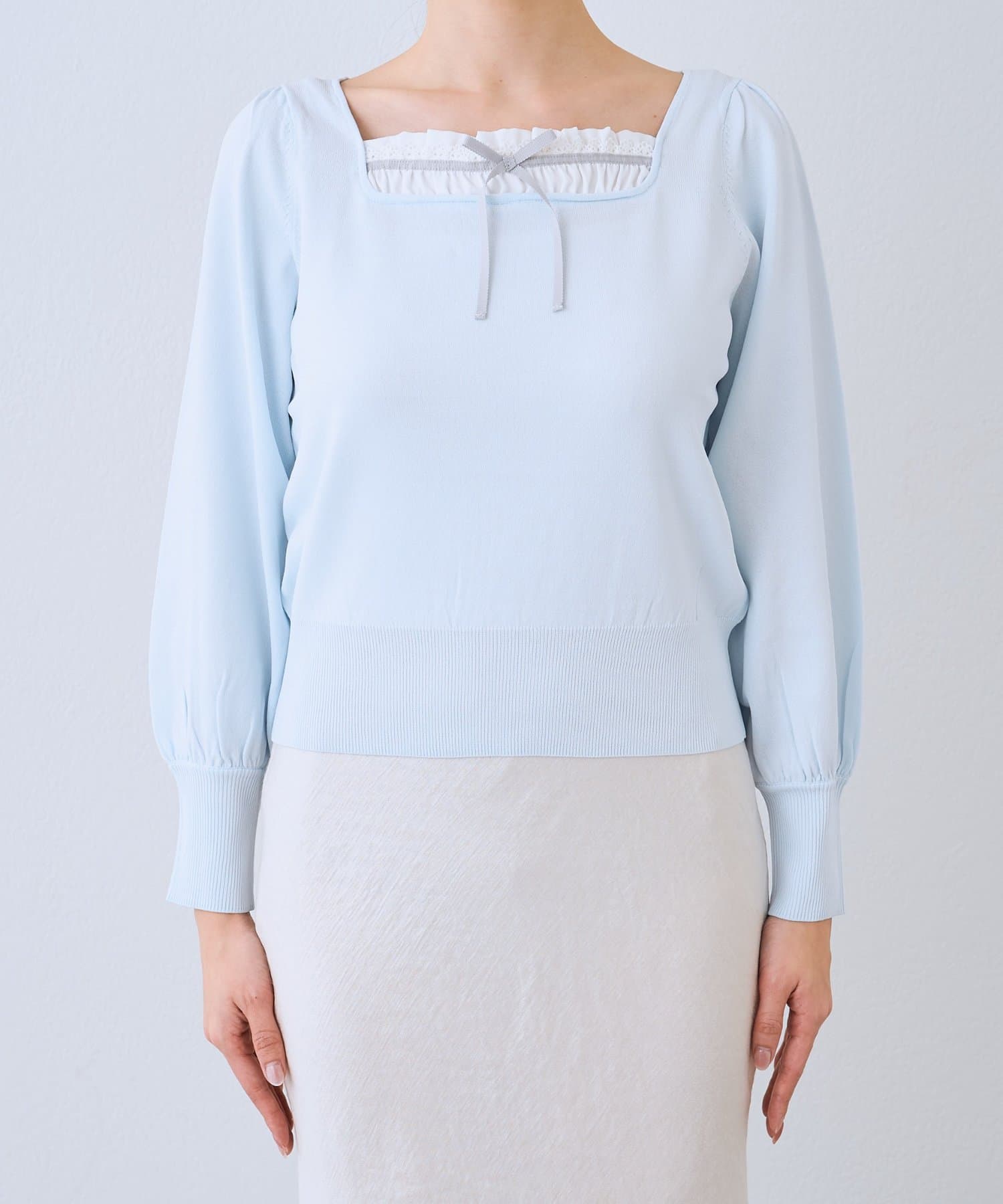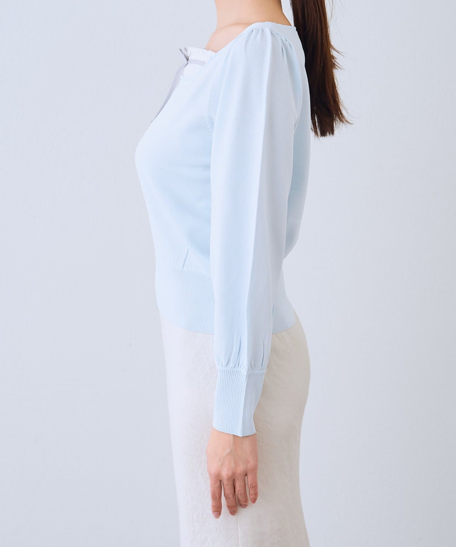 ・バイカラーオフショルラッフルリブニット(LBZ1052105A0005)