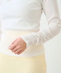 ロングスリーブは袖口のシャーリングで手首にほどよく留まり、