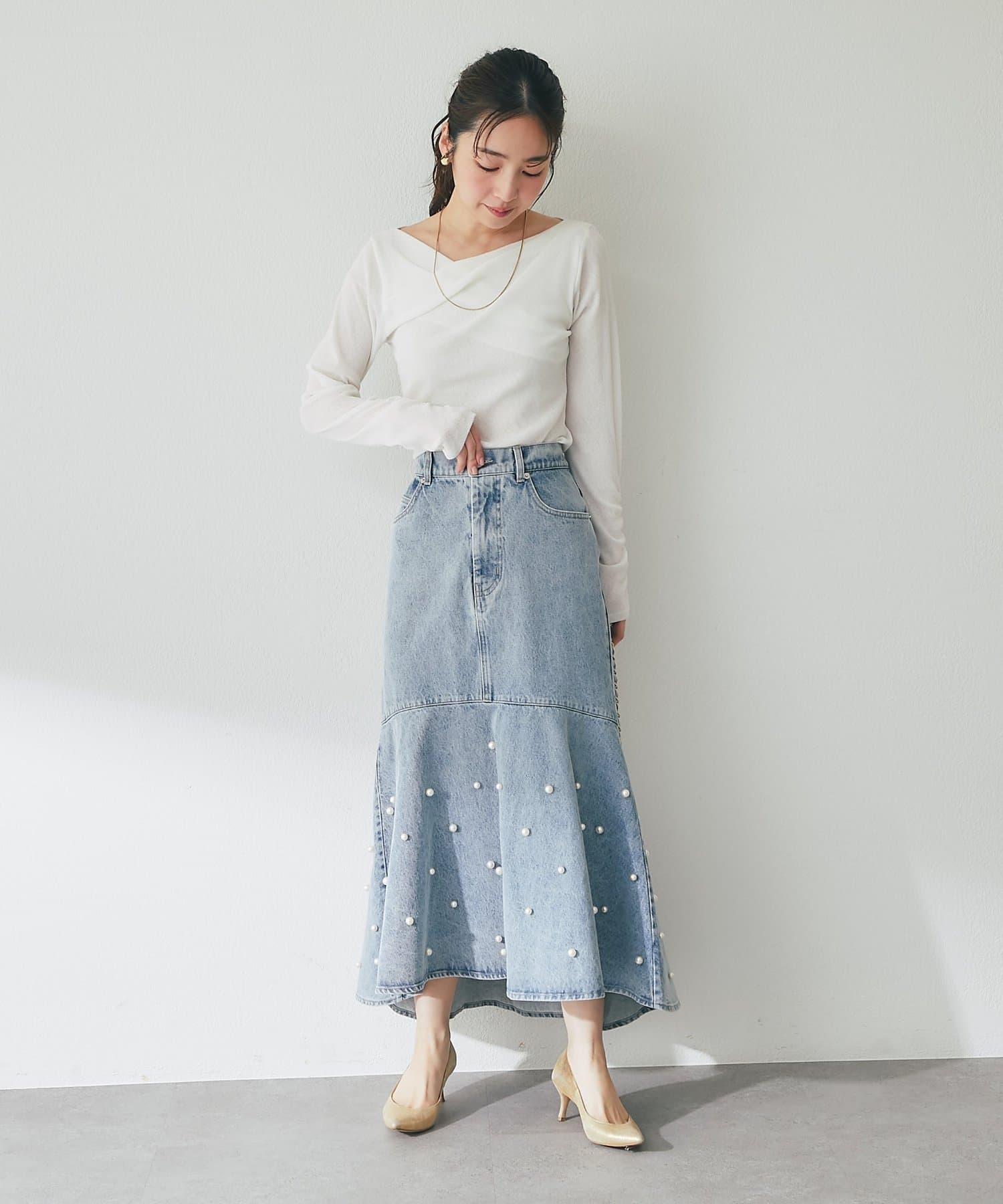 すっきりとしたマーメイドスカートやスラックスを合わせて、上品な大人フェミニンに。