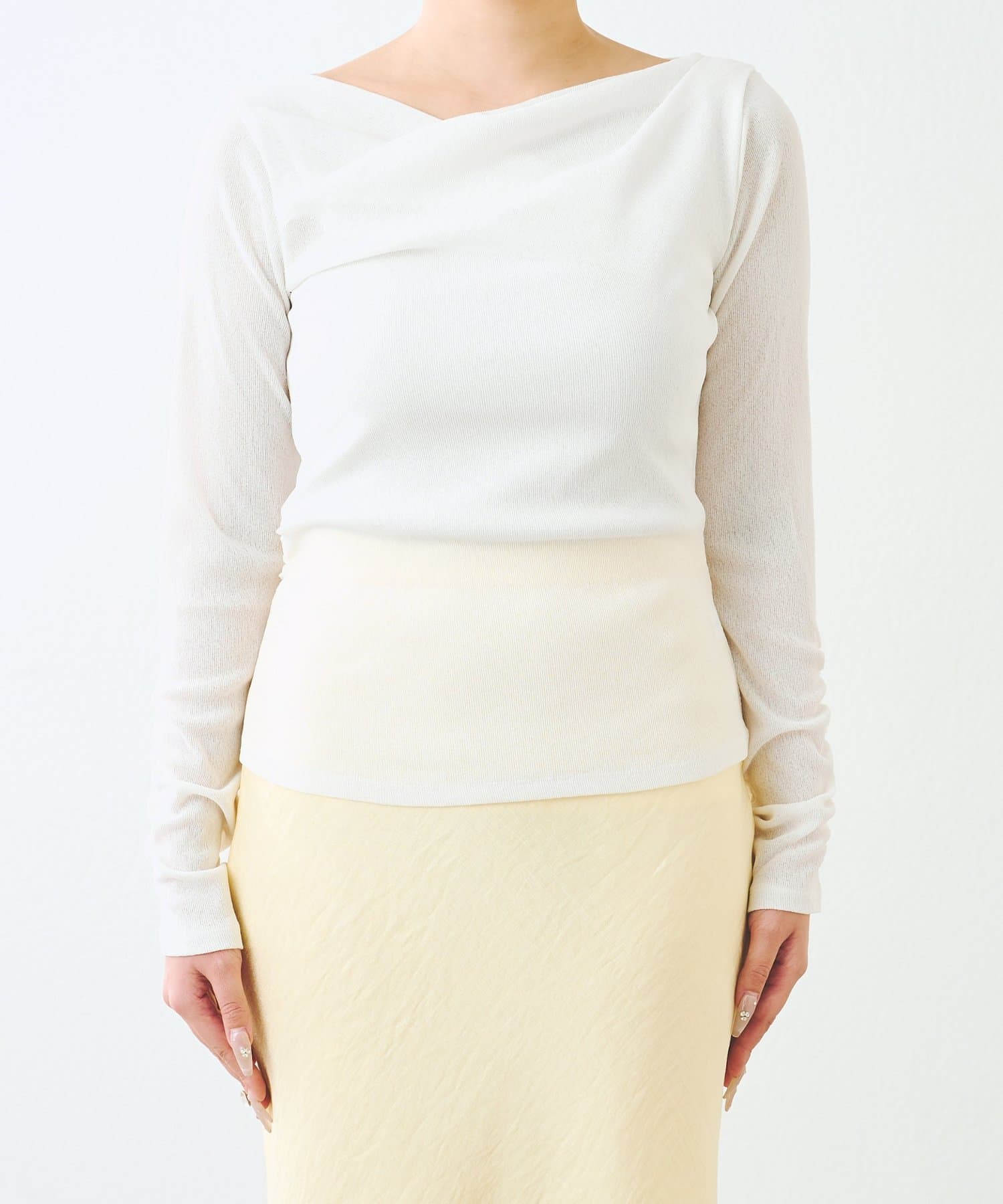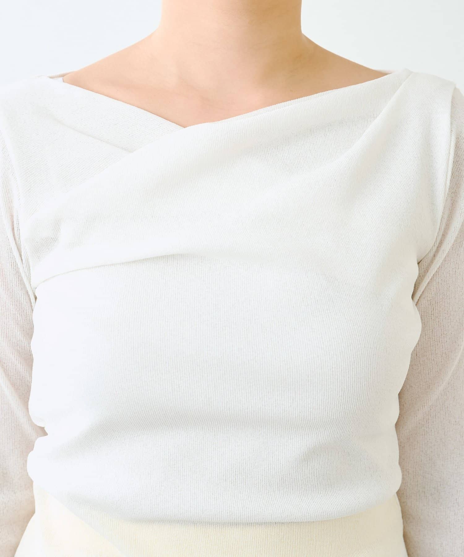 大人の女性らしさを引き立てる、上品なドレープネックプルオーバー。